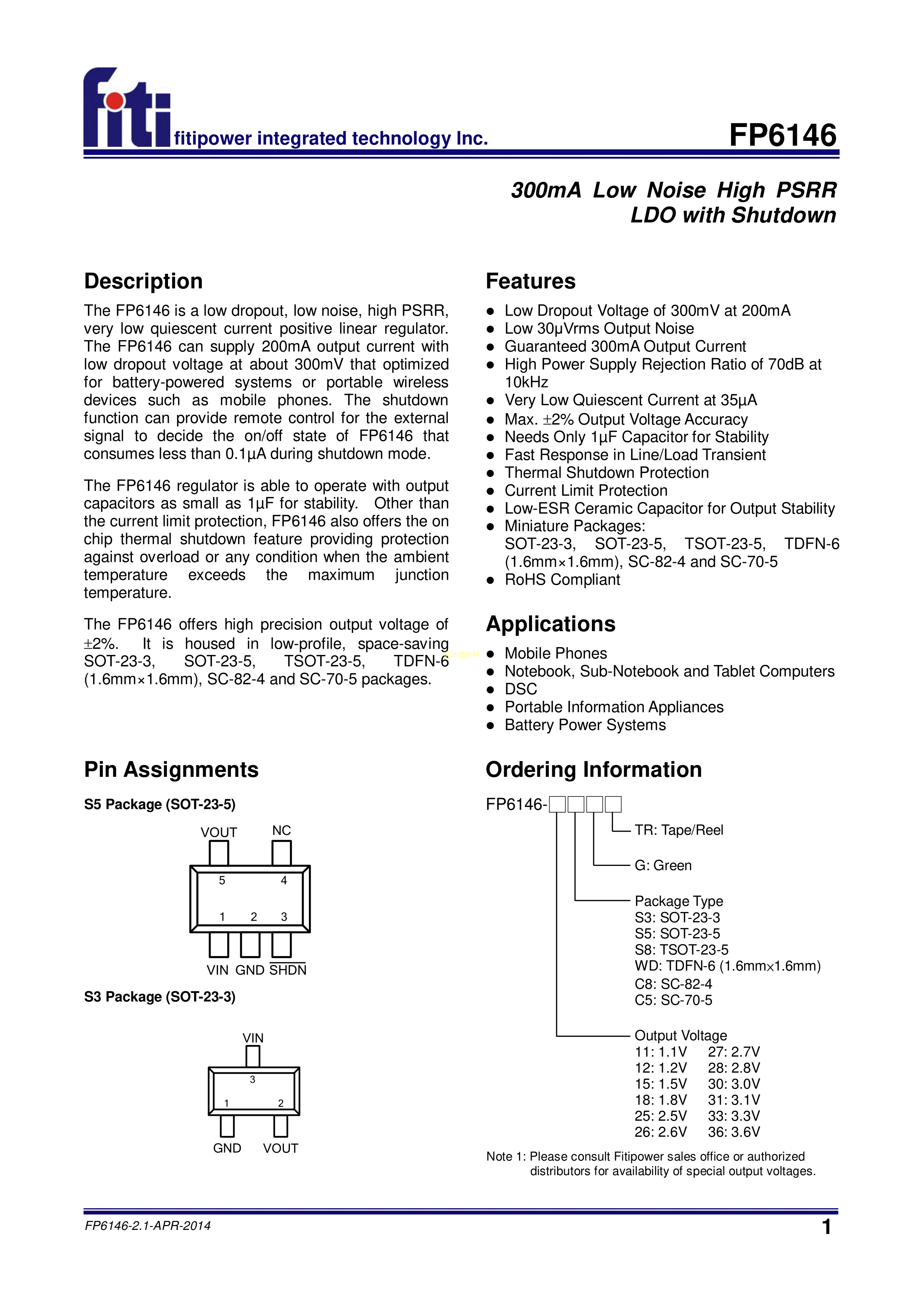 FP6146-28S5GTR数据手册SOT-23-5封装FITIPOWER(天钰)PDF规格书,中英