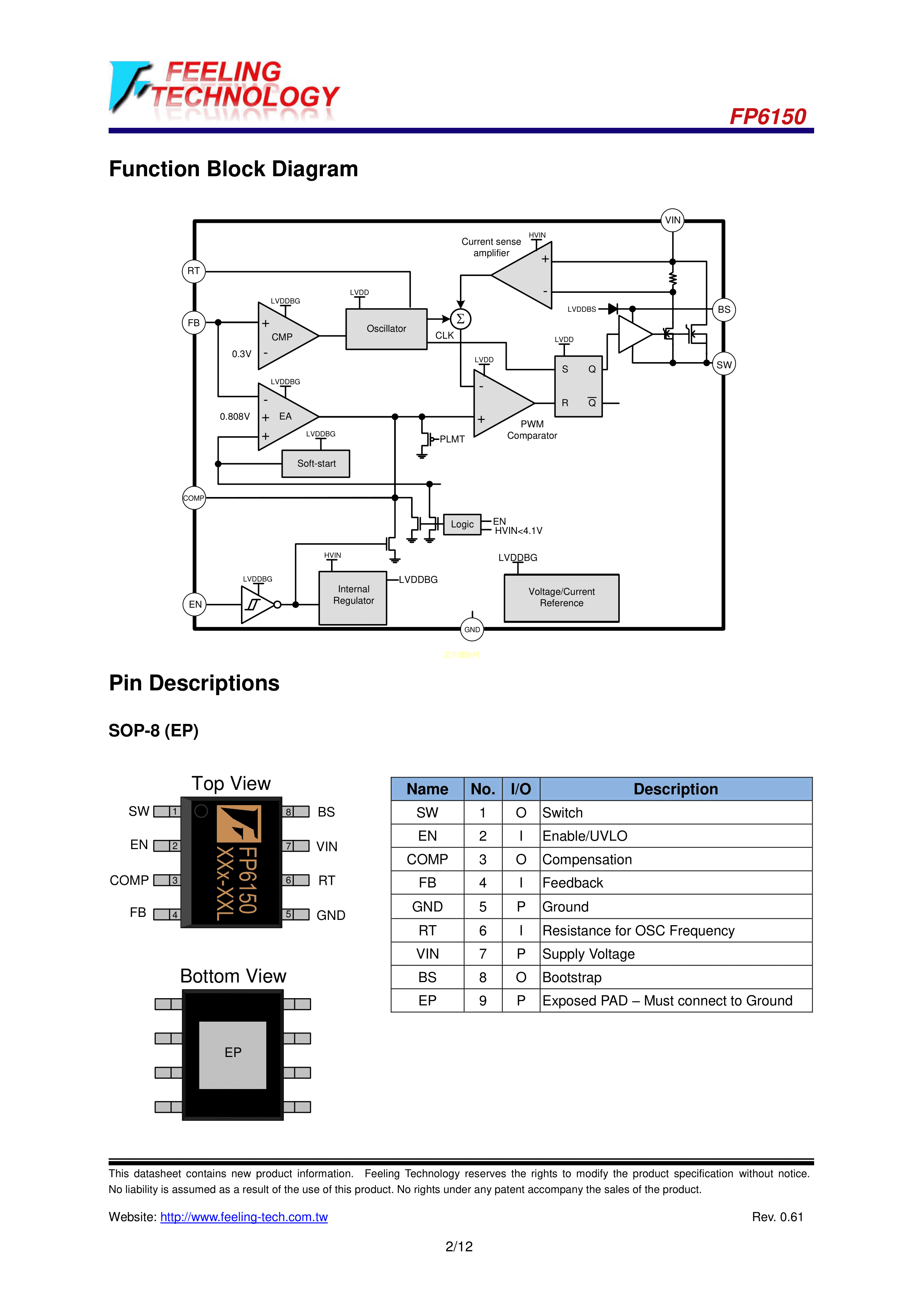 FP6150XR-G1数据手册SOP-8EP_150mil封装Feeling Technology(