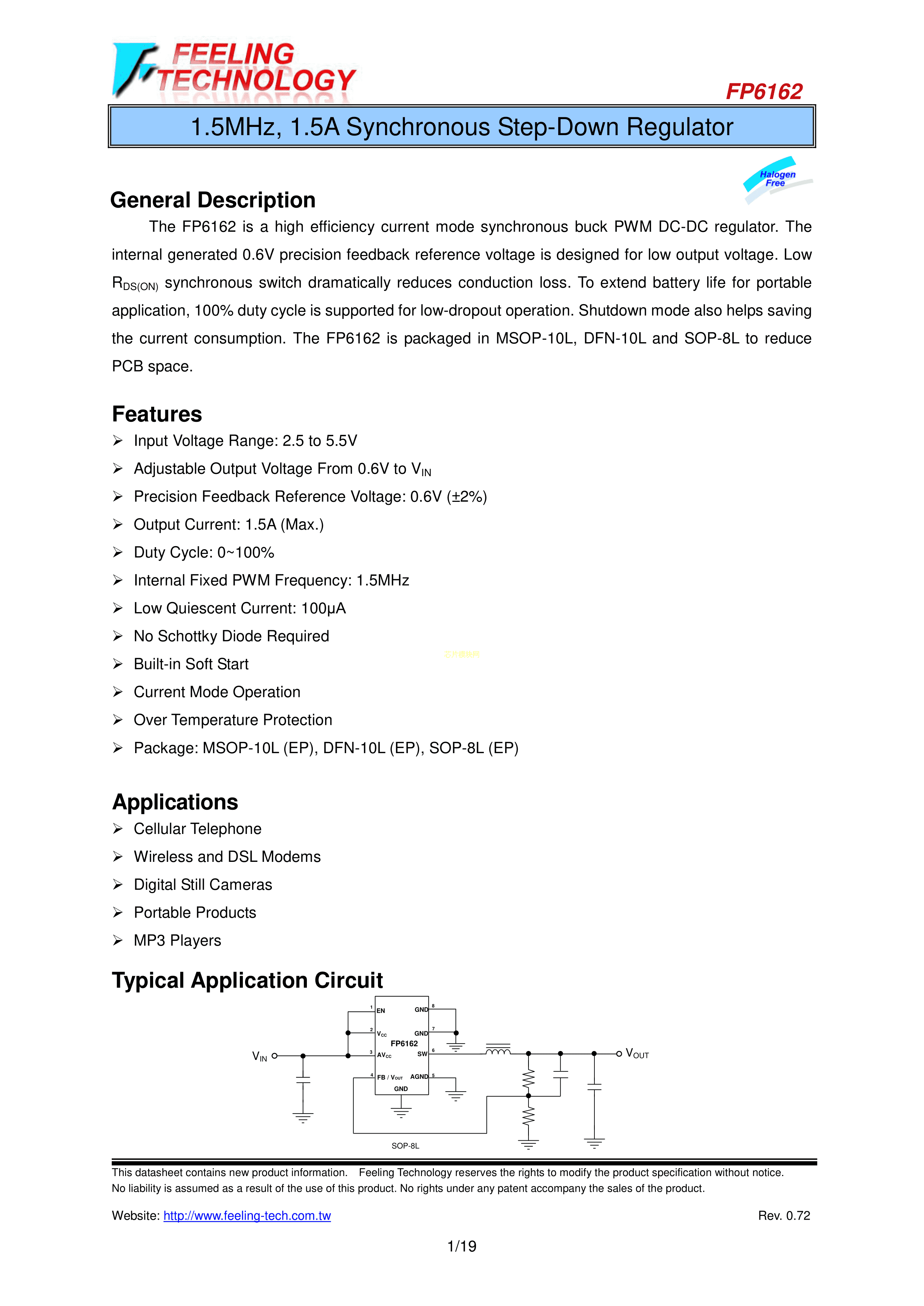 FP6162ADXR-G1数据手册SOP-8EP_150mil封装Feeling Technolog