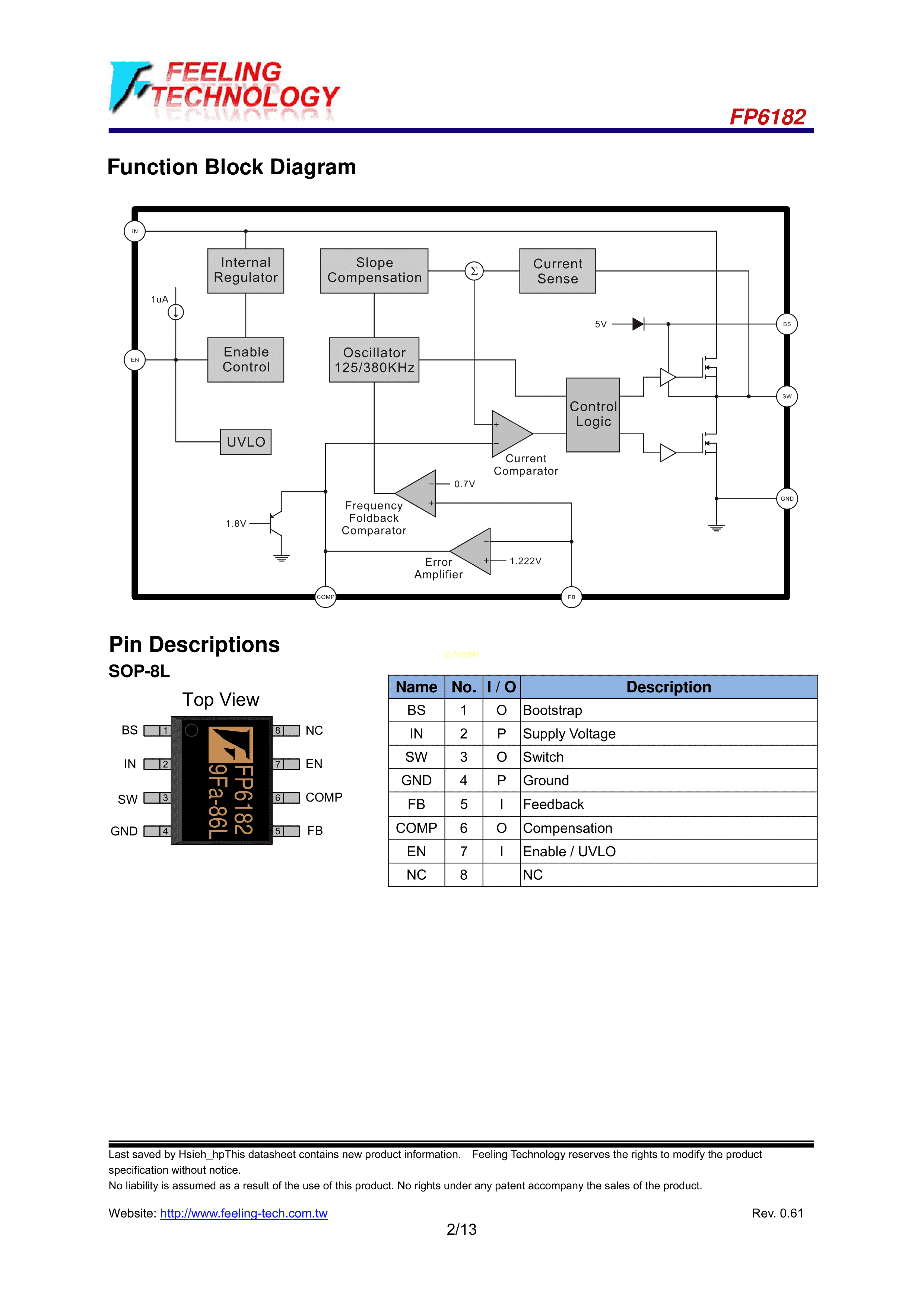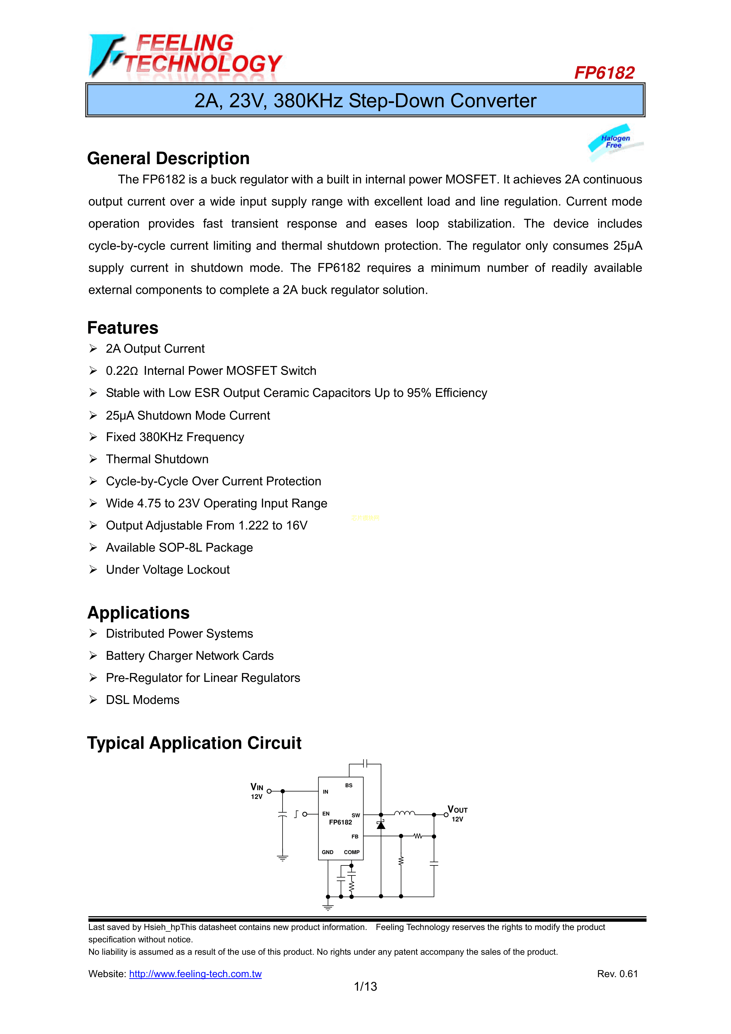 FP6182DR-G1数据手册SOP-8封装Feeling Technology(台湾远翔)PDF规
