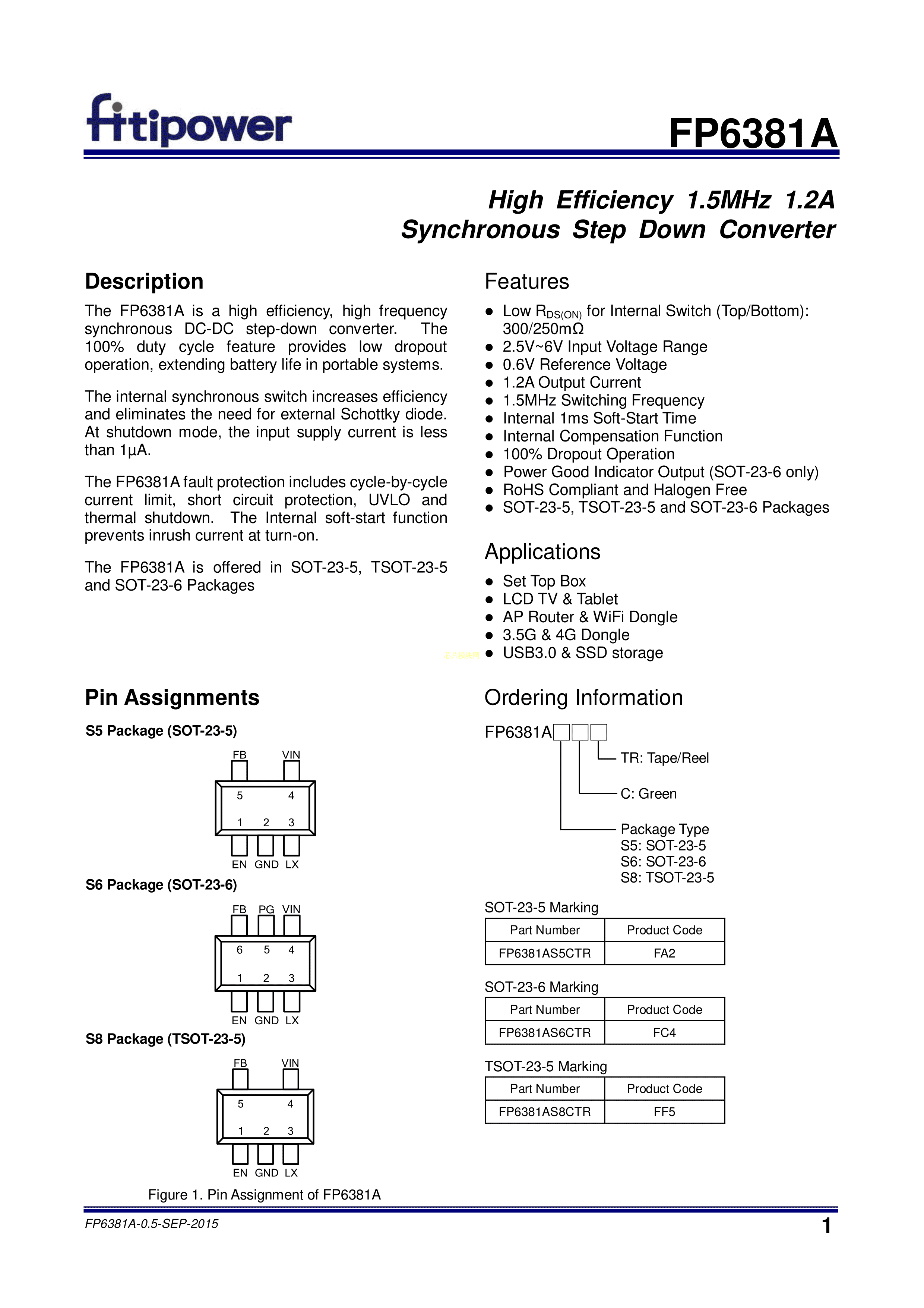 FP6381AS5CTR数据手册SOT-23-5封装FITIPOWER(天钰)PDF规格书,中英文下