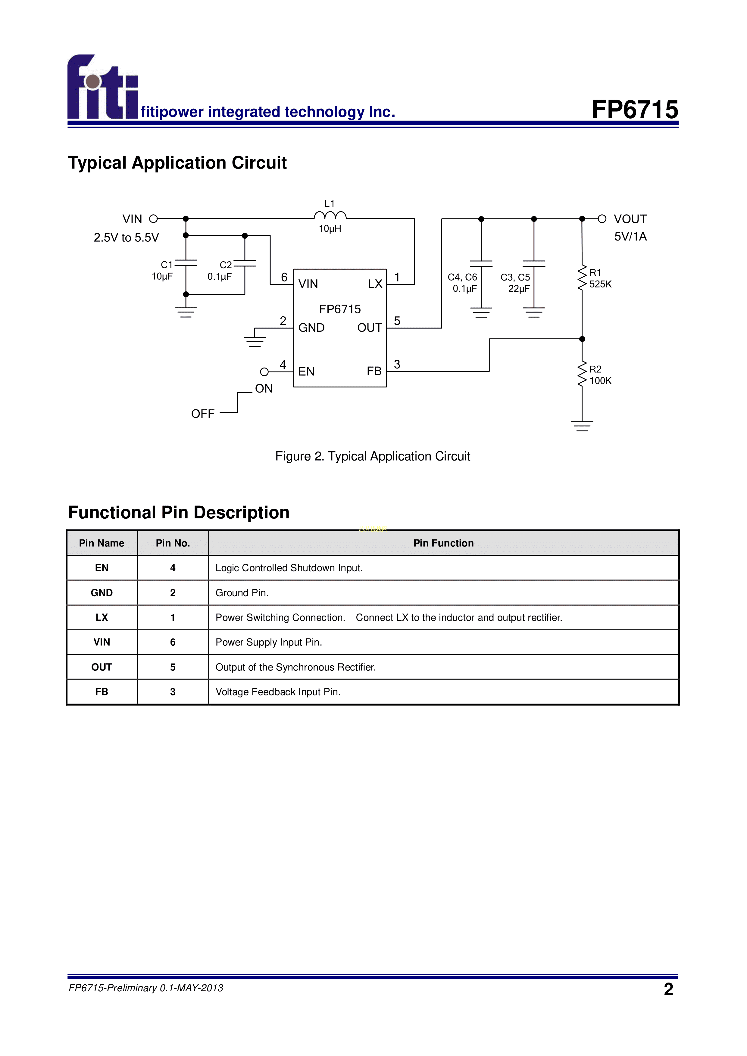 FP6715S6CTR数据手册SOT-23-6封装FITIPOWER(天钰)PDF规格书,中英文下载