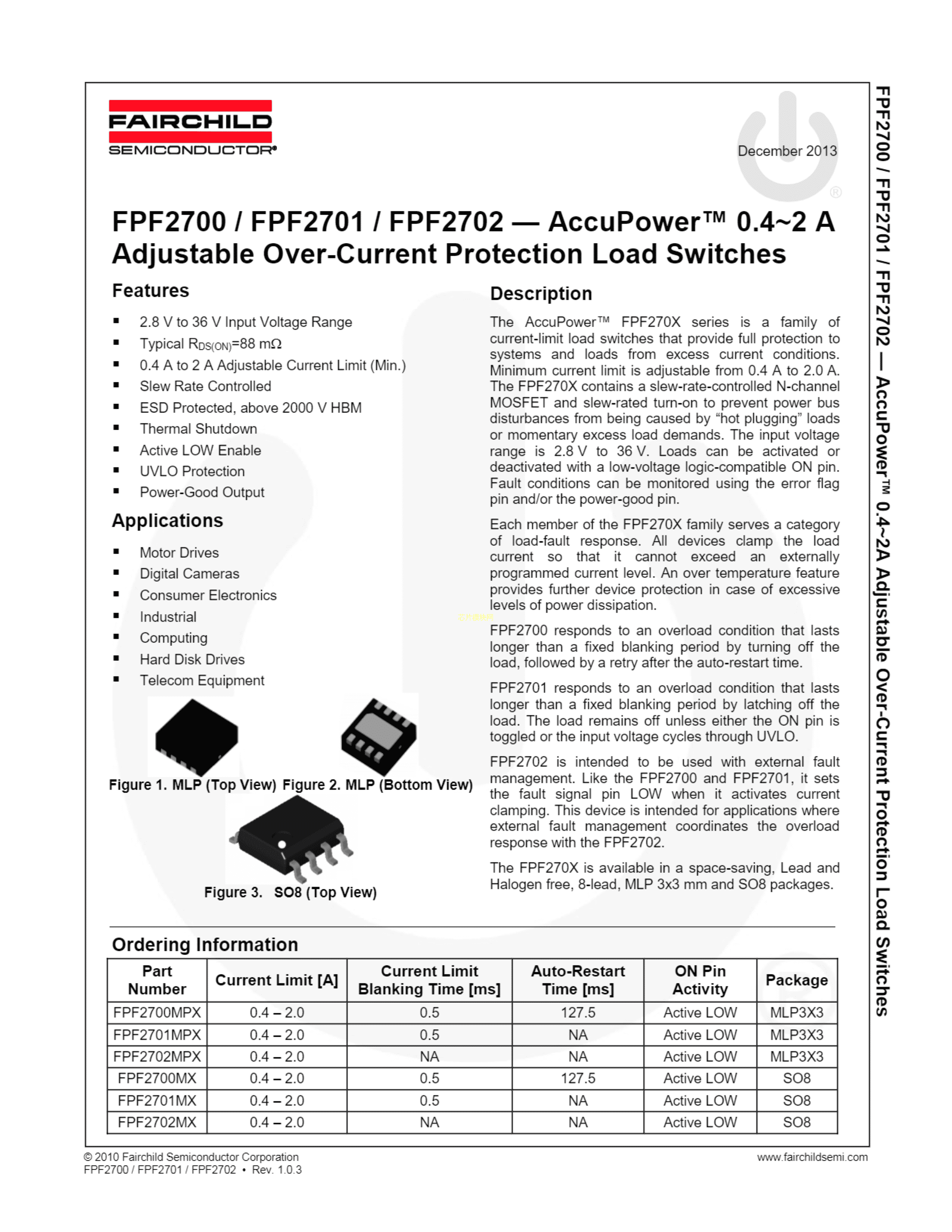 FPF2702MPX数据手册MLP3X3封装onsemi(安森美)PDF规格书,中英文下载