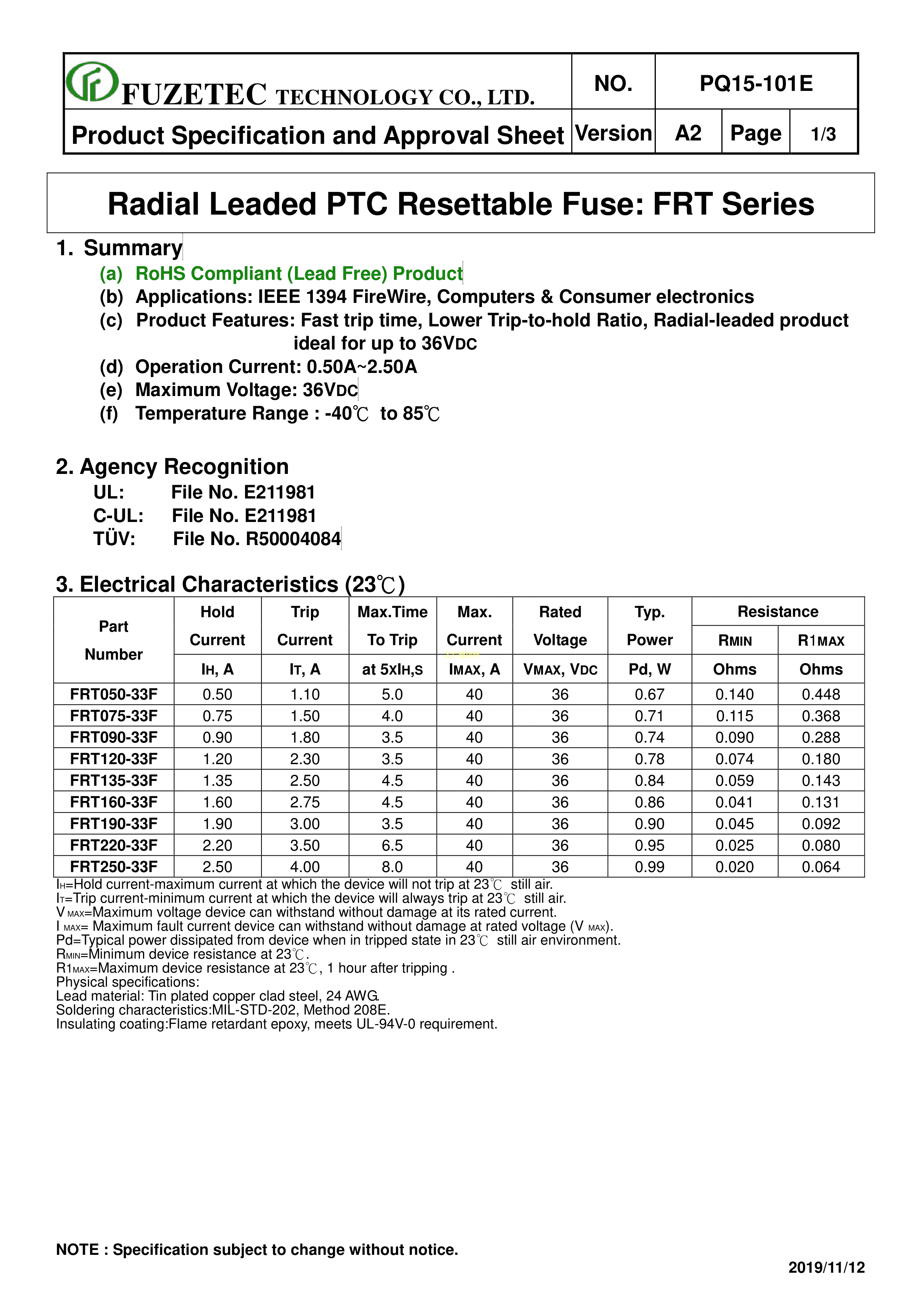 FRT160-33F数据手册径向引线封装FUZETEC(台湾富致)PDF规格书,中英文下载