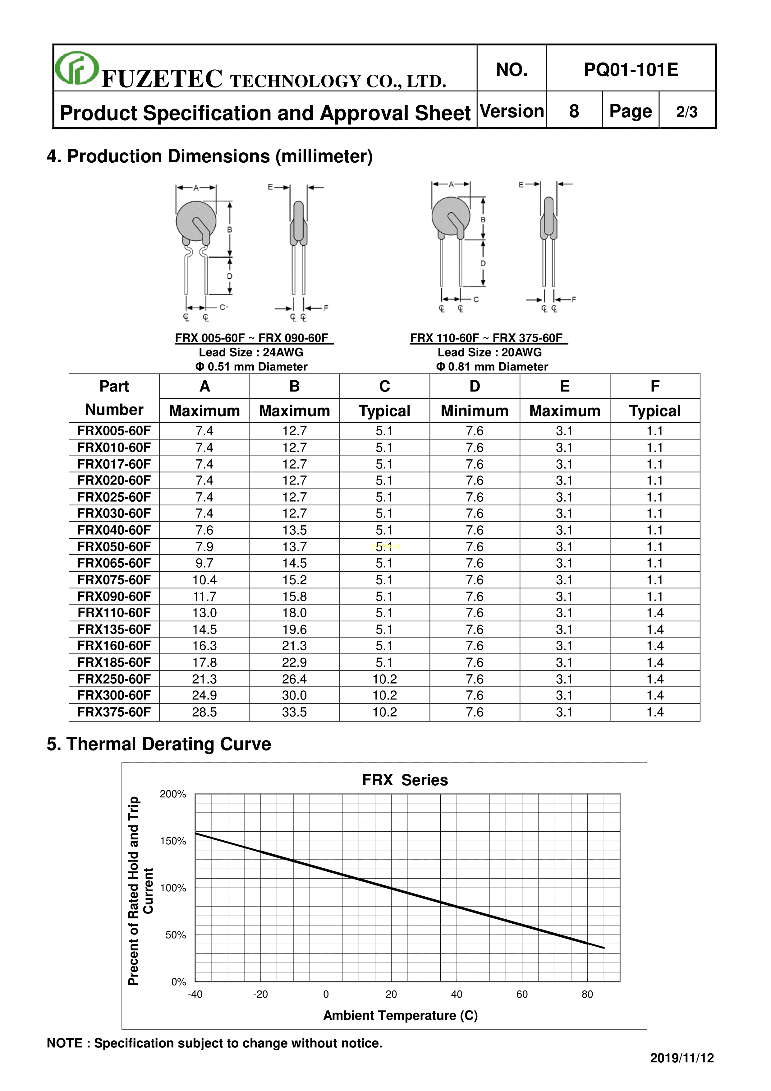 FRX110-60F数据手册径向引线封装FUZETEC(台湾富致)PDF规格书,中英文下载