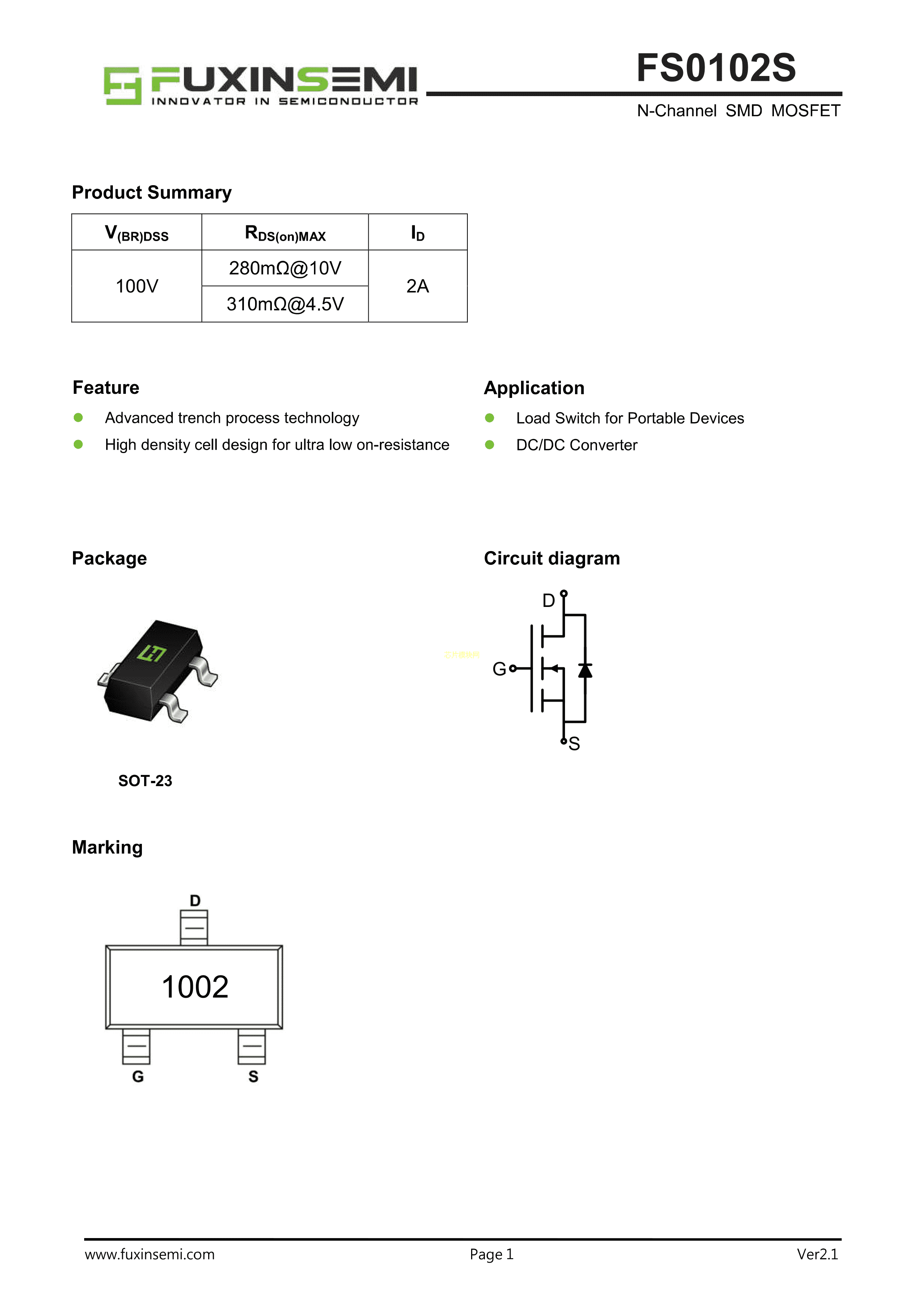 FS0102S数据手册SOT-23封装FUXINSEMI(富芯森美)PDF规格书,中英文下载