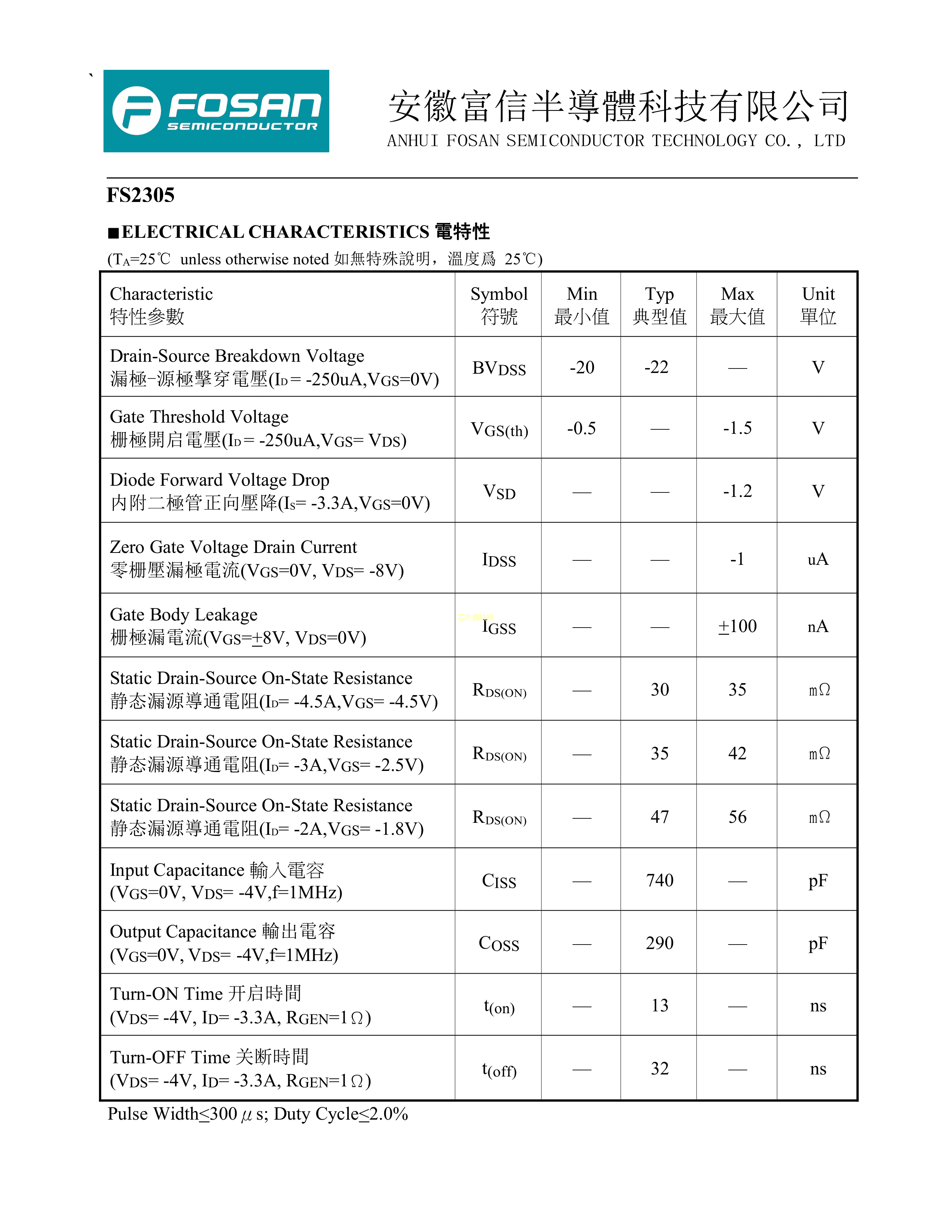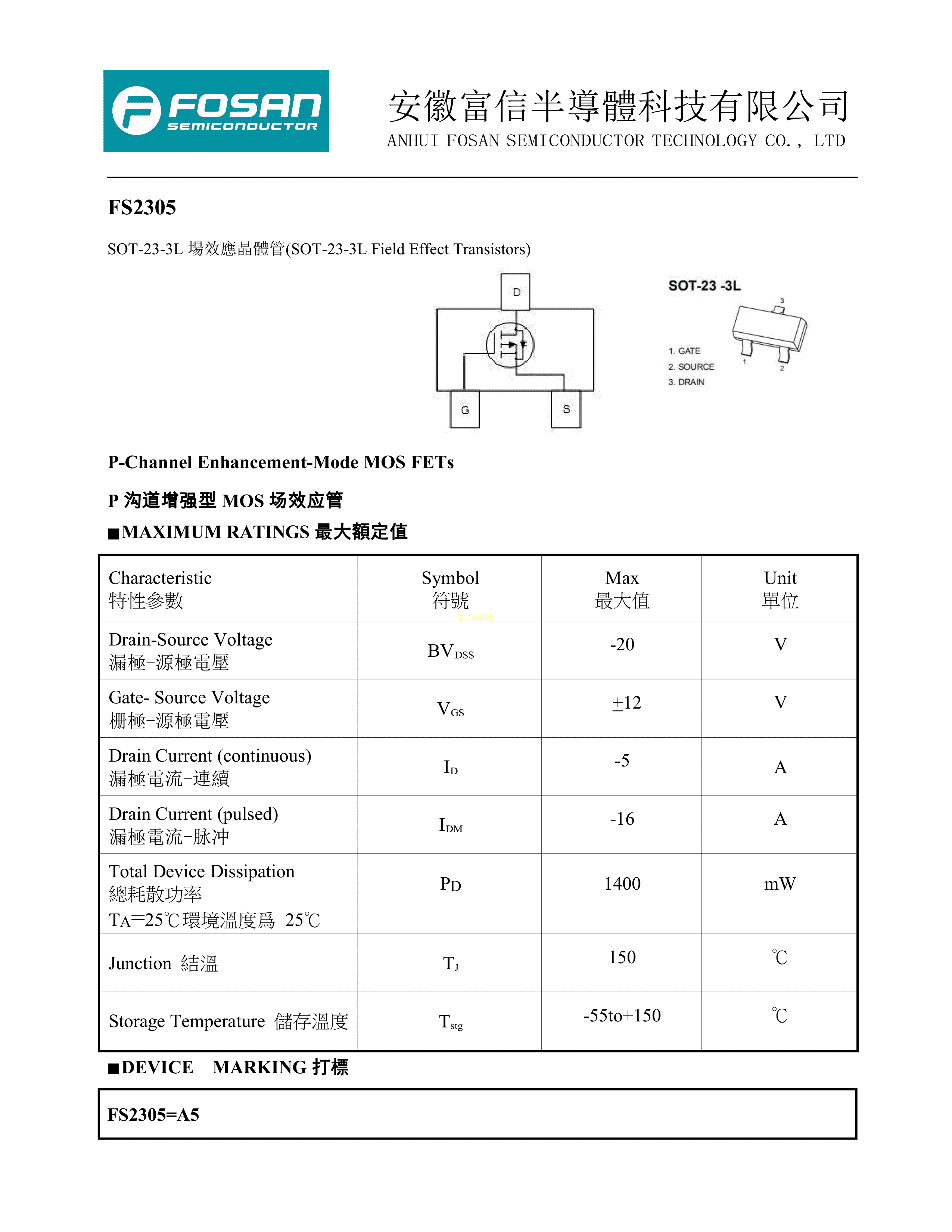 FS2305A5数据手册SOT-23-3L封装FOSAN(富信)PDF规格书,中英文下载