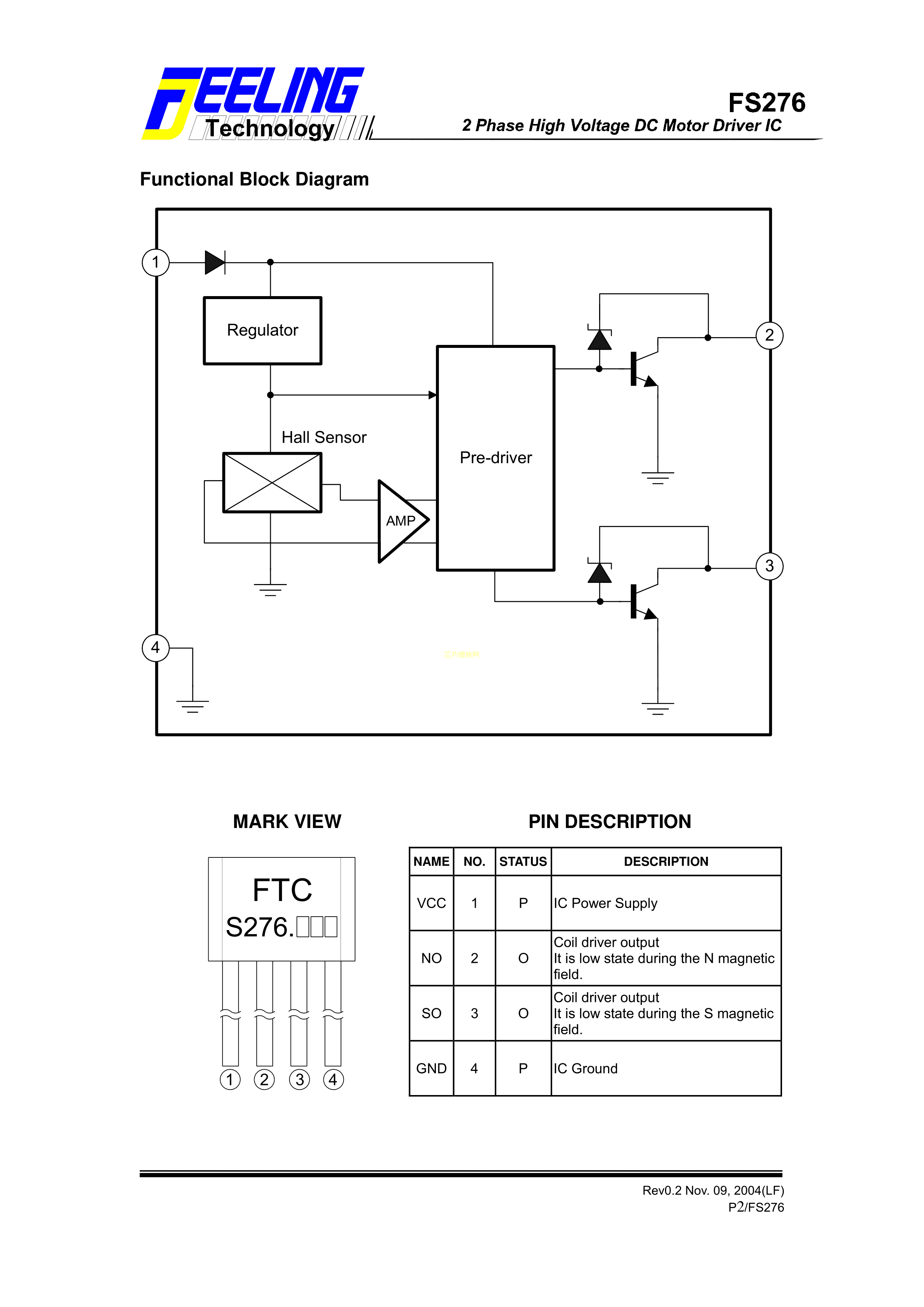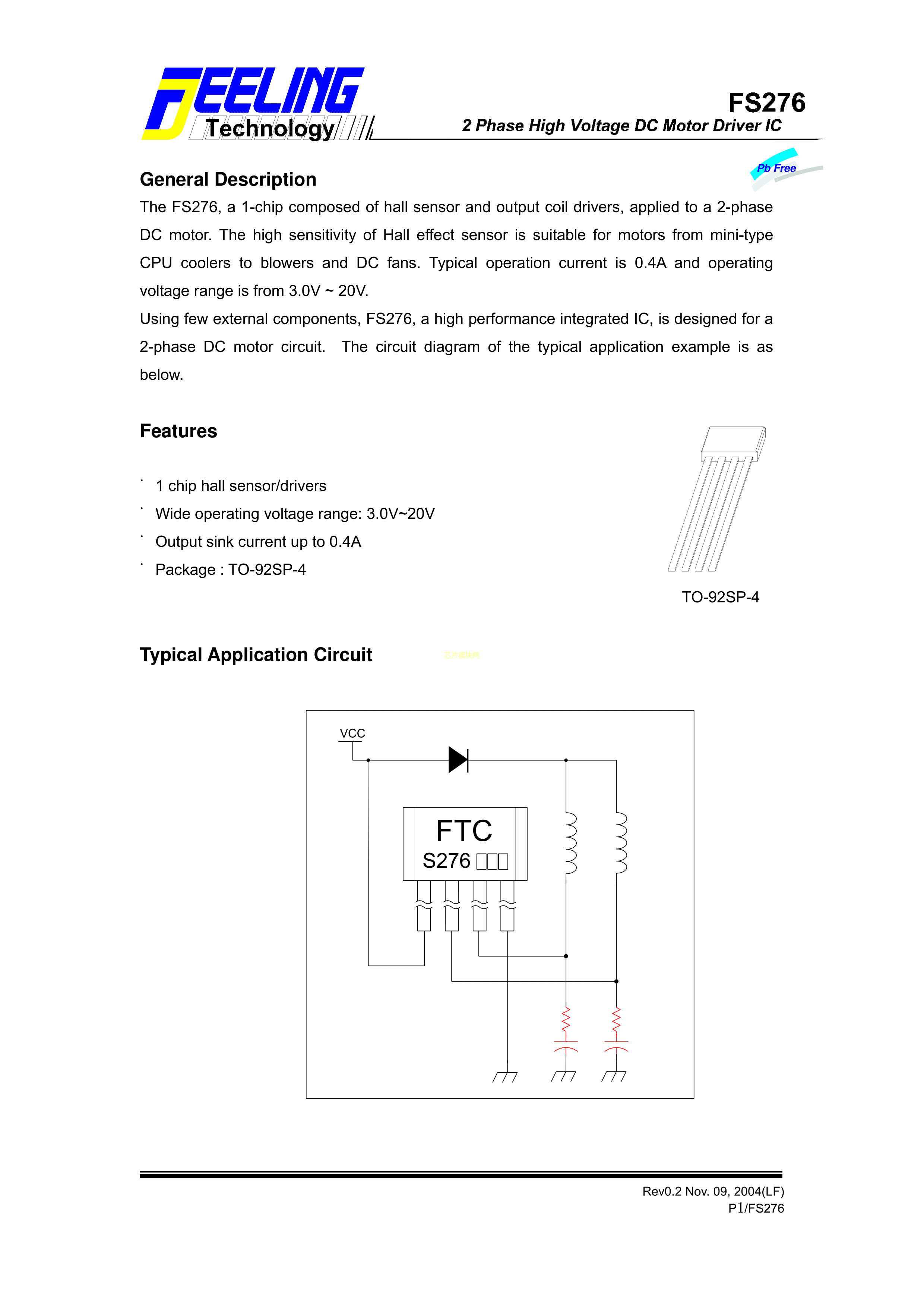 FS276LF-A数据手册TO-92SP-4封装FeelingTechnology(台湾远翔)PDF