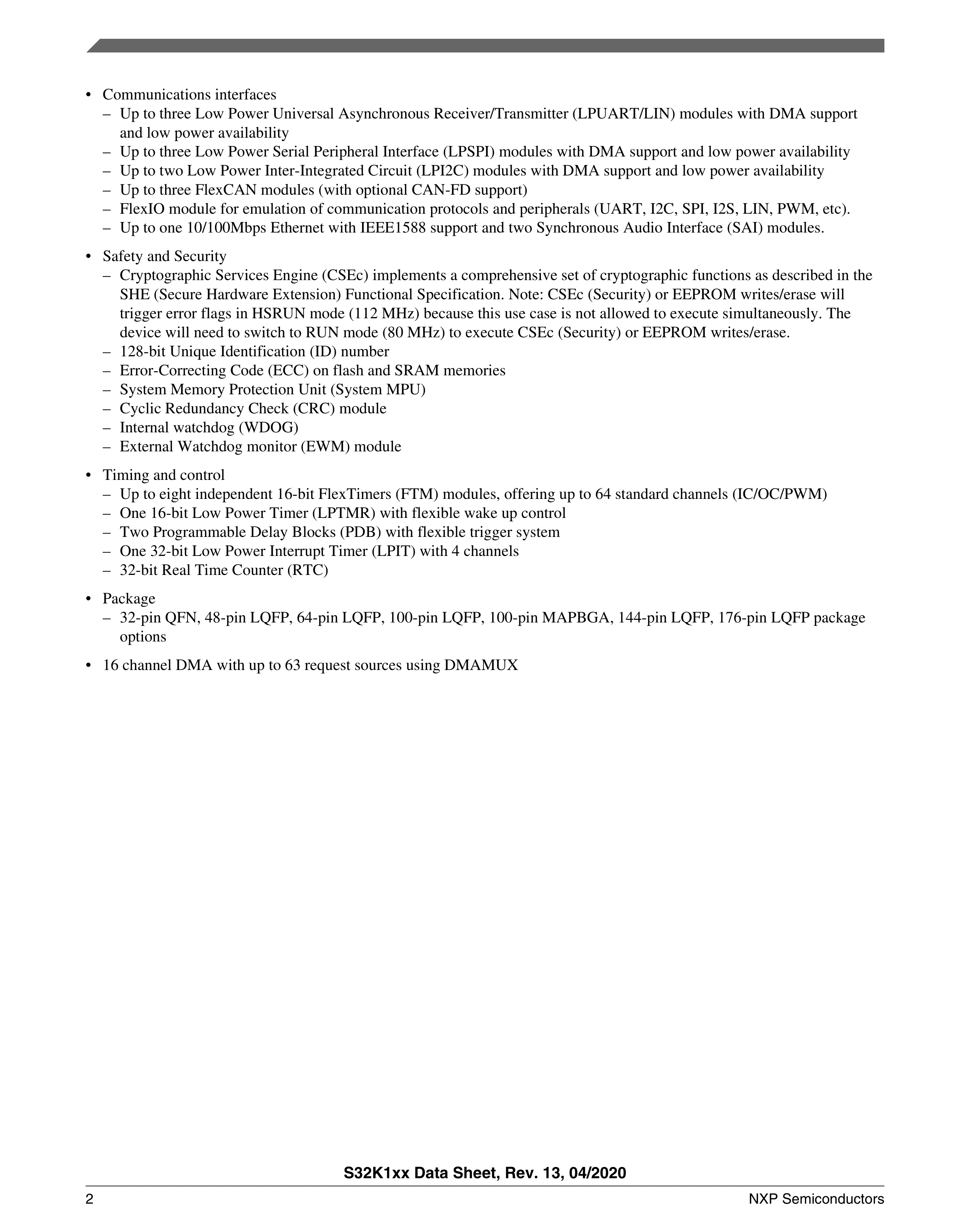 FS32K116LFT0MLFR数据手册LQFP-48(7x7)封装NXP(恩智浦)PDF规格书,中