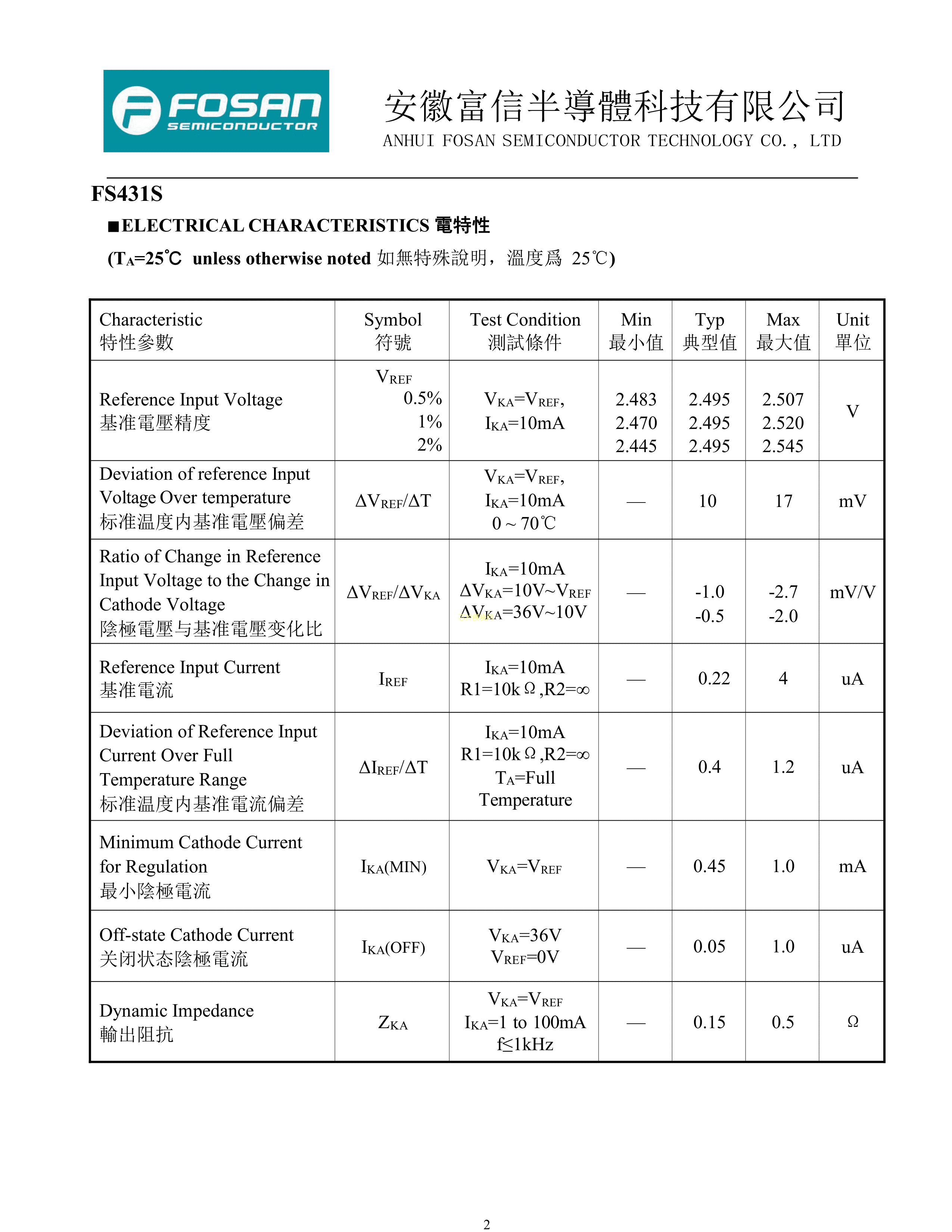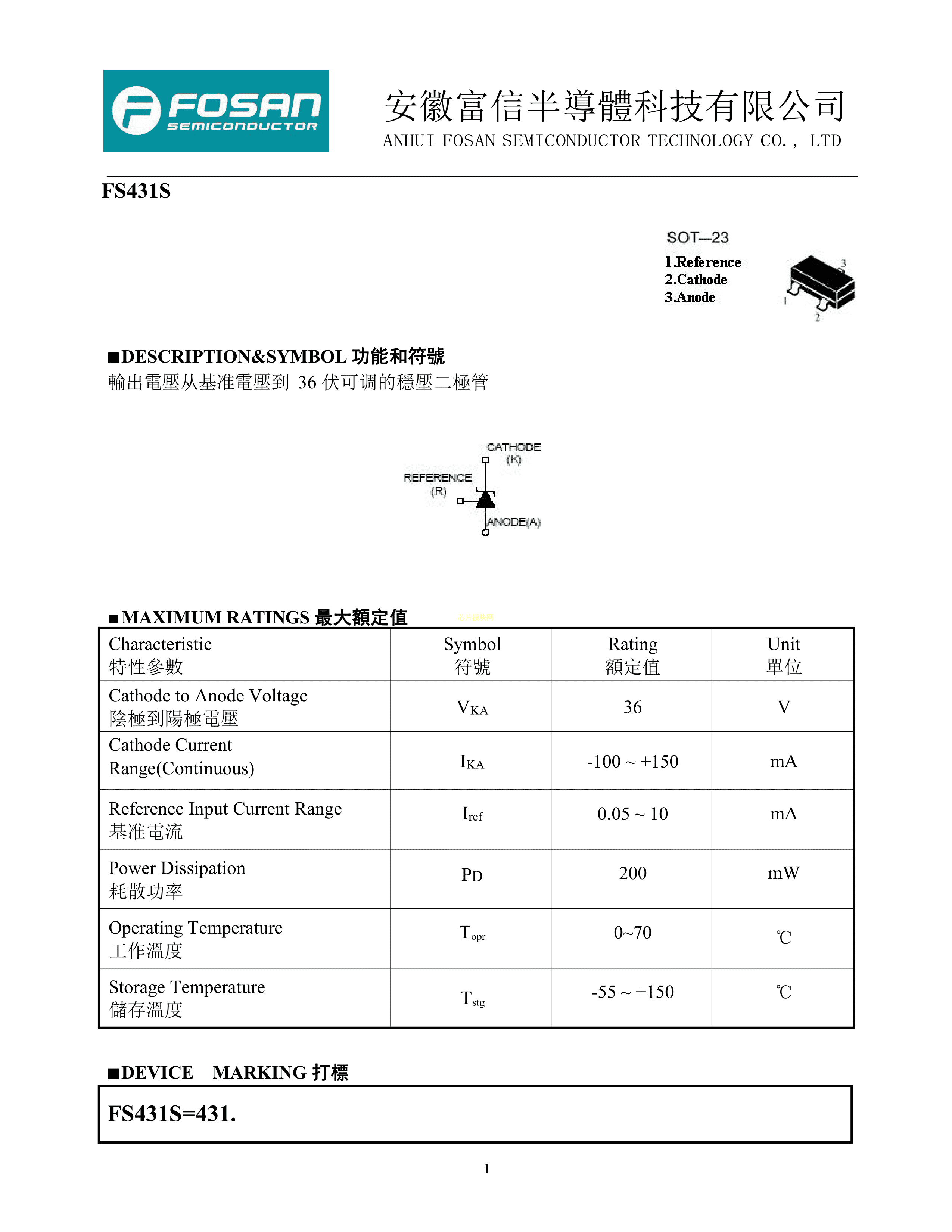 FS431S 431. 1%数据手册SOT-23封装FOSAN(富信)PDF规格书,中英文下载