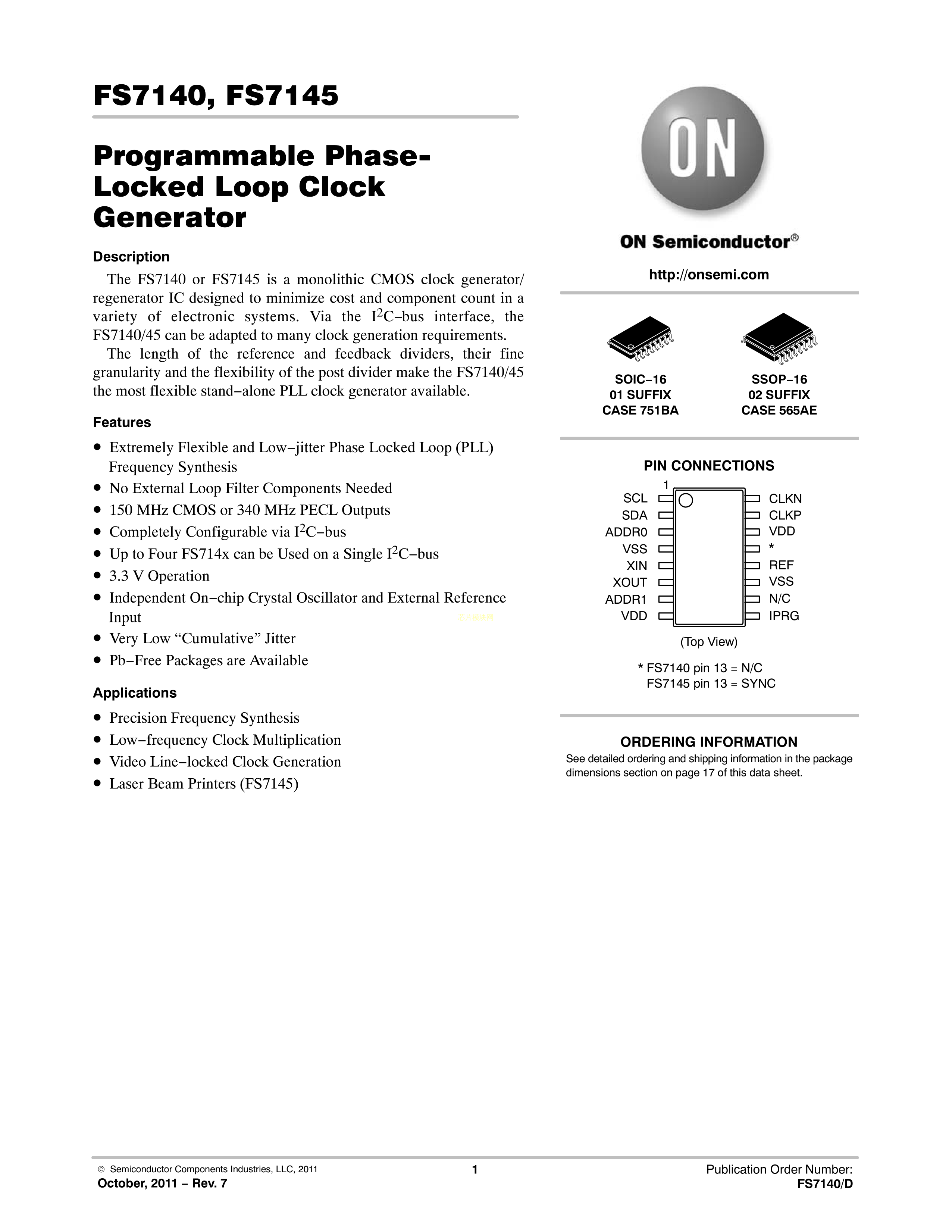 FS7140-01G-XTD数据手册SOIC-16封装onsemi(安森美)PDF规格书,中英文下载
