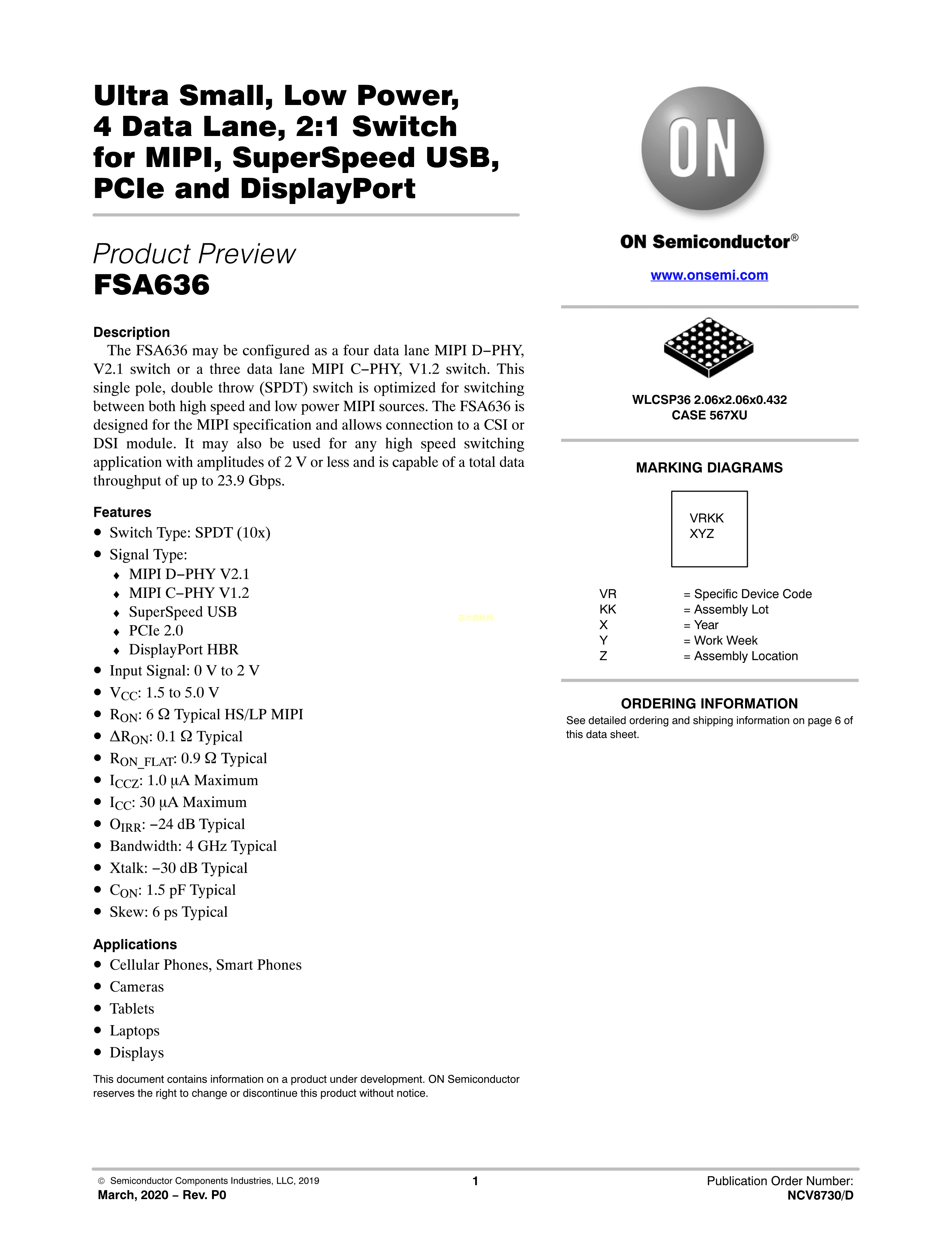 FSA636UCX数据手册WLCSP-36封装onsemi(安森美)PDF规格书,中英文下载