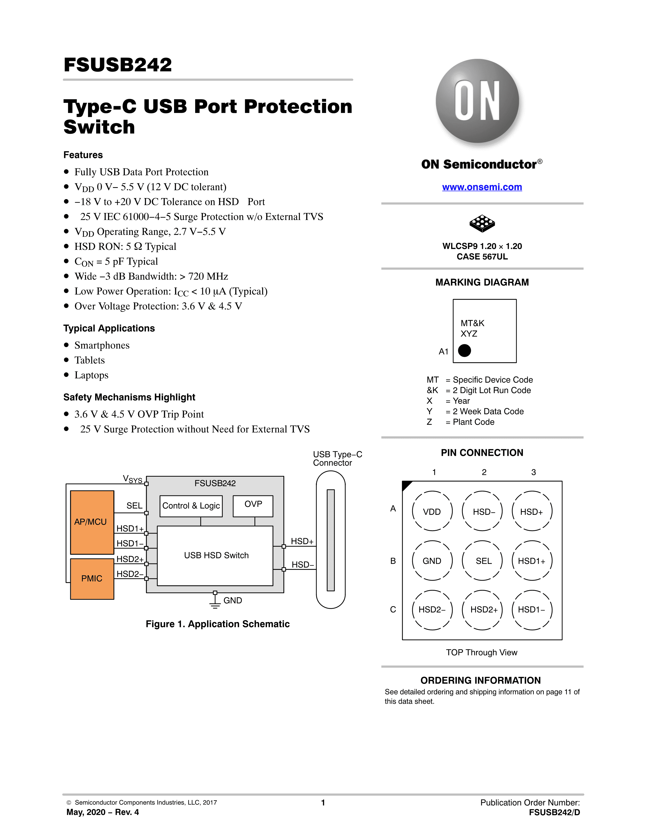 FSUSB242UCX-Z002数据手册WLCSP-9封装onsemi(安森美)PDF规格书,中英文