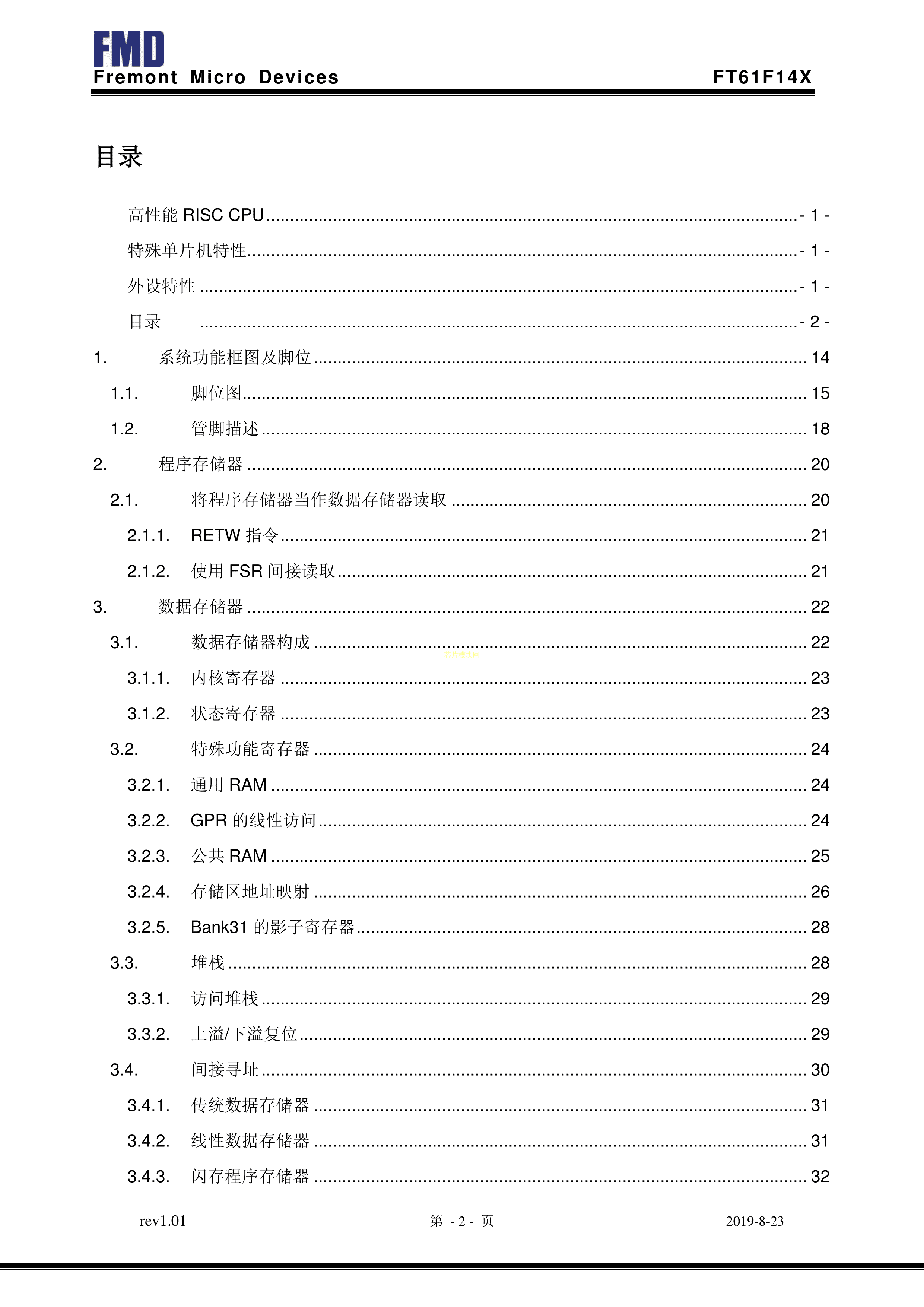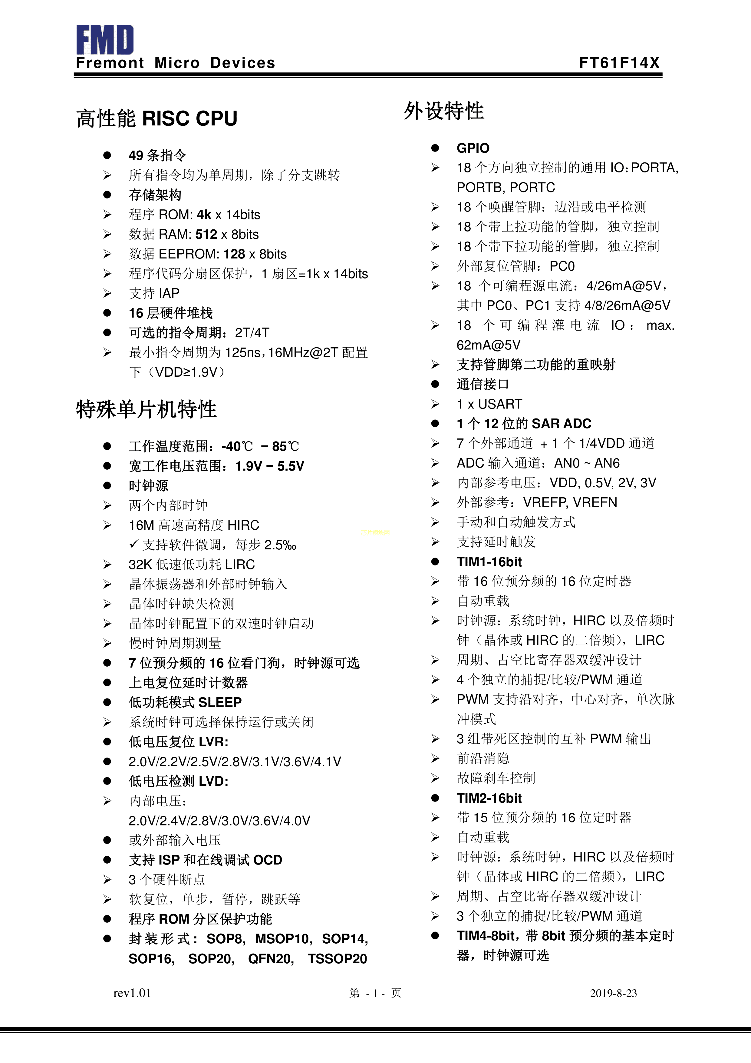 FT61F142-RB数据手册SOP-14封装FMD(辉芒微)PDF规格书,中英文下载
