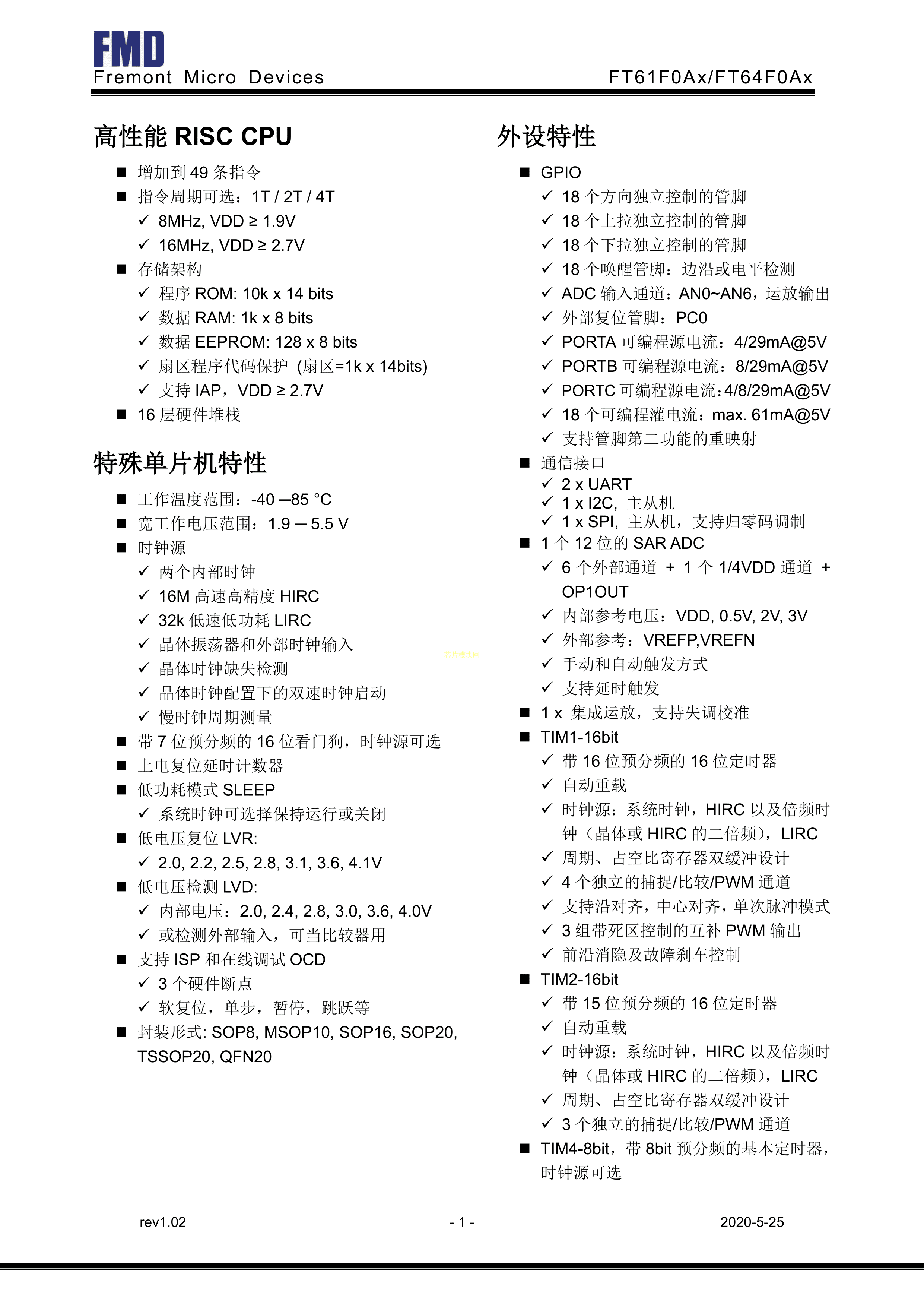 FT64F0A3-RB数据手册SOP-16封装FMD(辉芒微)PDF规格书,中英文下载