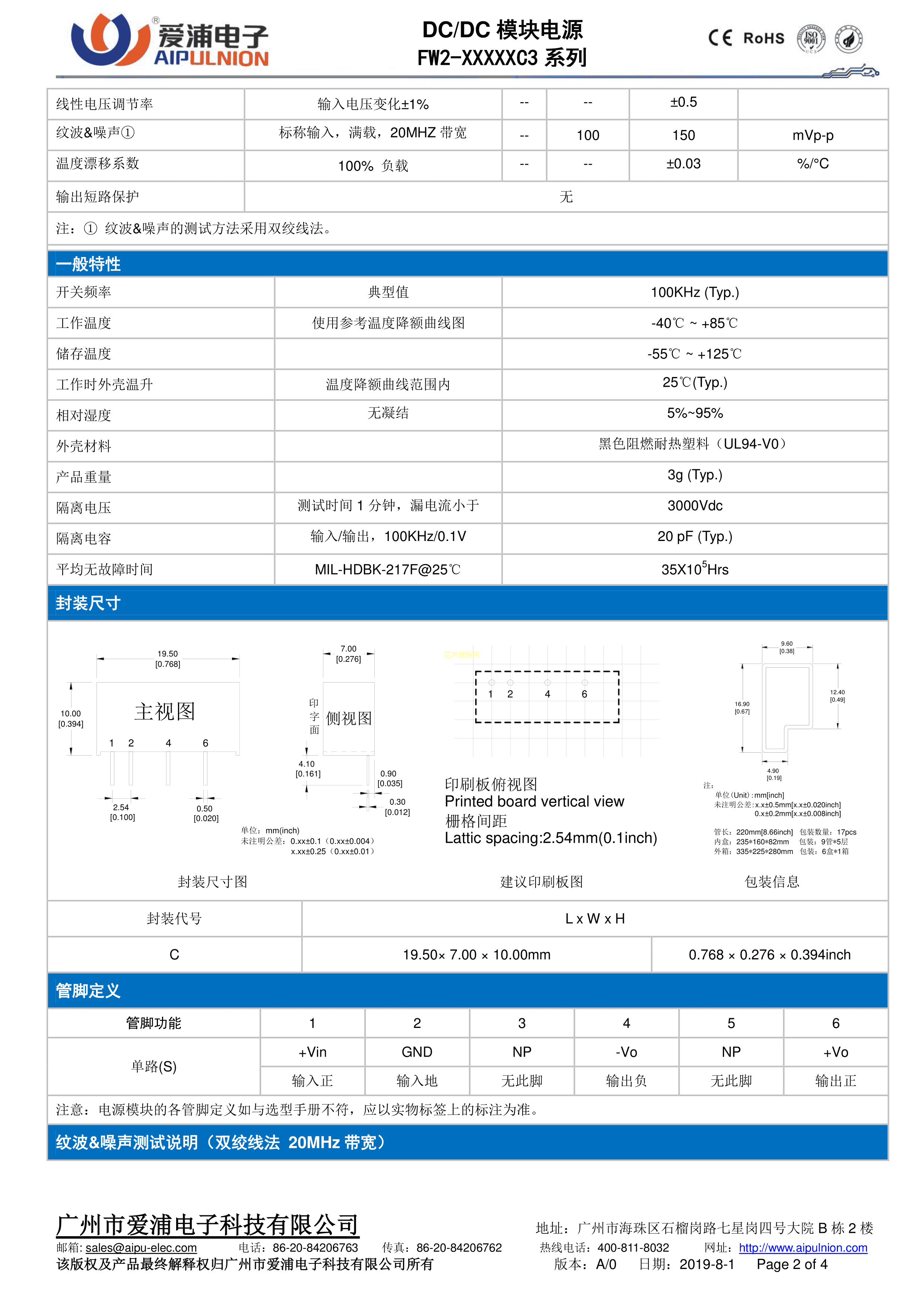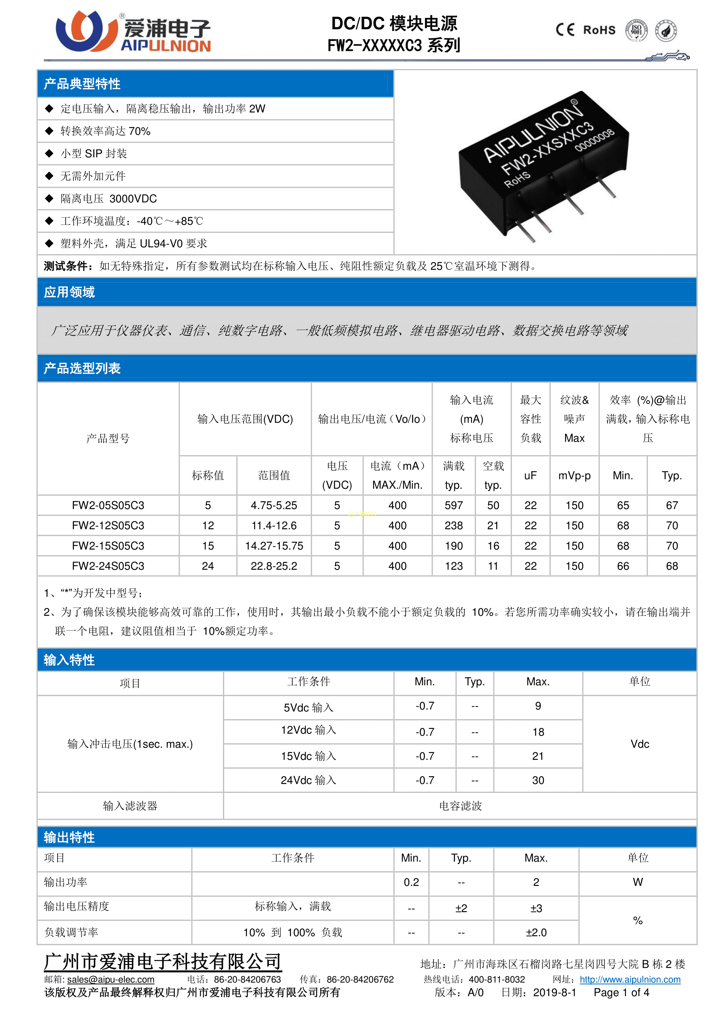 FW2-24S05C3数据手册插件封装AIPULNION(爱浦电子)PDF规格书,中英文下载