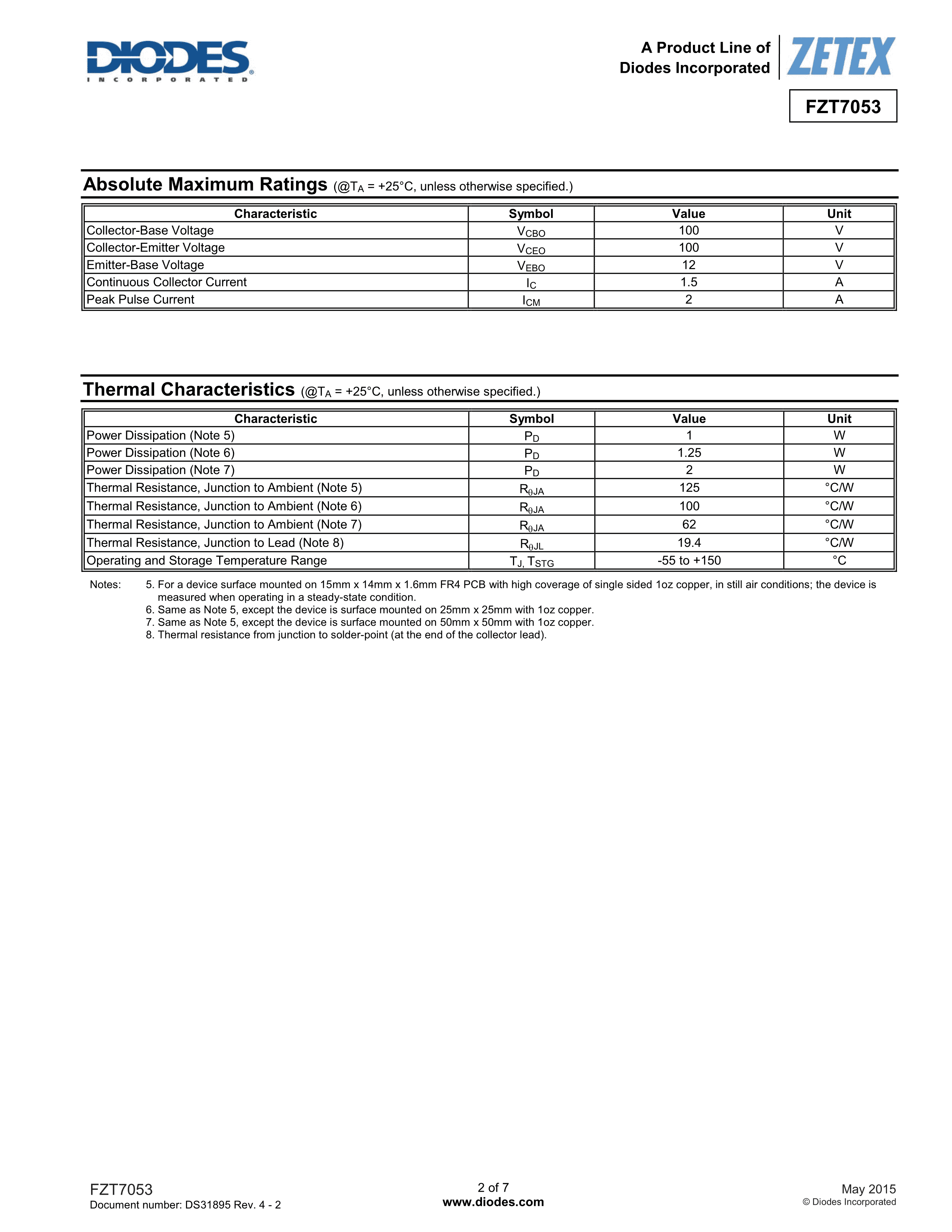 FZT7053TA数据手册SOT-223封装DIODES(美台)PDF规格书,中英文下载