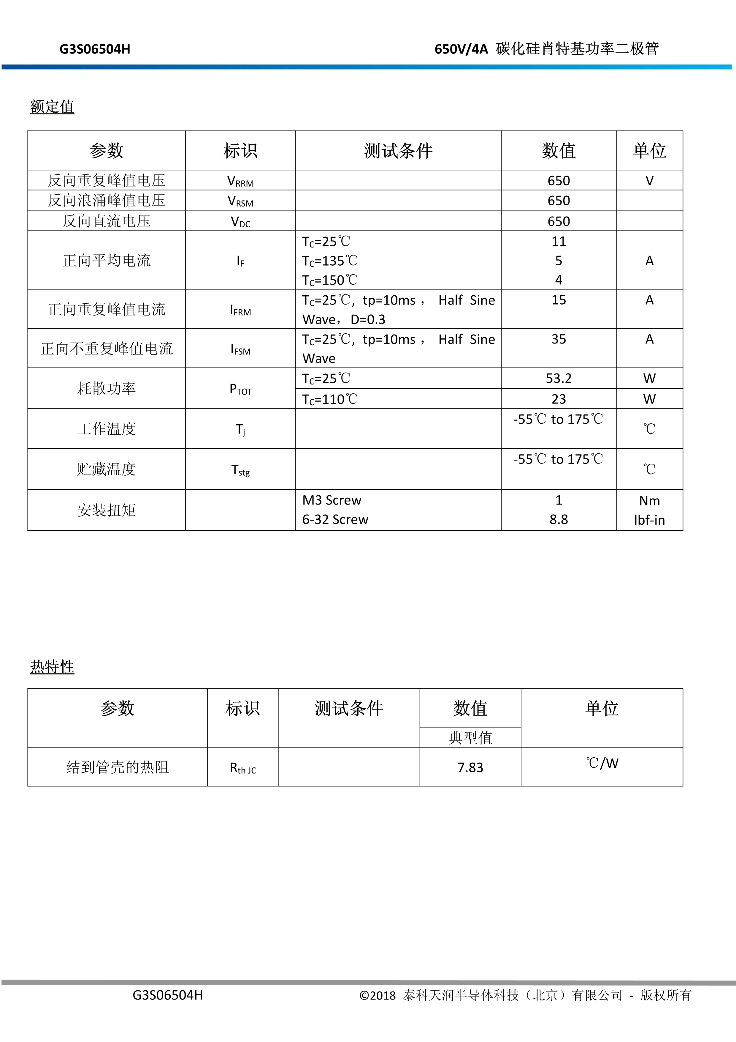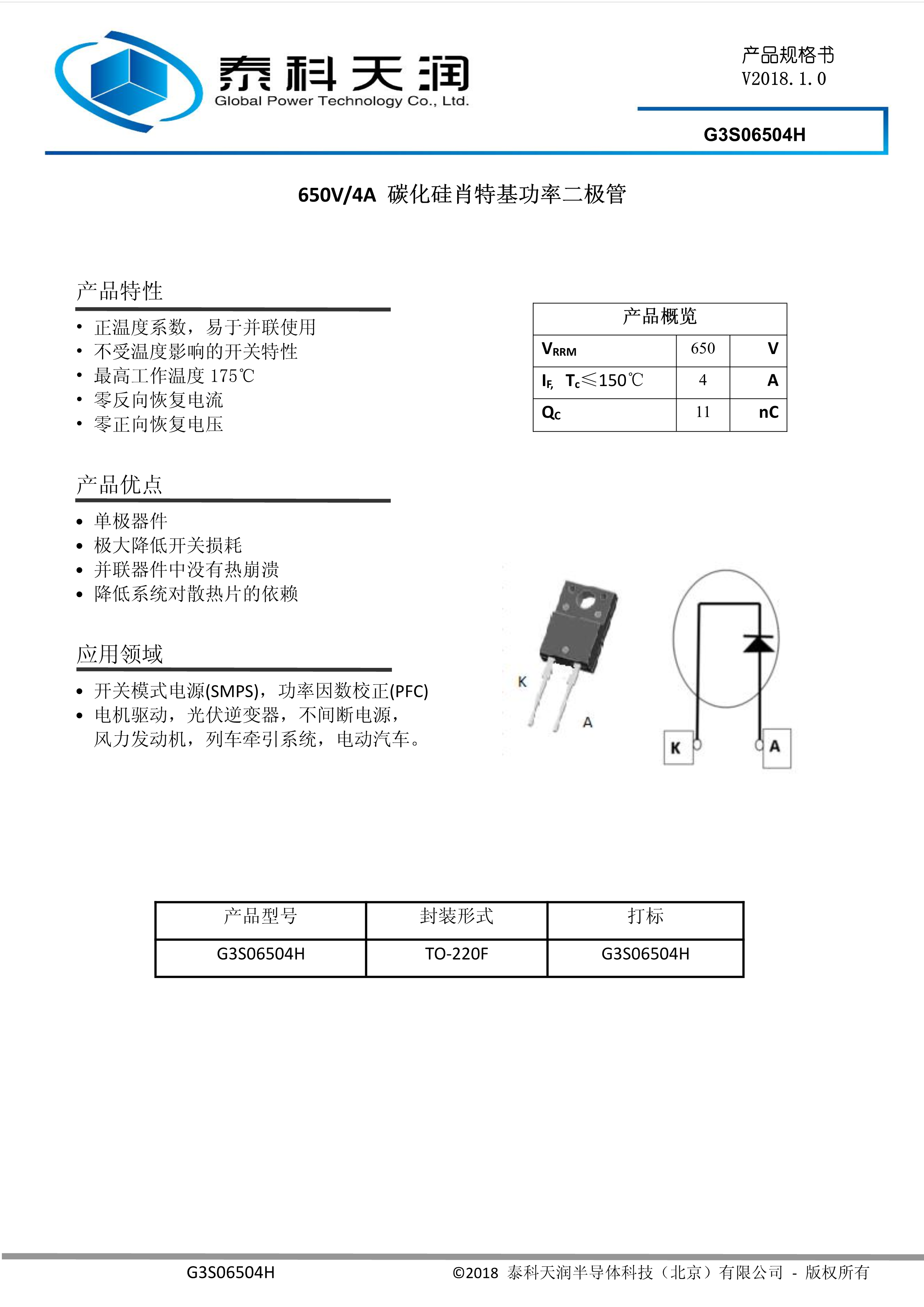 G3S06504H数据手册TO-220封装GPT(泰科天润)PDF规格书,中英文下载