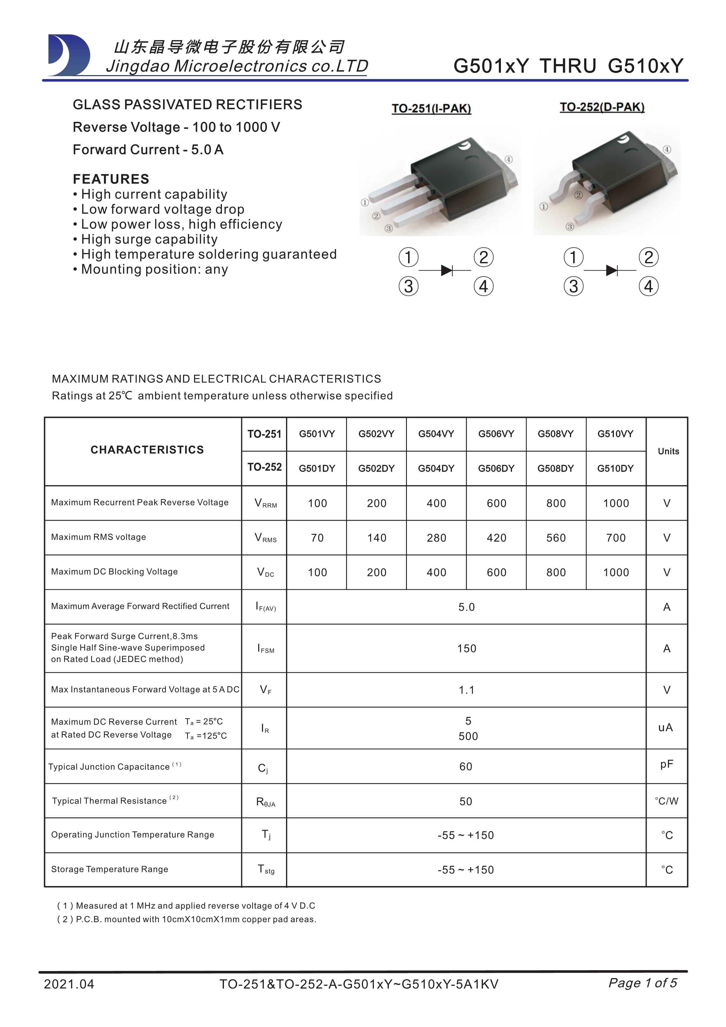 G508DY数据手册TO-252封装晶导微电子PDF规格书,中英文下载