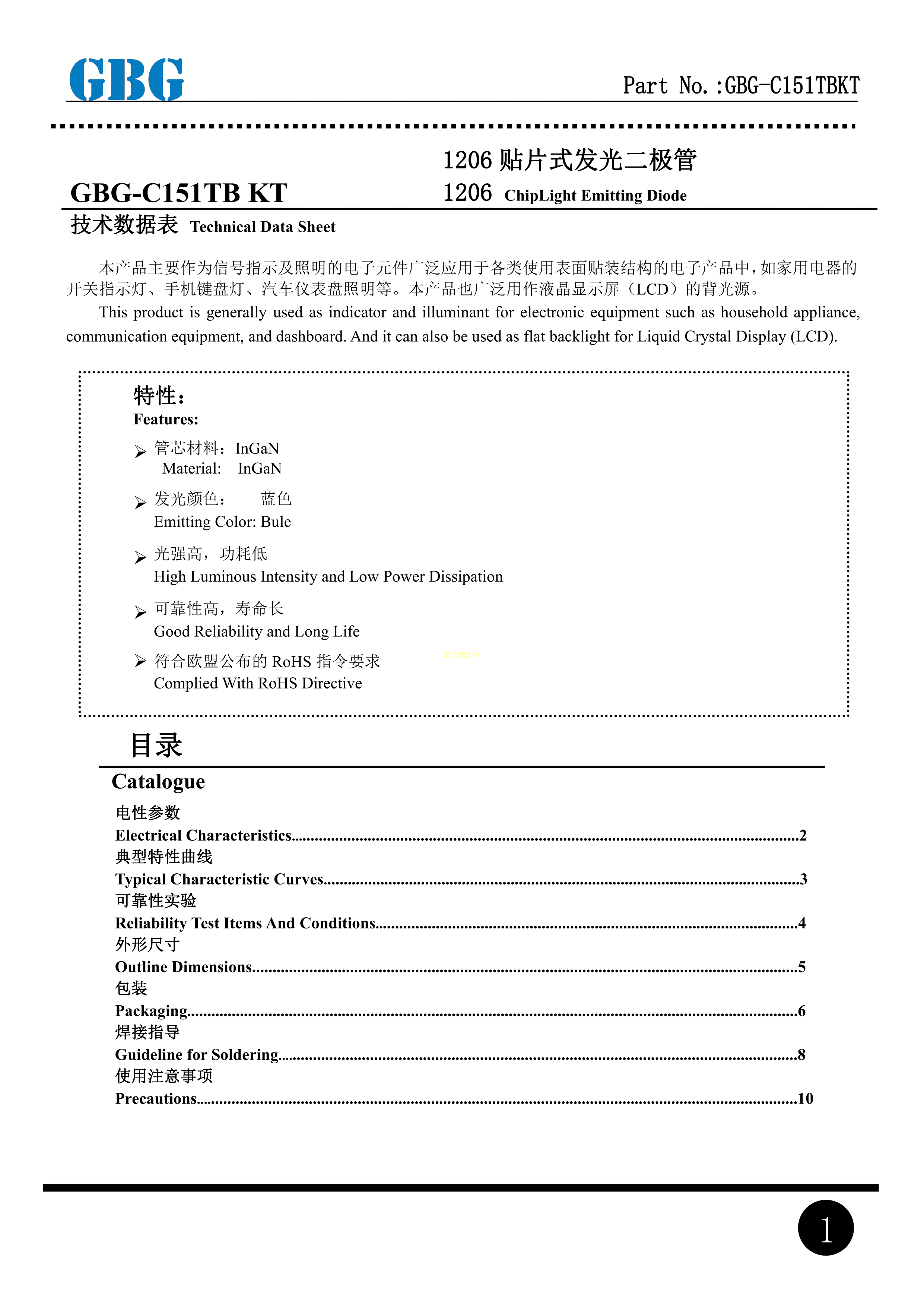 GBG-C151TBKT数据手册1206封装GBGPDF规格书,中英文下载