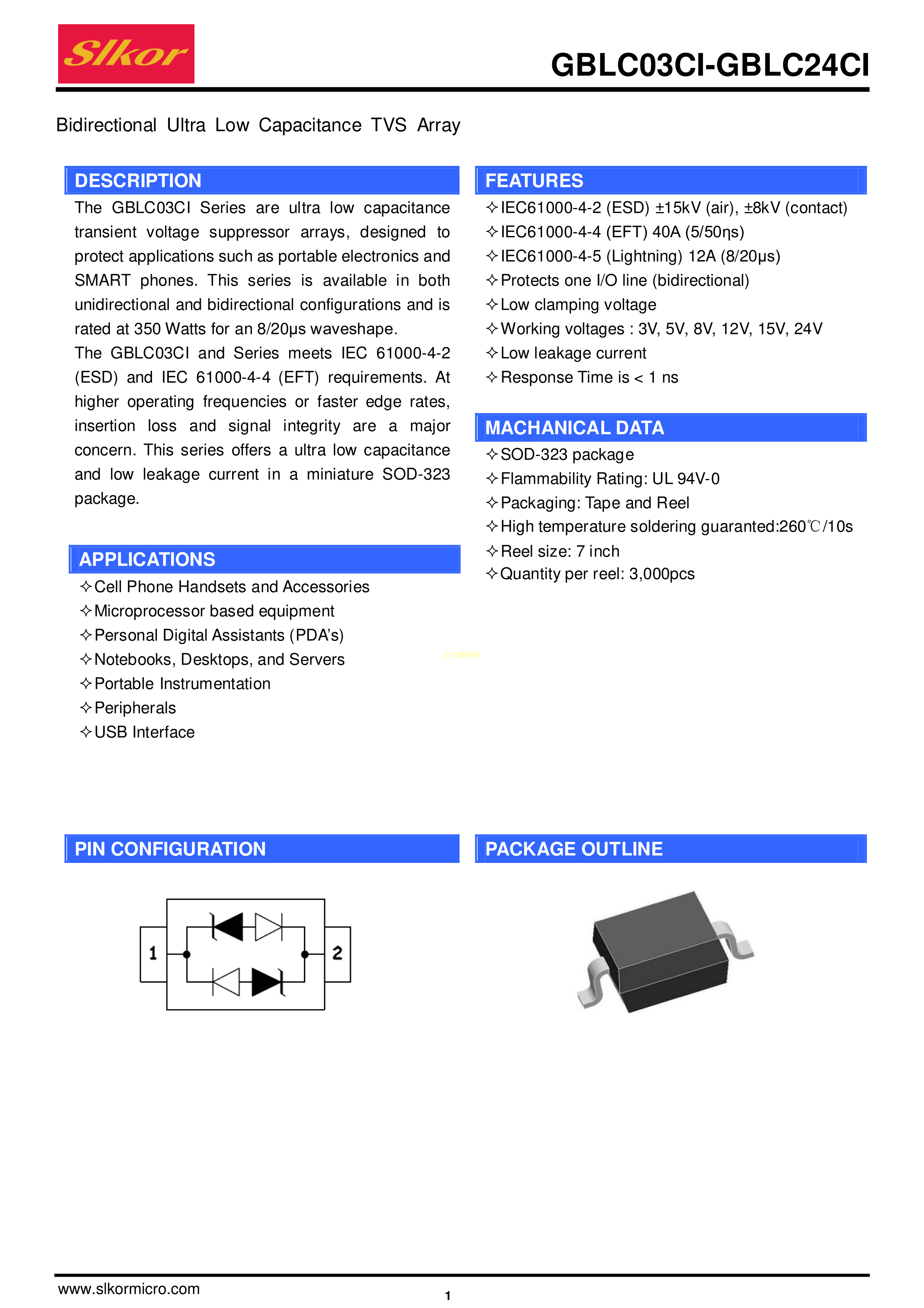 GBLC08CI数据手册SOD-323封装Slkor(萨科微)PDF规格书,中英文下载