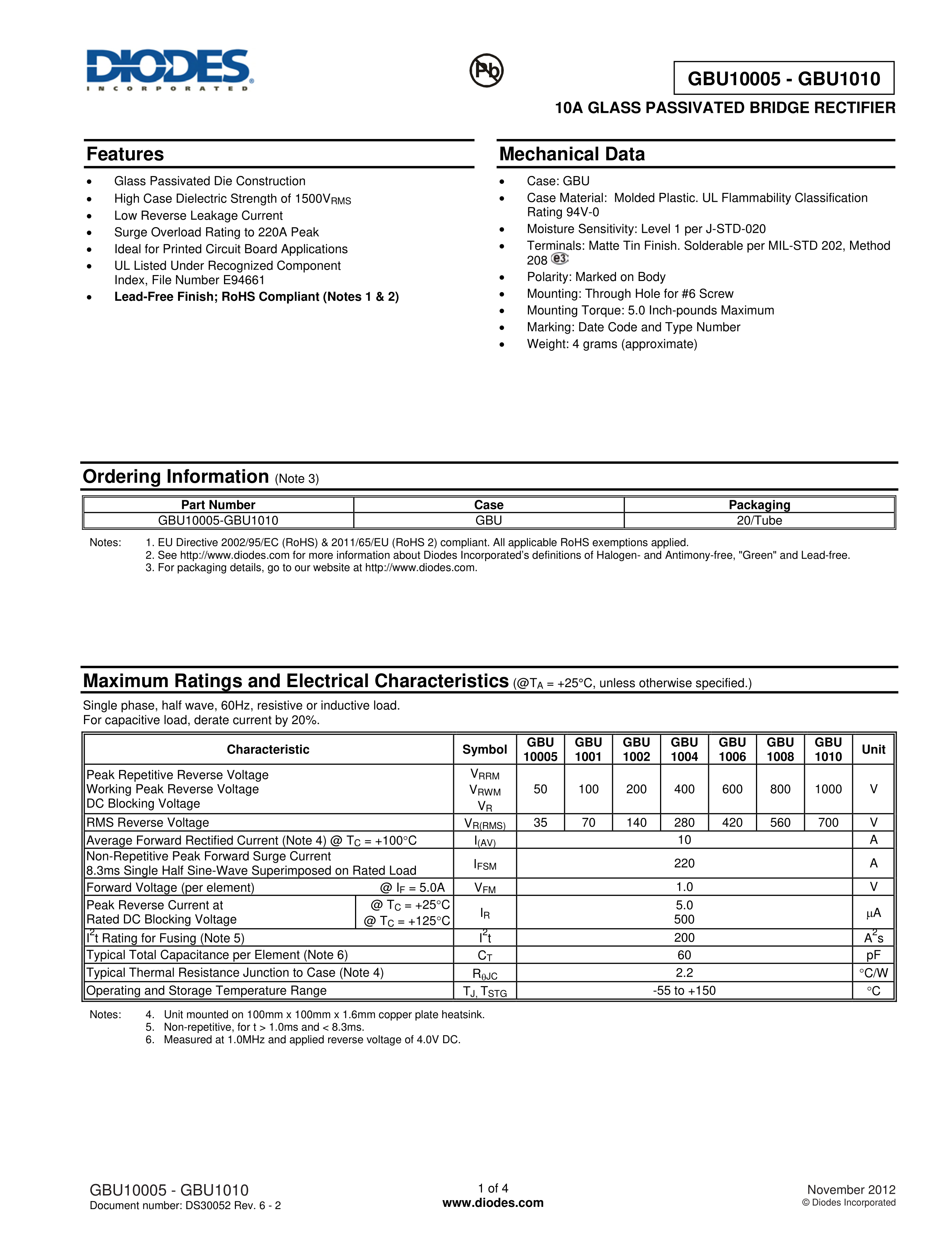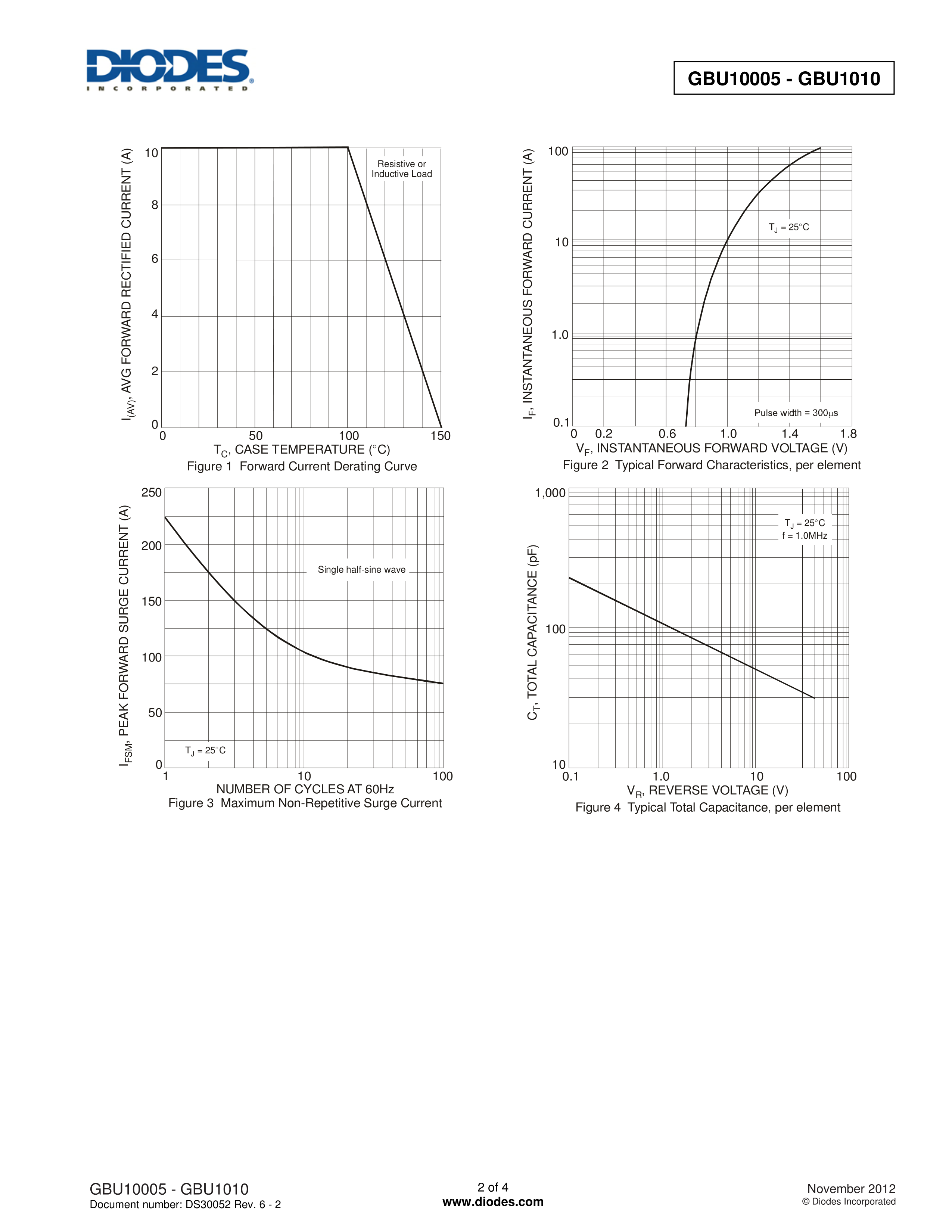 GBU1008数据手册GBU封装DIODES(美台)PDF规格书,中英文下载