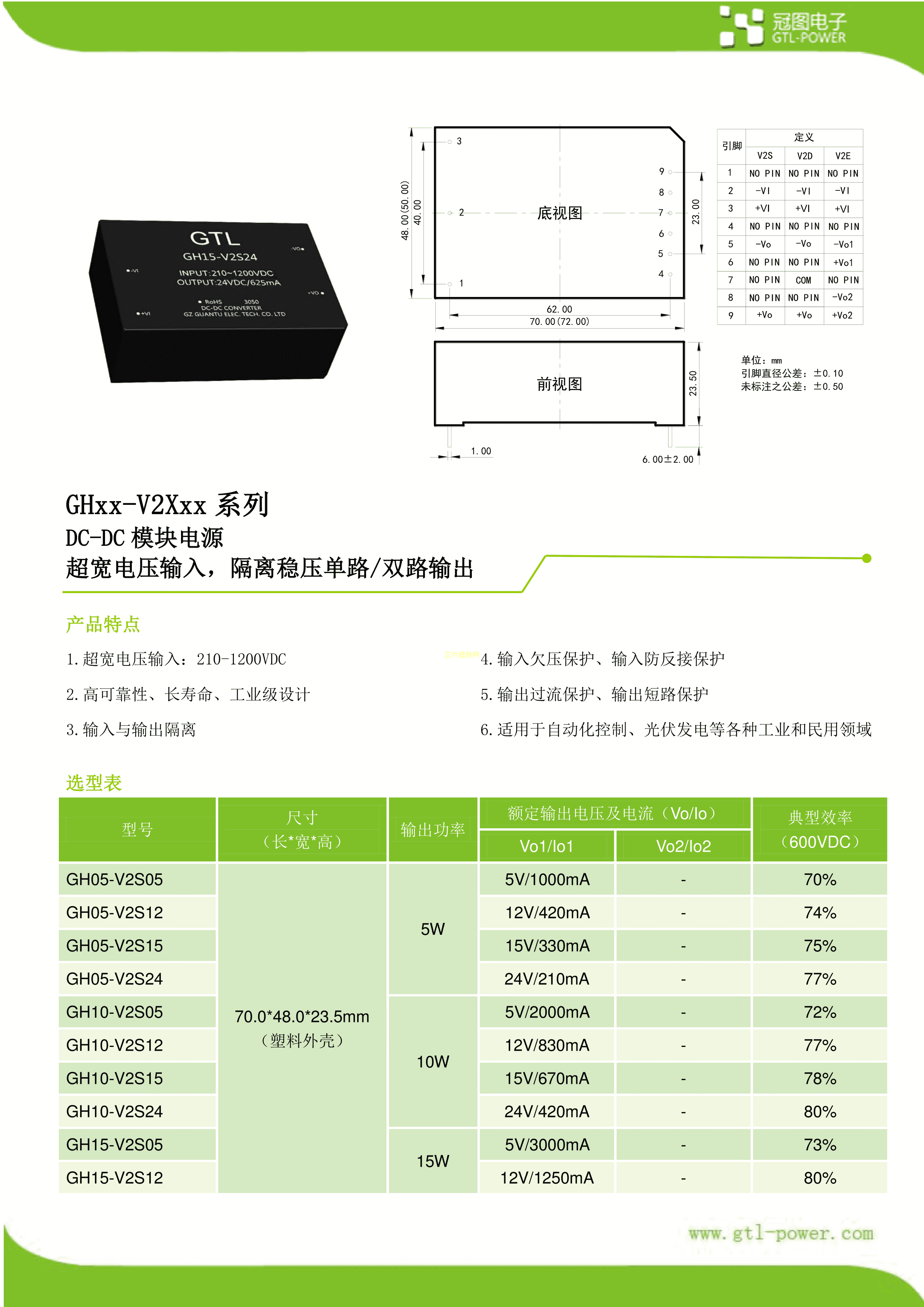 GH10-V2S12数据手册插件封装GTL-POWER(冠图电子)PDF规格书,中英文下载