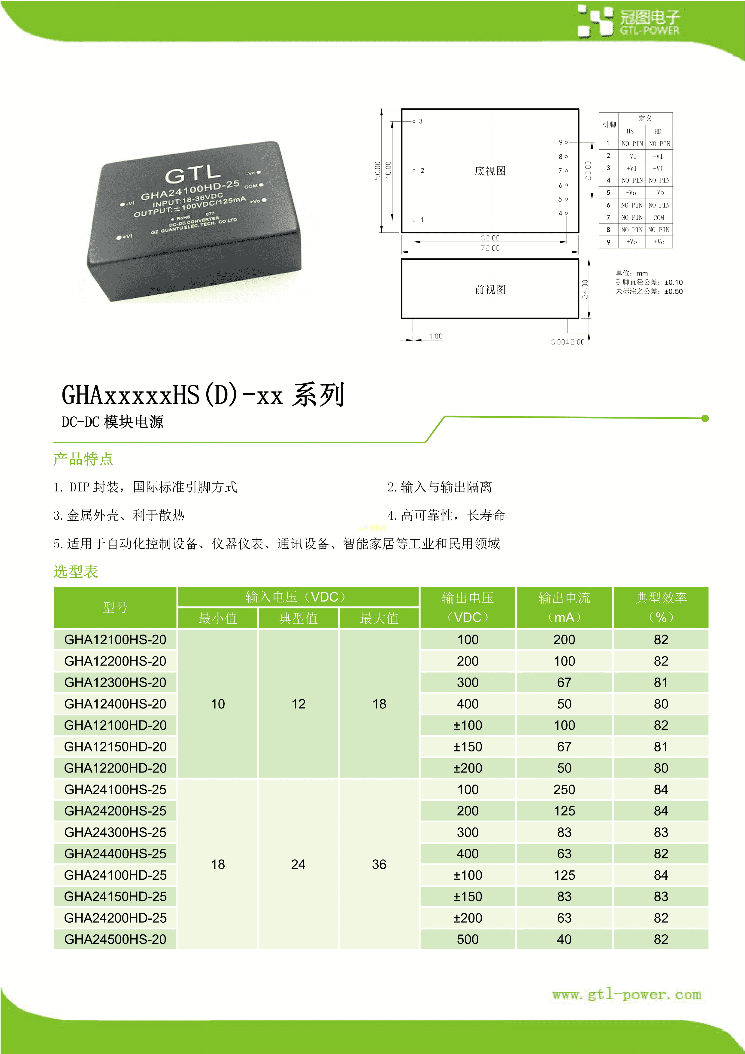 GHA24200HS-25数据手册插件封装GTL-POWER(冠图电子)PDF规格书,中英文下载