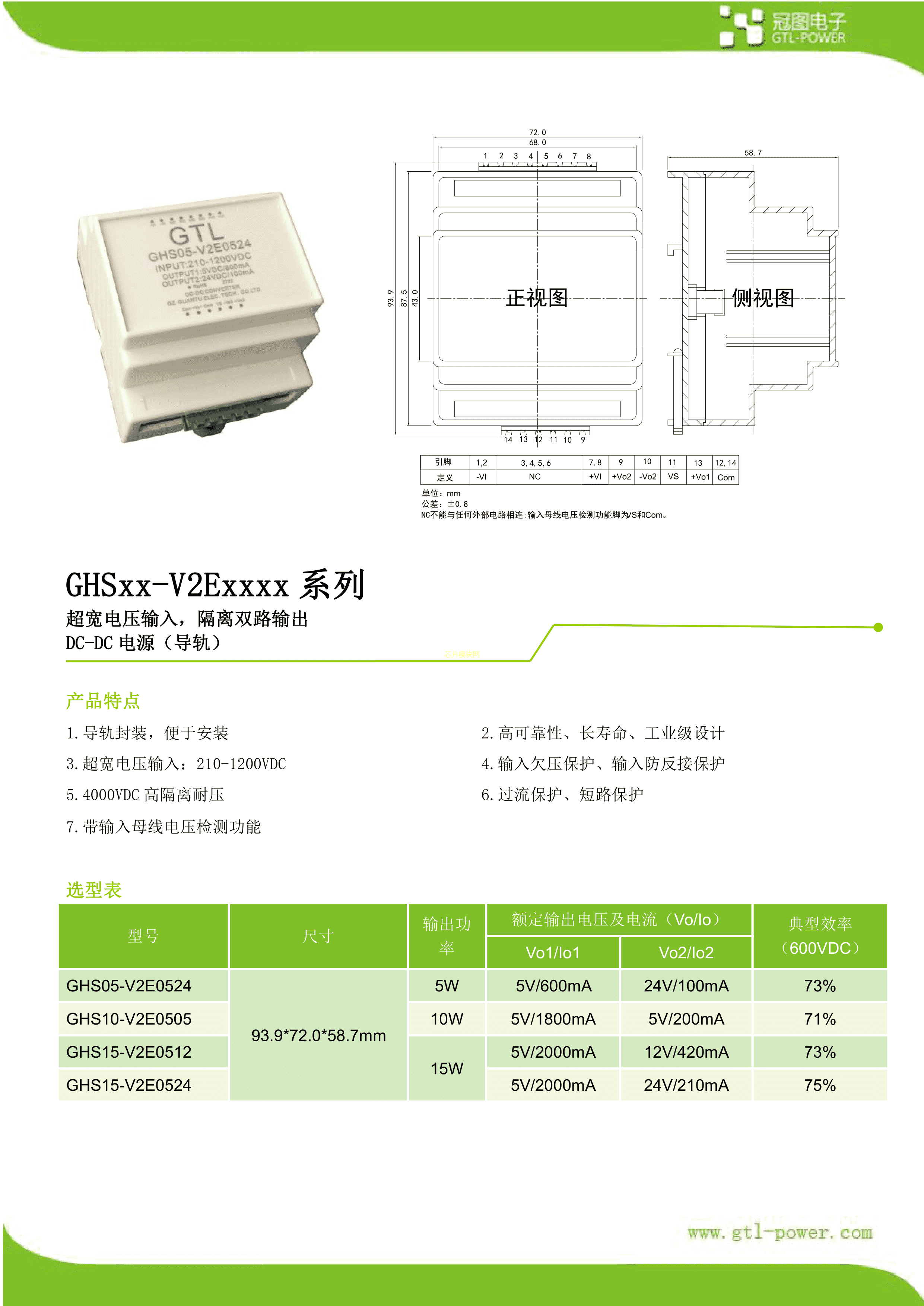 GHS05-V2E0524数据手册插件封装GTL-POWER(冠图电子)PDF规格书,中英文下载