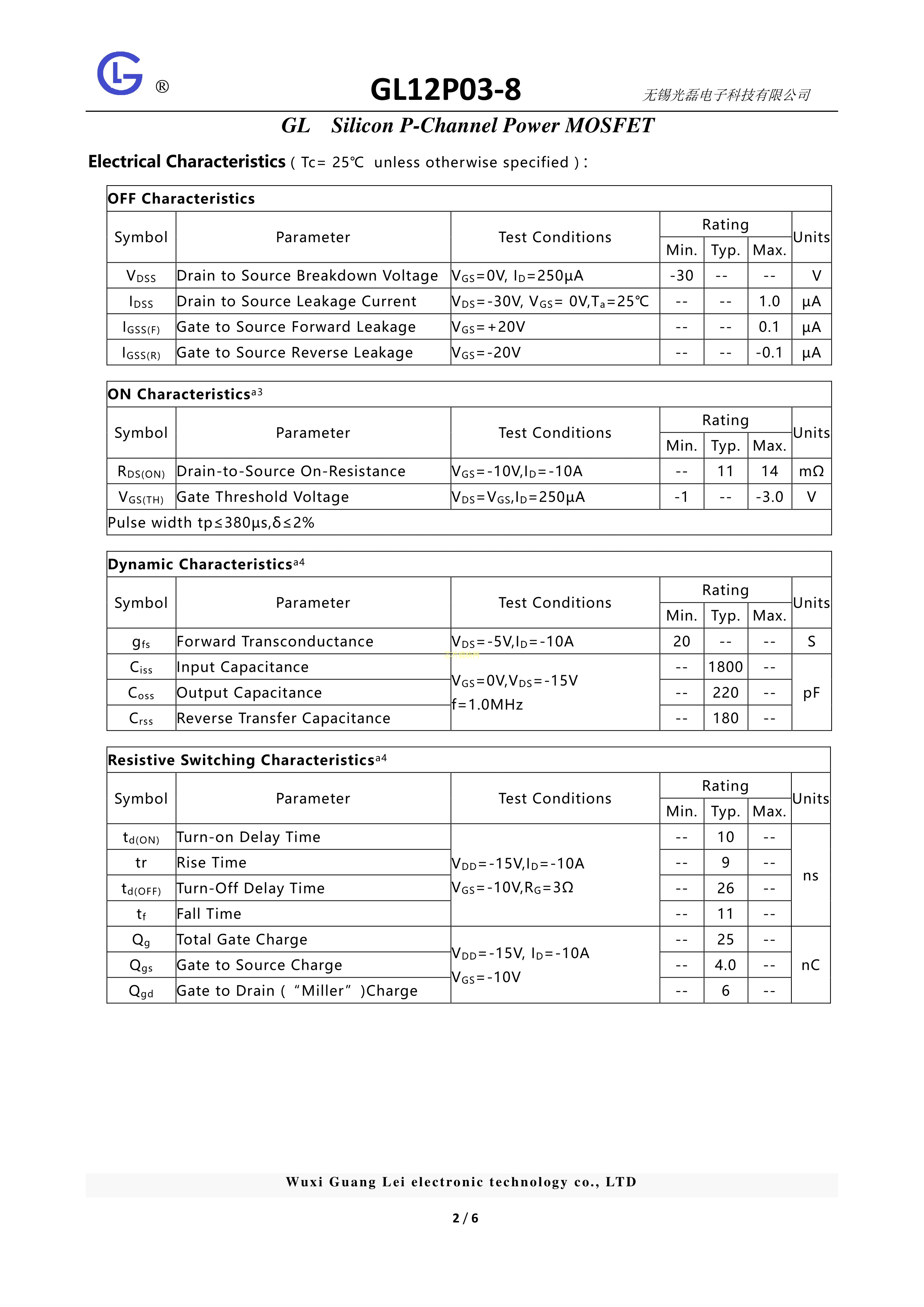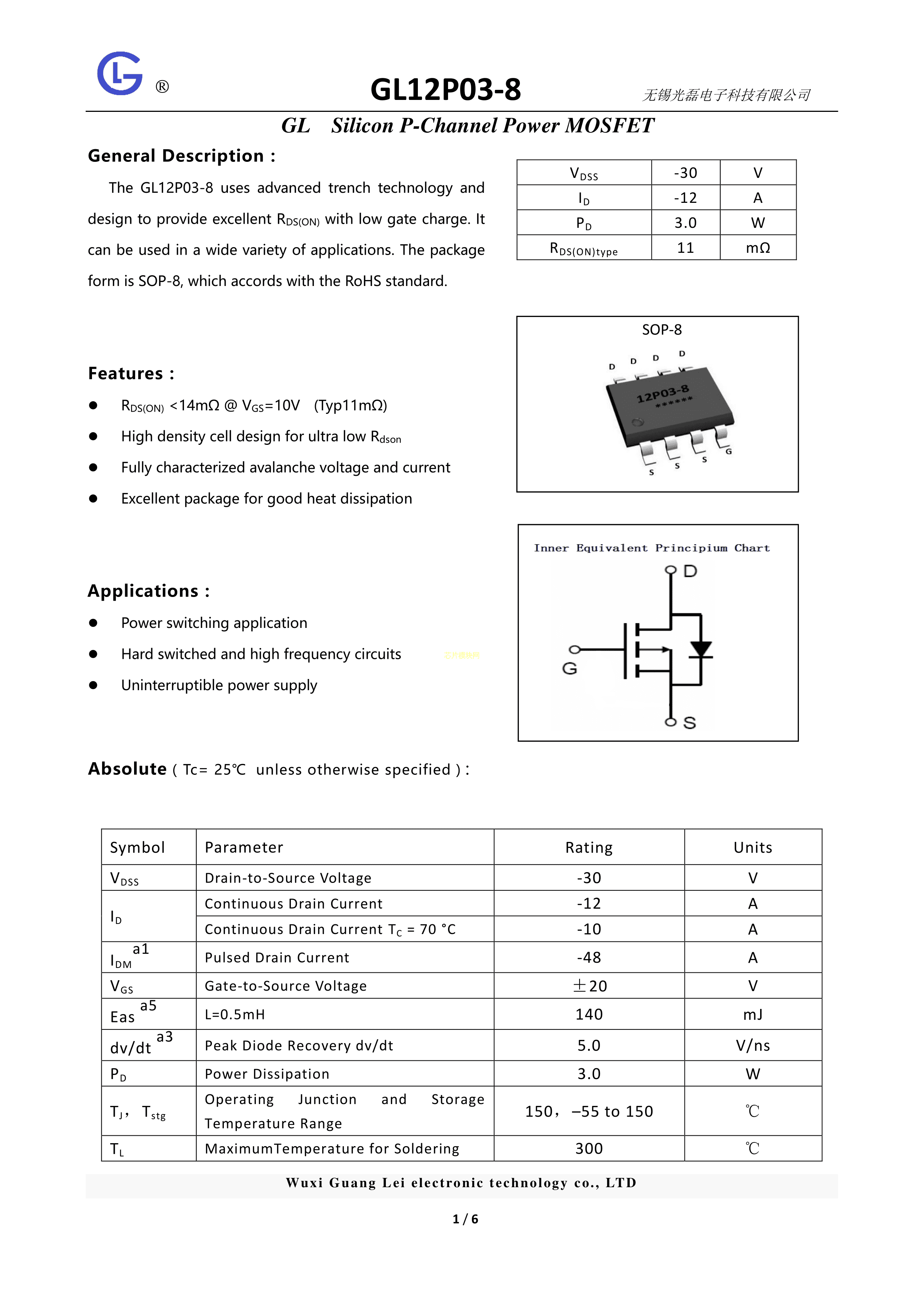 GL12P03-8数据手册SOP-8封装GL(光磊)PDF规格书,中英文下载