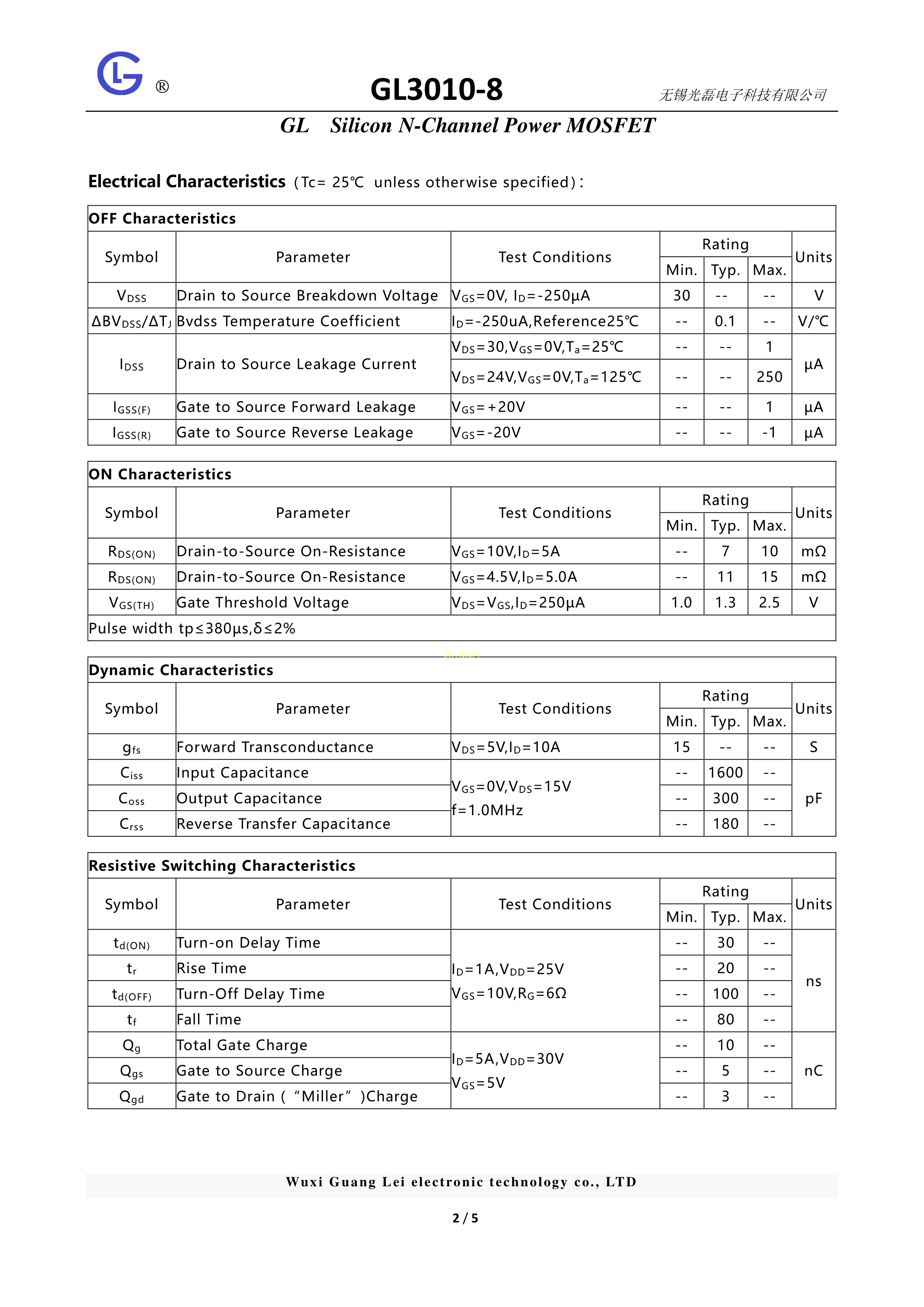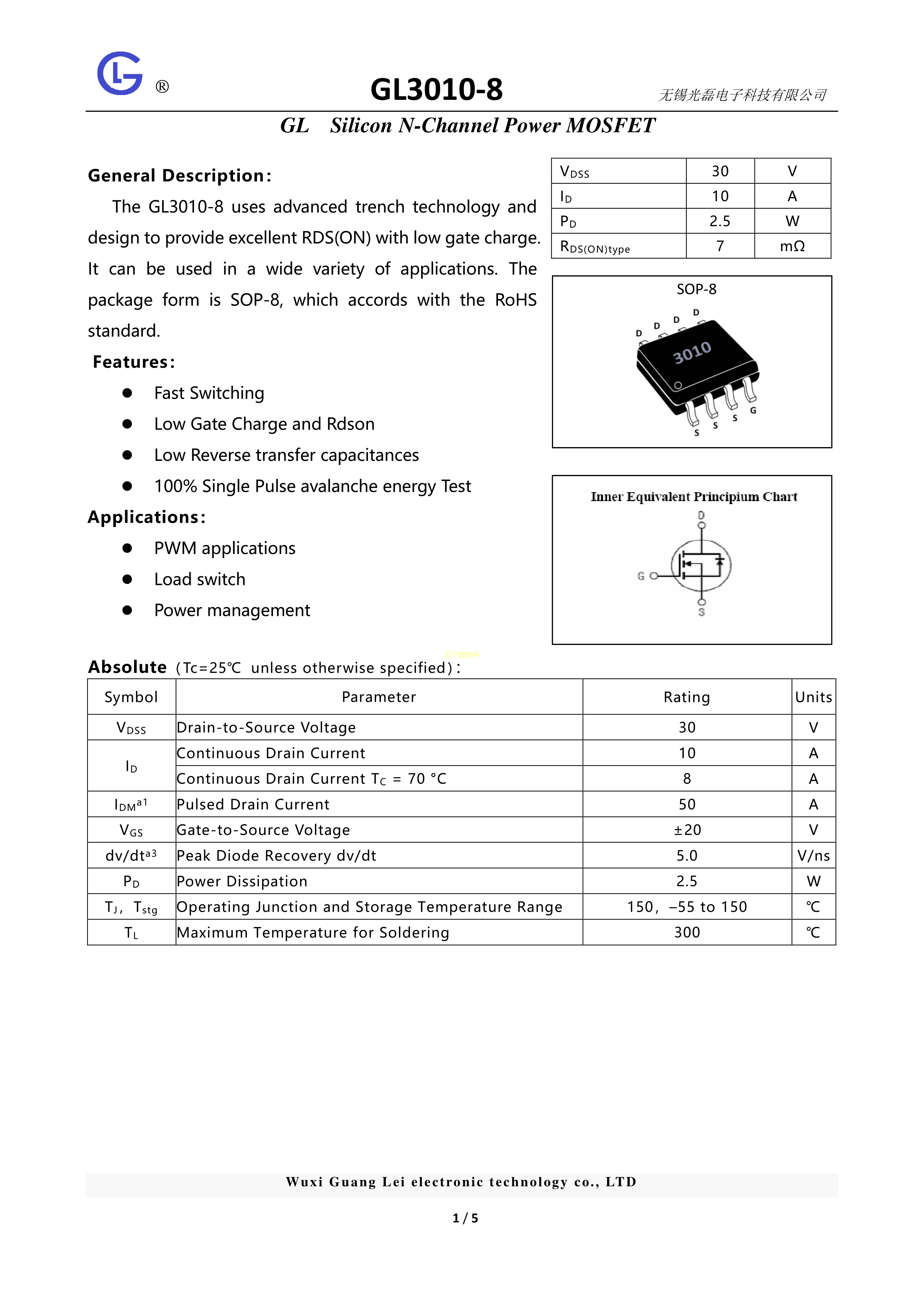 GL3010-8数据手册SOP-8封装GL(光磊)PDF规格书,中英文下载