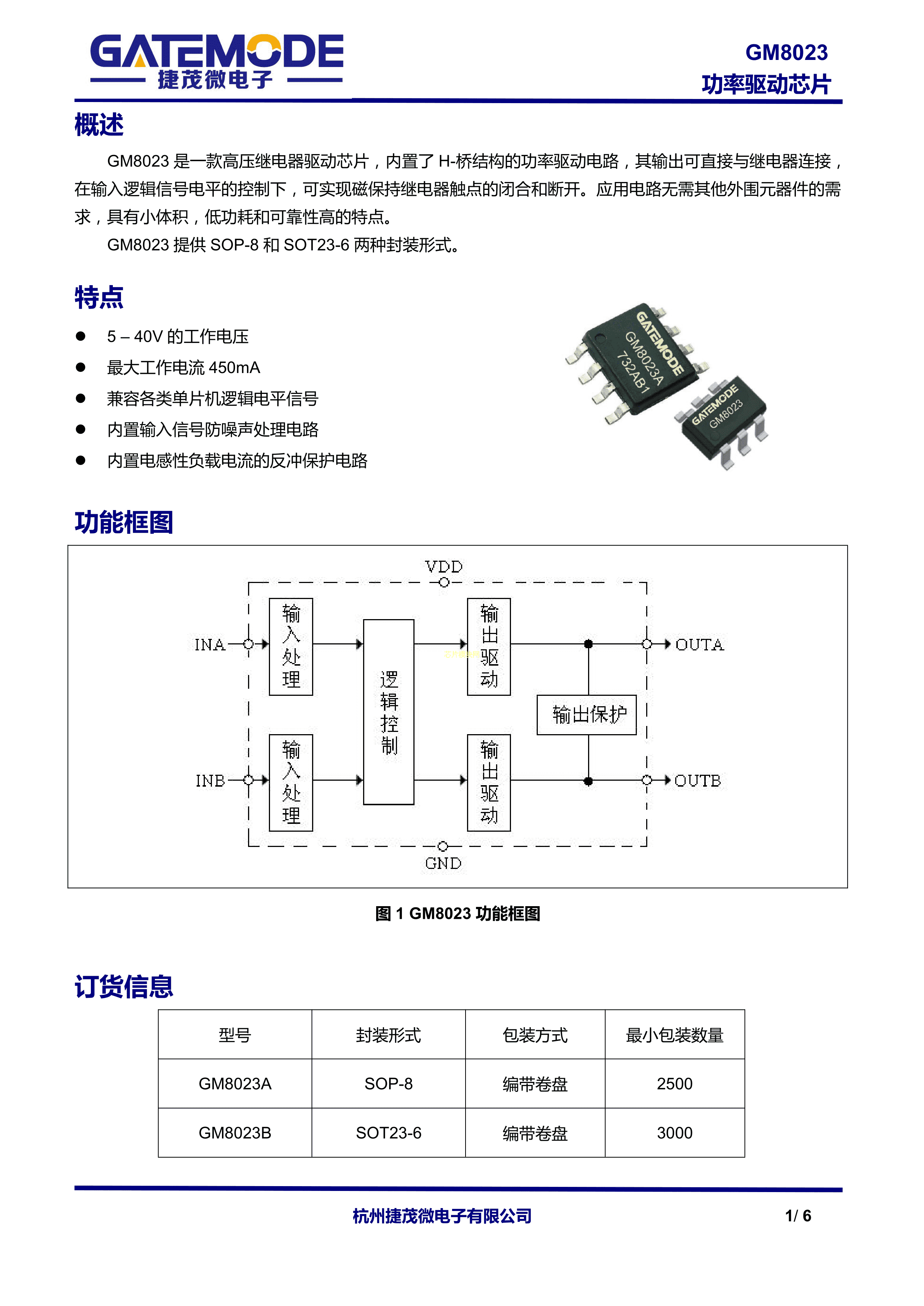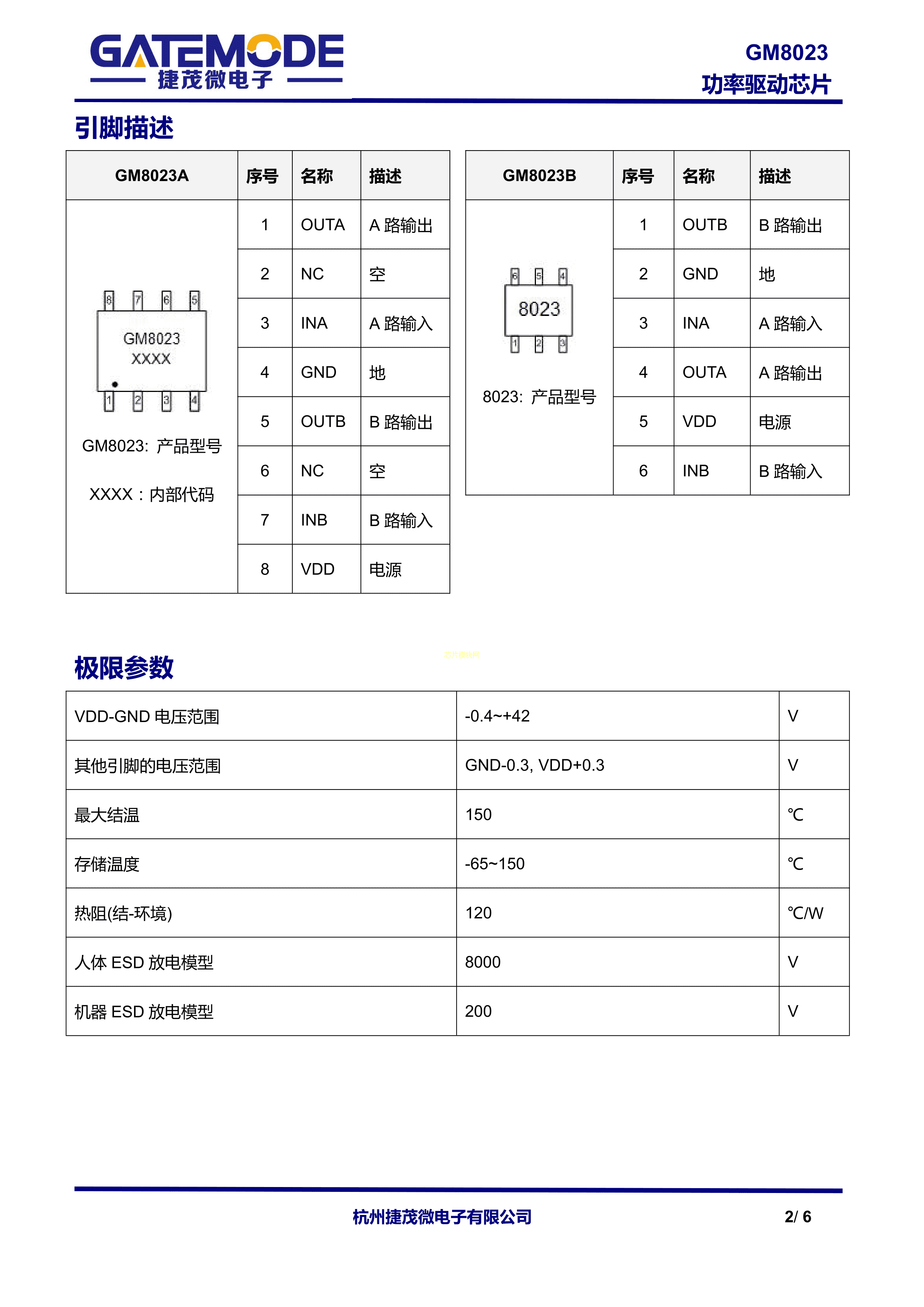 GM8023A数据手册SOP-8封装GATEMODE(捷茂微)PDF规格书,中英文下载
