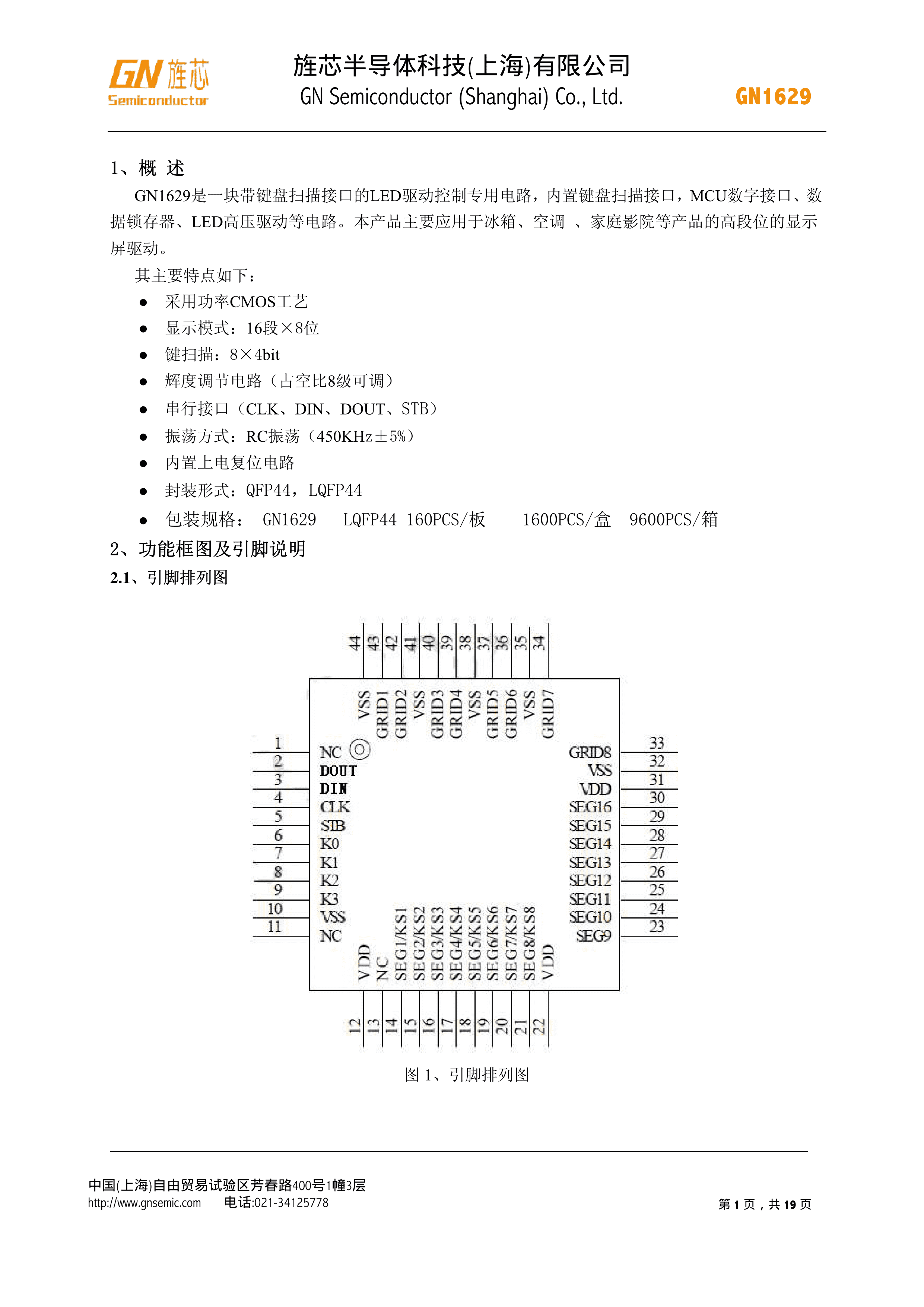 GN1629数据手册LQFP-44封装GN(旌芯半导体)PDF规格书,中英文下载