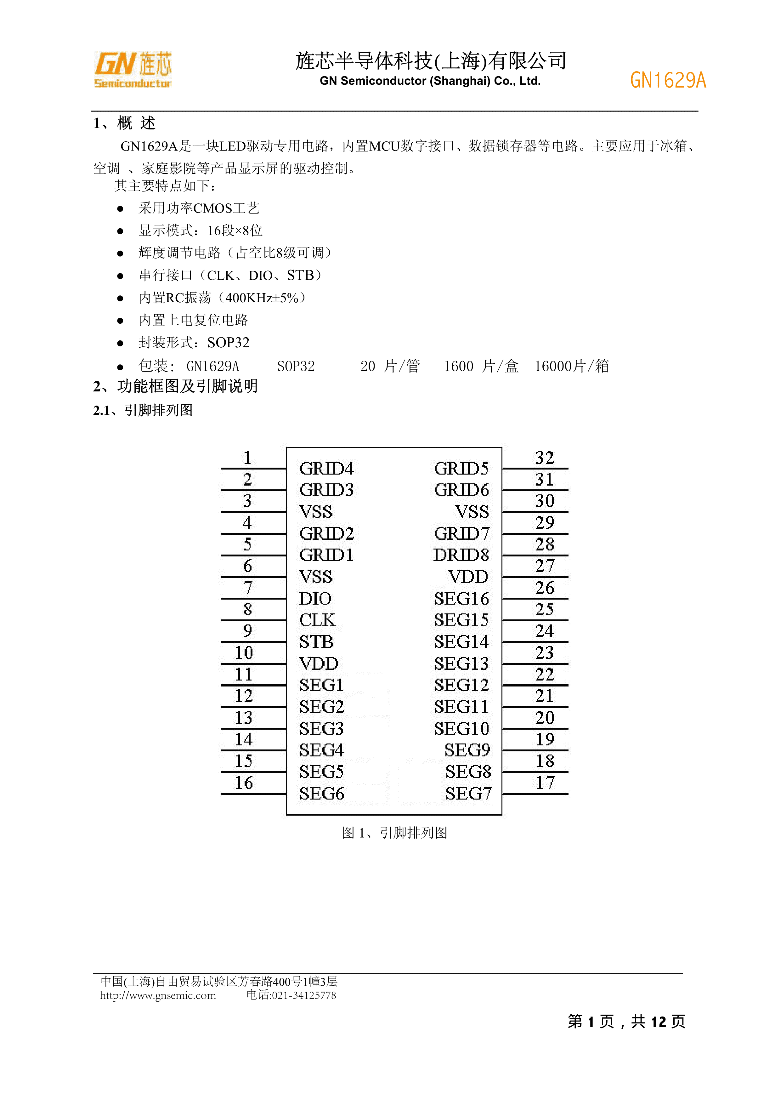 GN1629A数据手册SOP-32封装GN(旌芯半导体)PDF规格书,中英文下载