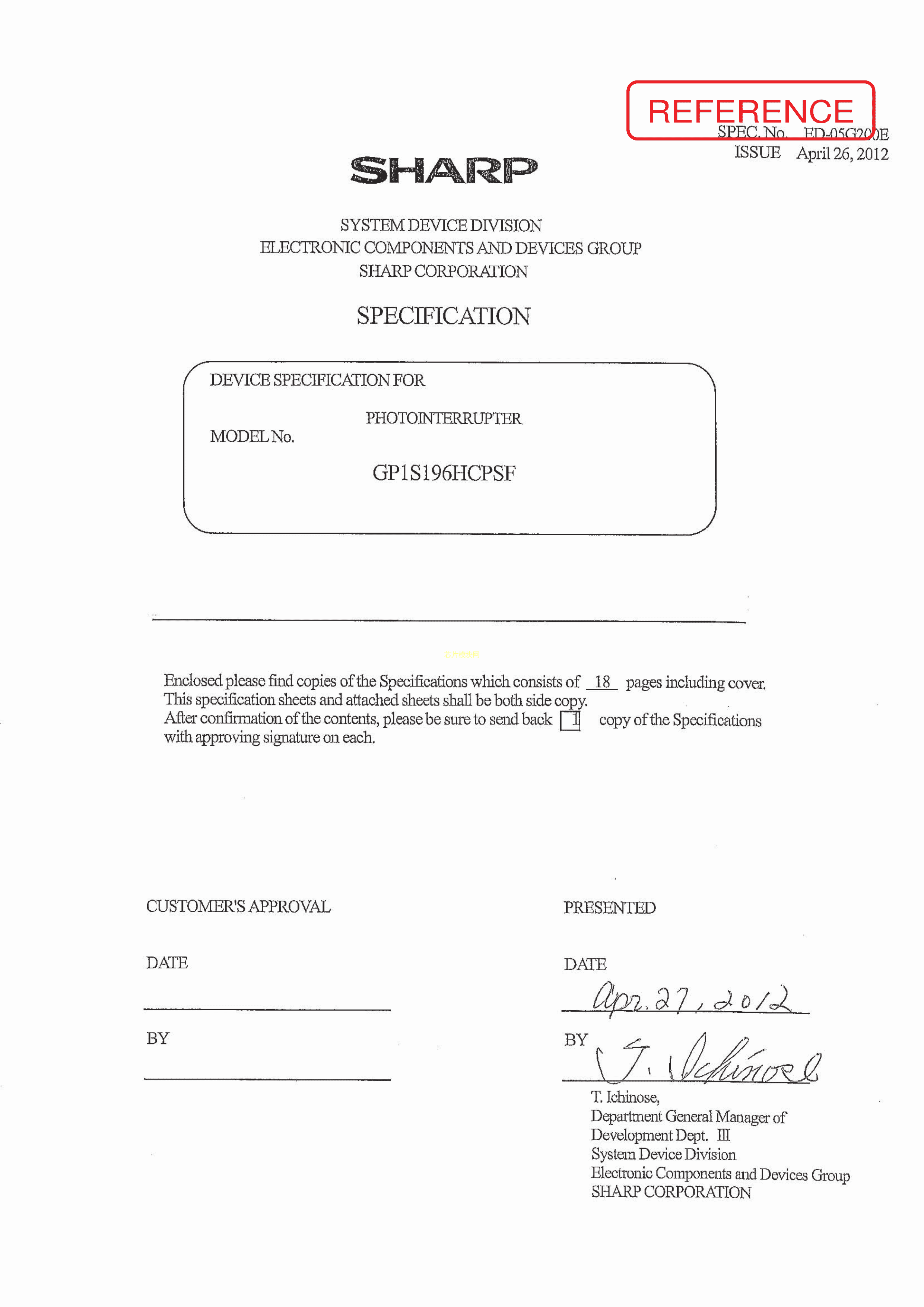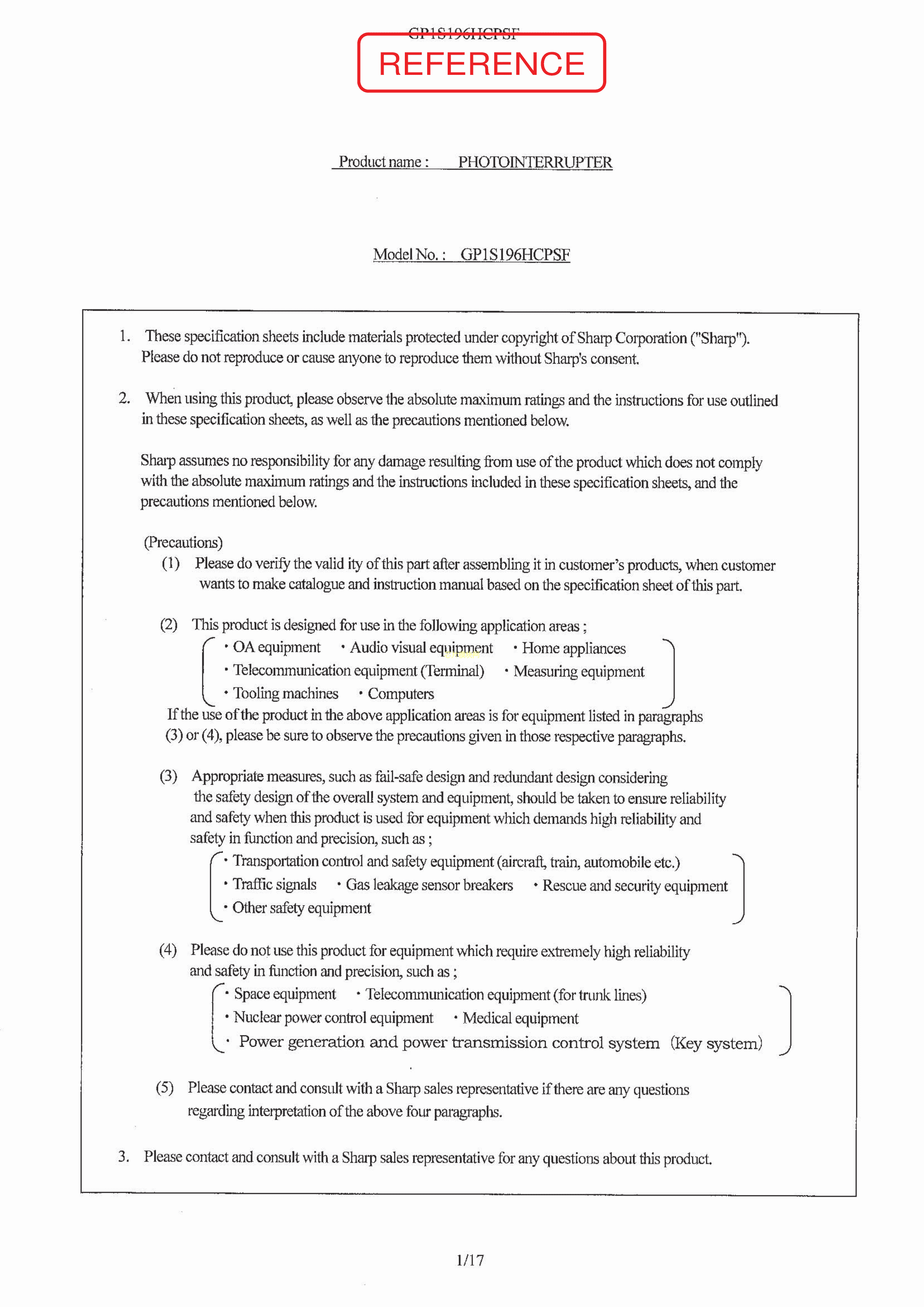 GP1S196HCPSF数据手册SMD-4封装SHARP(夏普)PDF规格书,中英文下载