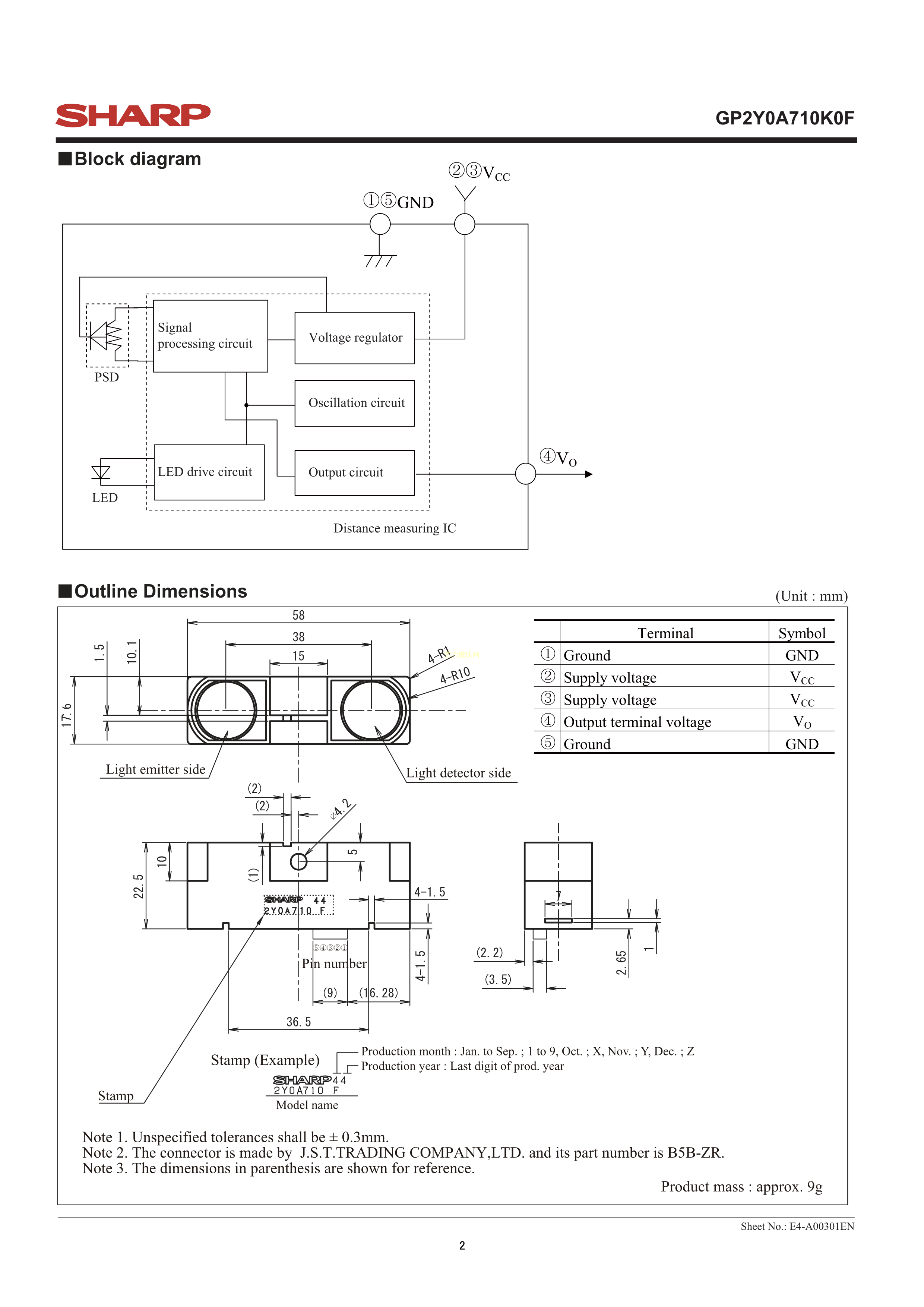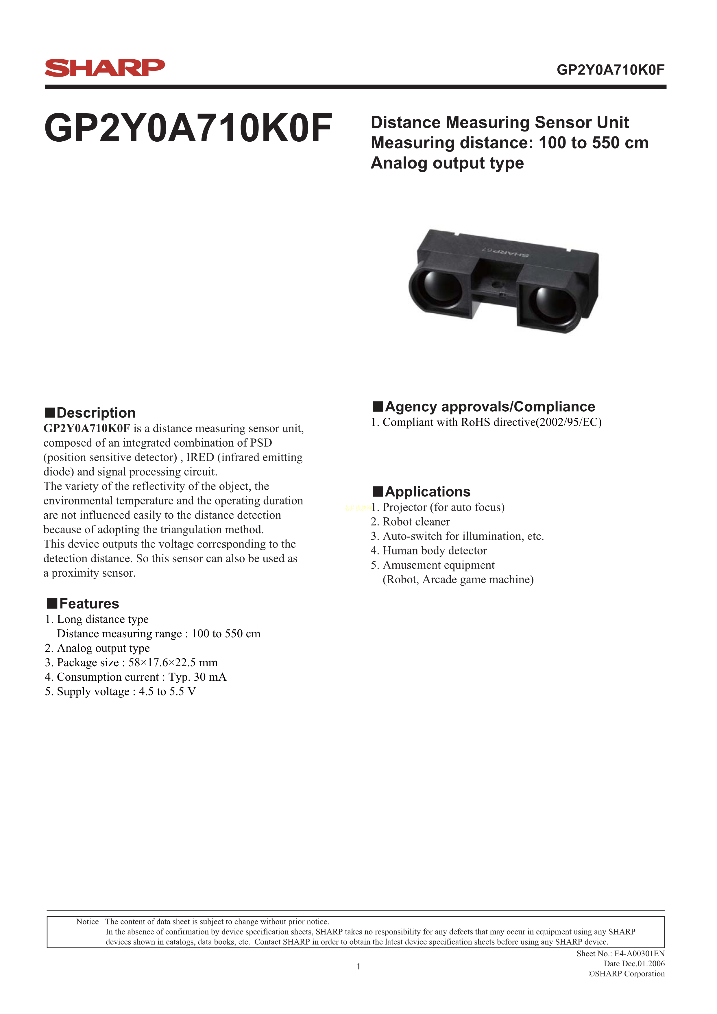 GP2Y0A710K0F数据手册-封装SHARP(夏普)PDF规格书,中英文下载