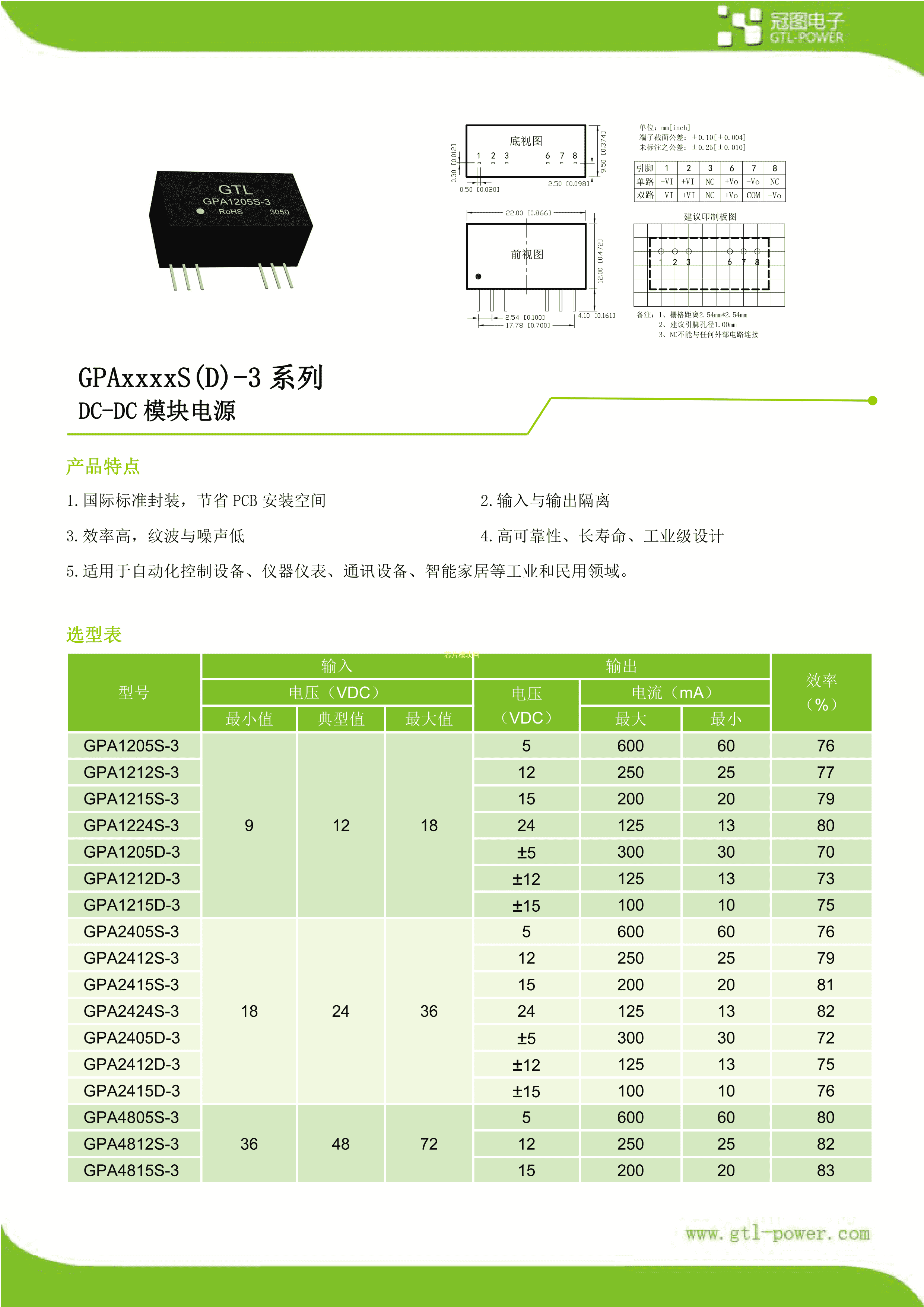 GPA4812S-3数据手册-封装GTL-POWER(冠图电子)PDF规格书,中英文下载