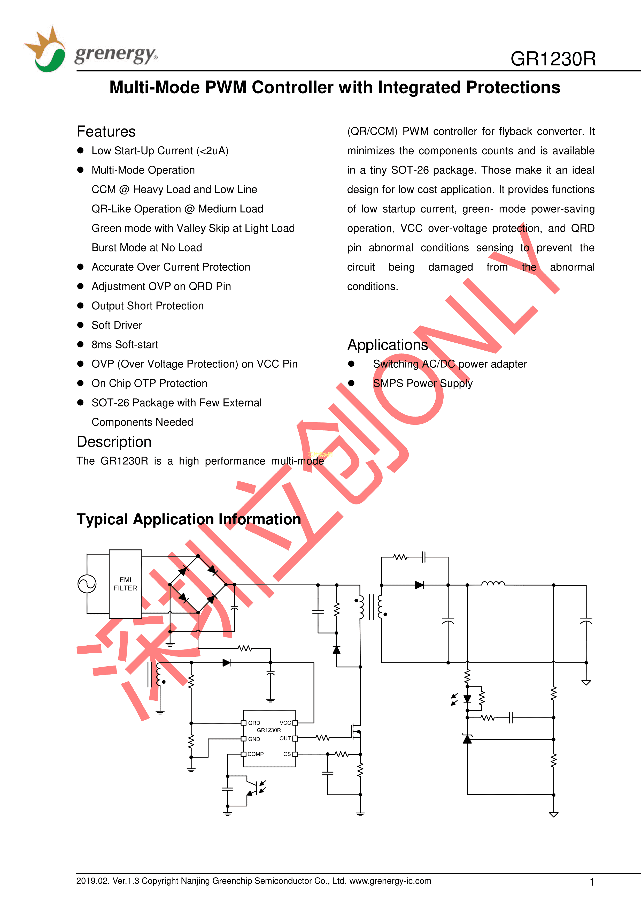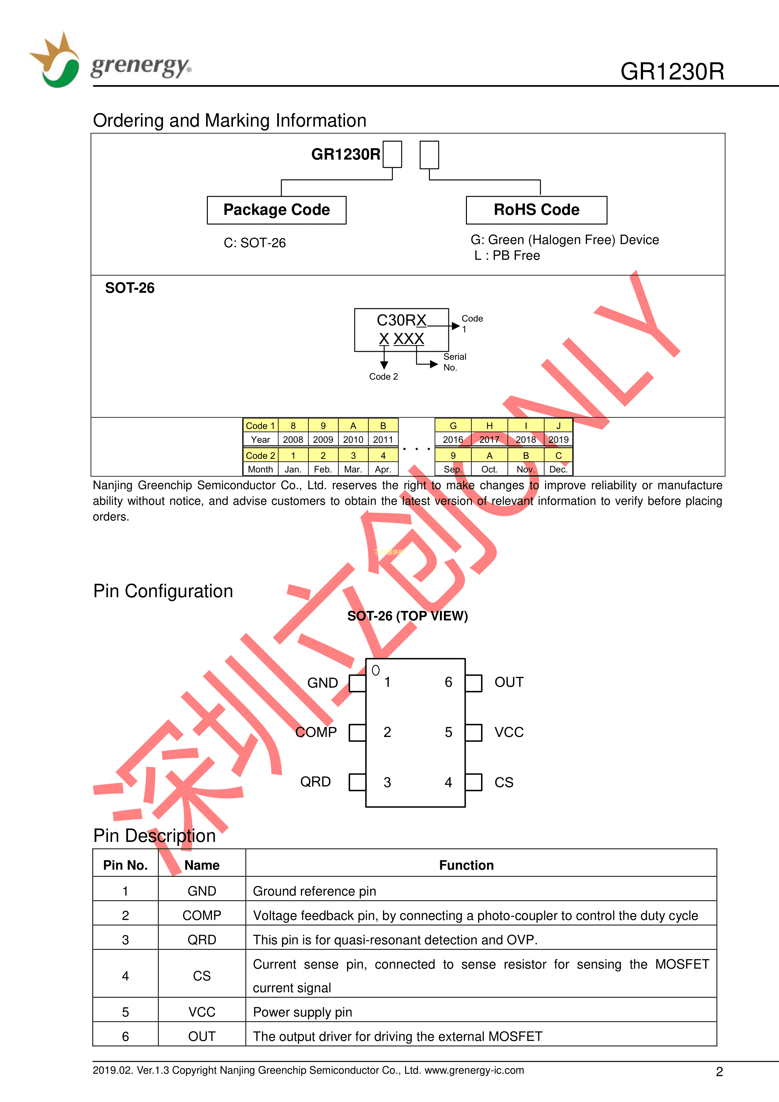 GR1230RACG数据手册SOT-26封装Grenergy(南京绿芯)PDF规格书,中英文下载