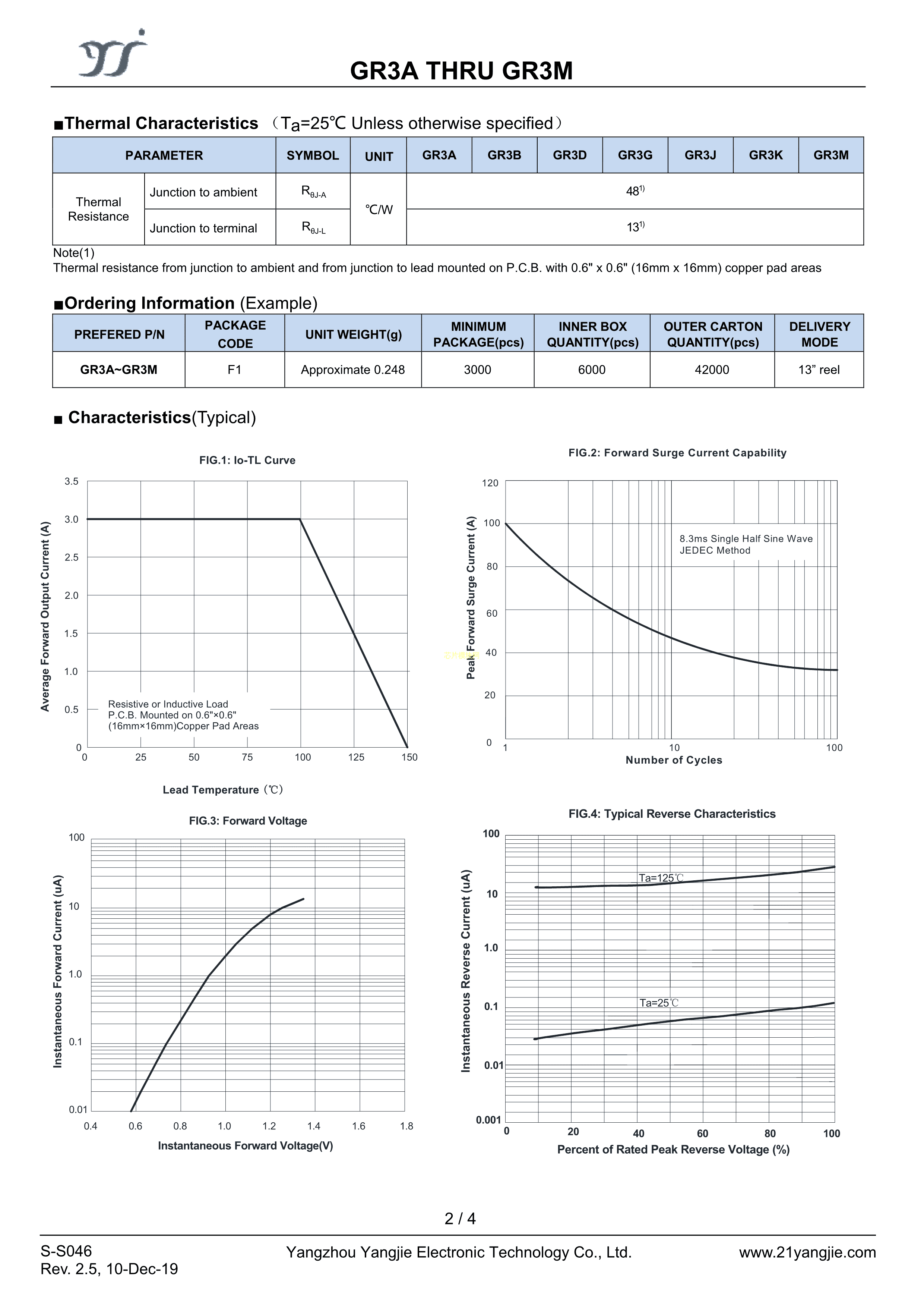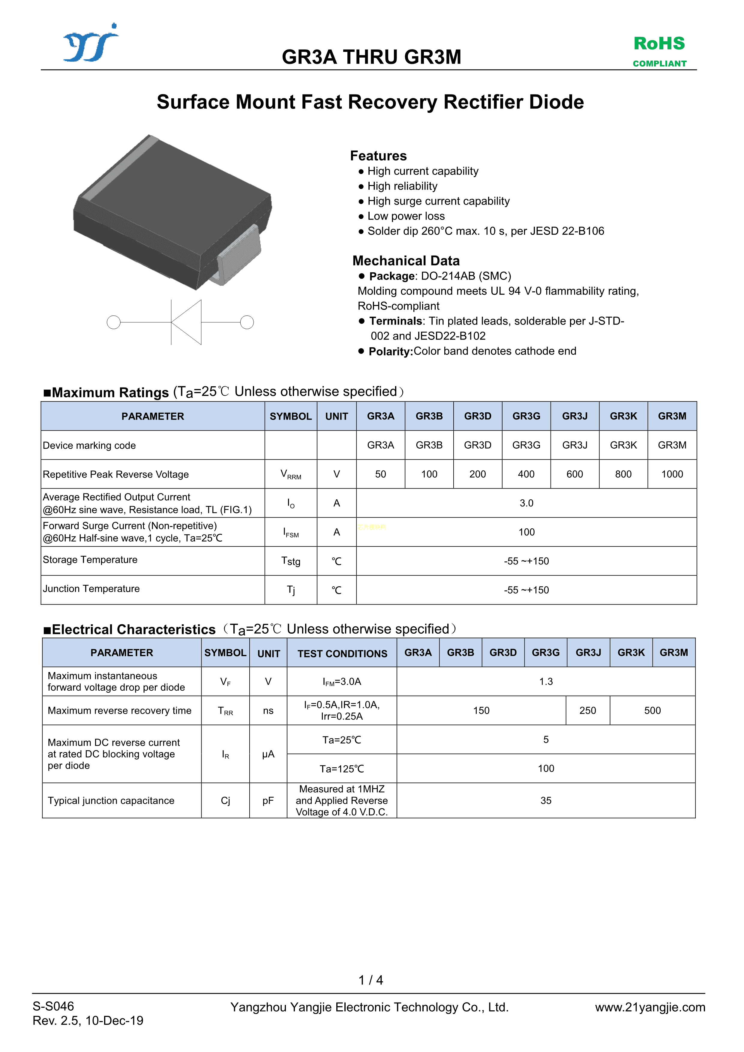 GR3G数据手册SMC封装YANGJIE(扬杰)PDF规格书,中英文下载