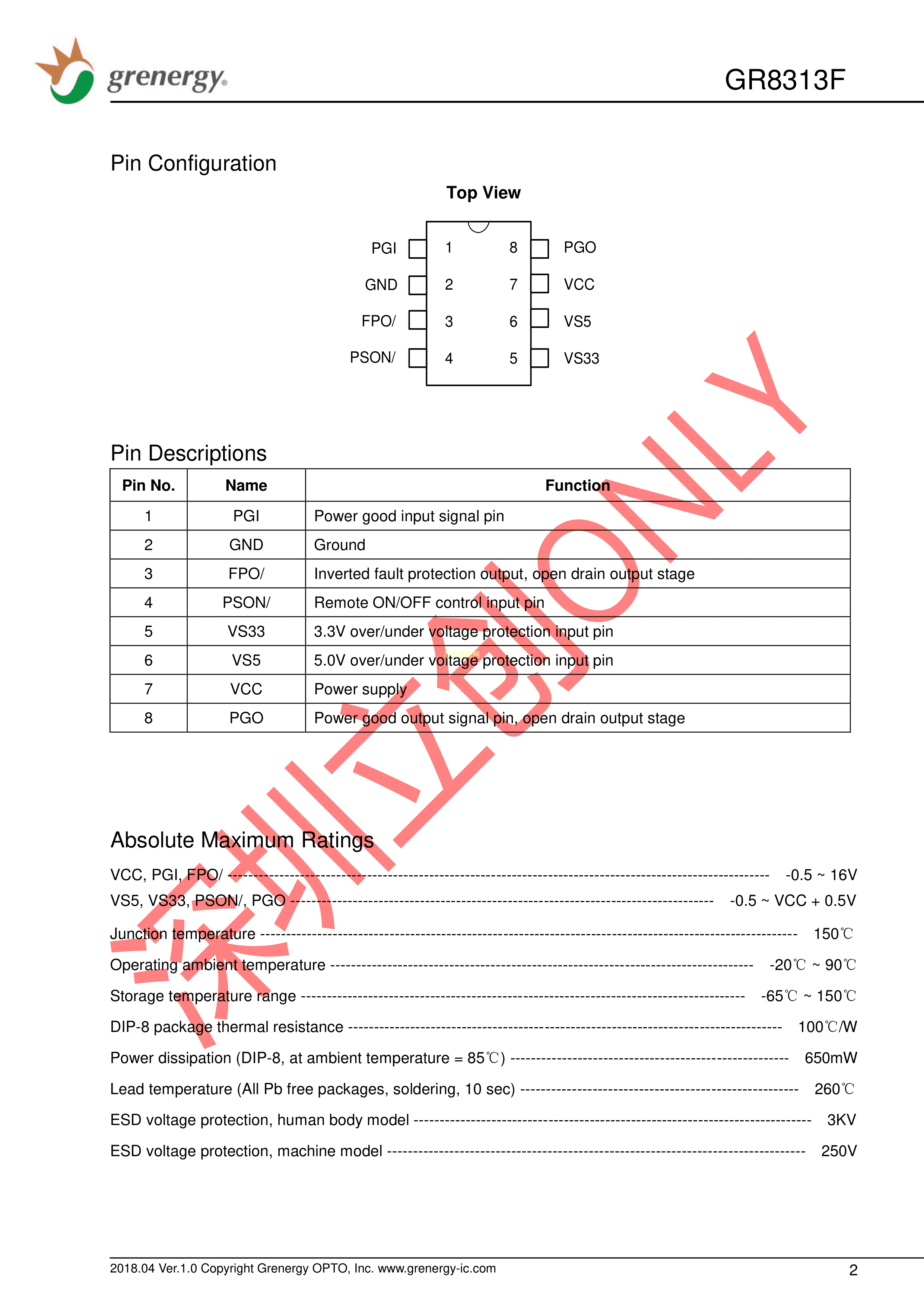 GR8313FJG数据手册DIP-8封装Grenergy(南京绿芯)PDF规格书,中英文下载