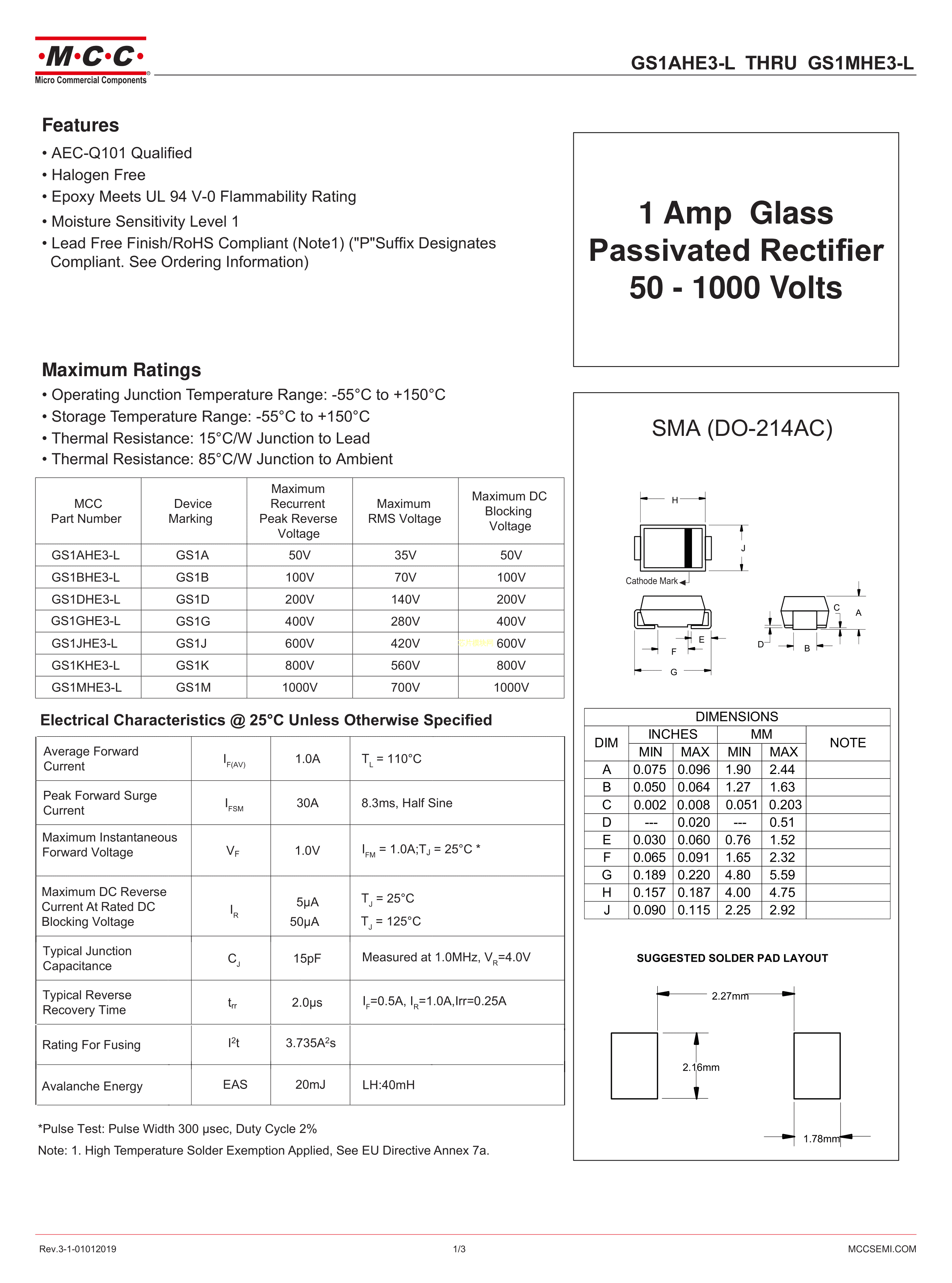 GS1MHE3-LTP数据手册SMA(DO-214AC)封装MCC(美微科)PDF规格书,中英文下载