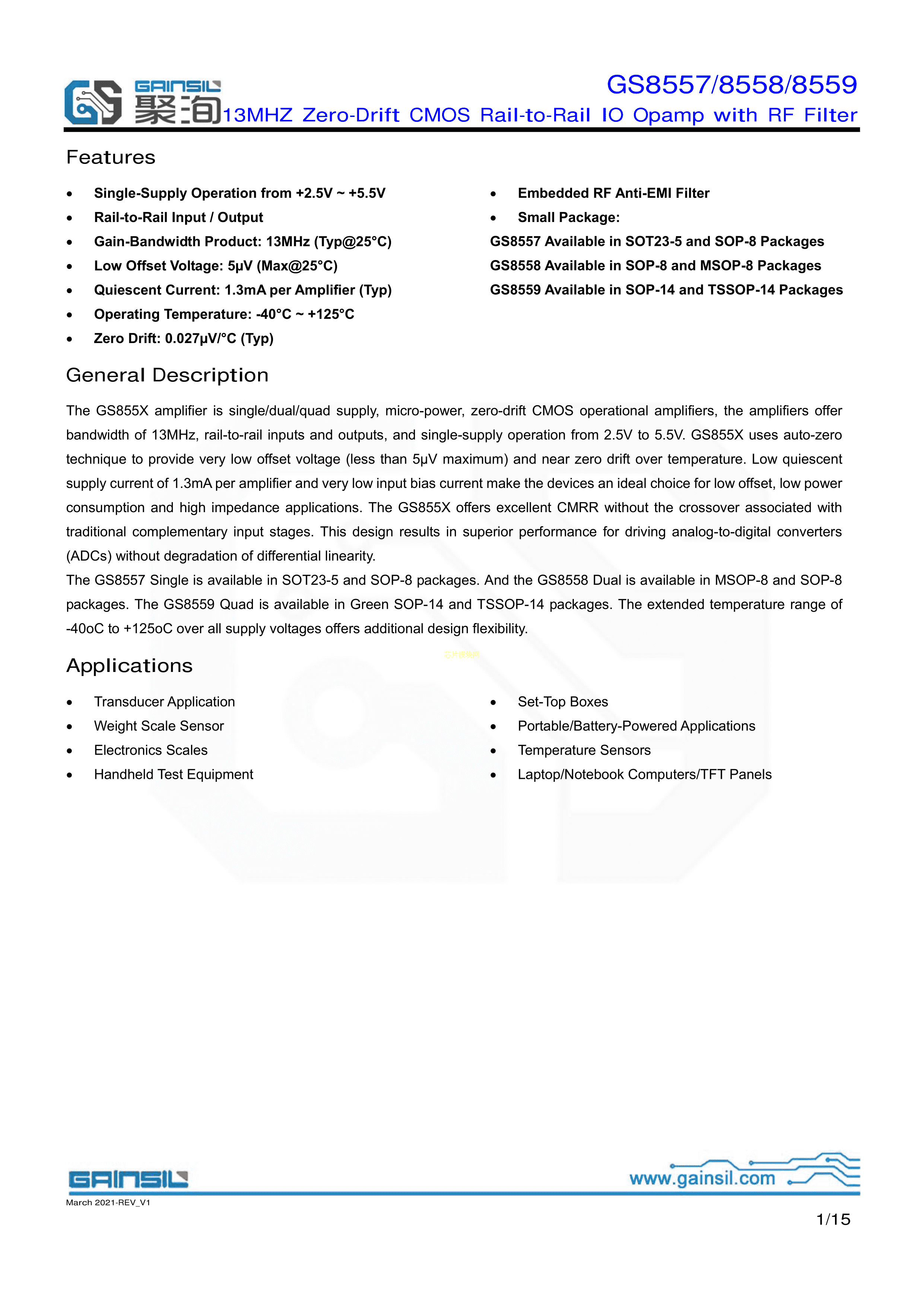 GS8558-SR数据手册SOP-8封装Gainsil(聚洵)PDF规格书,中英文下载