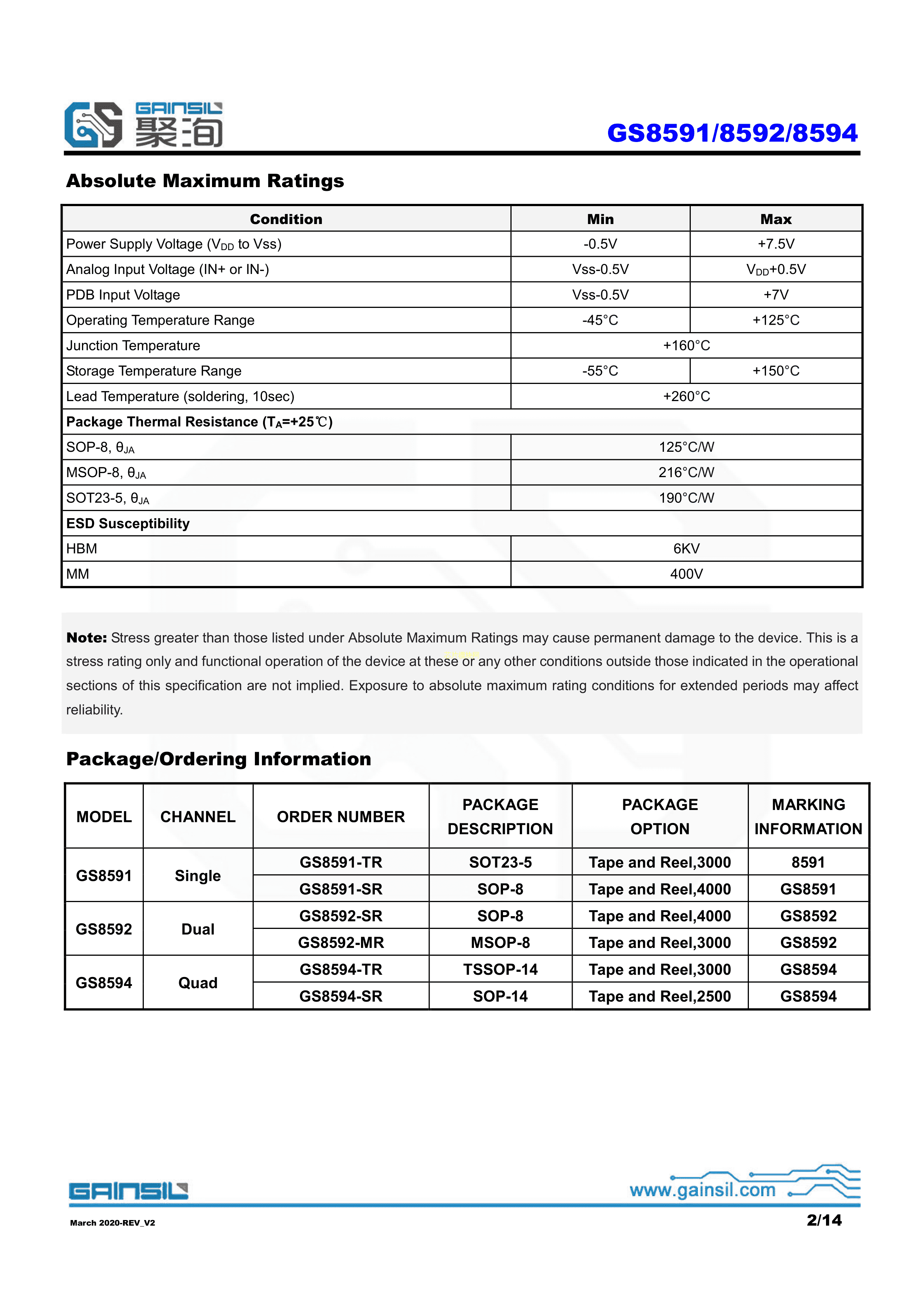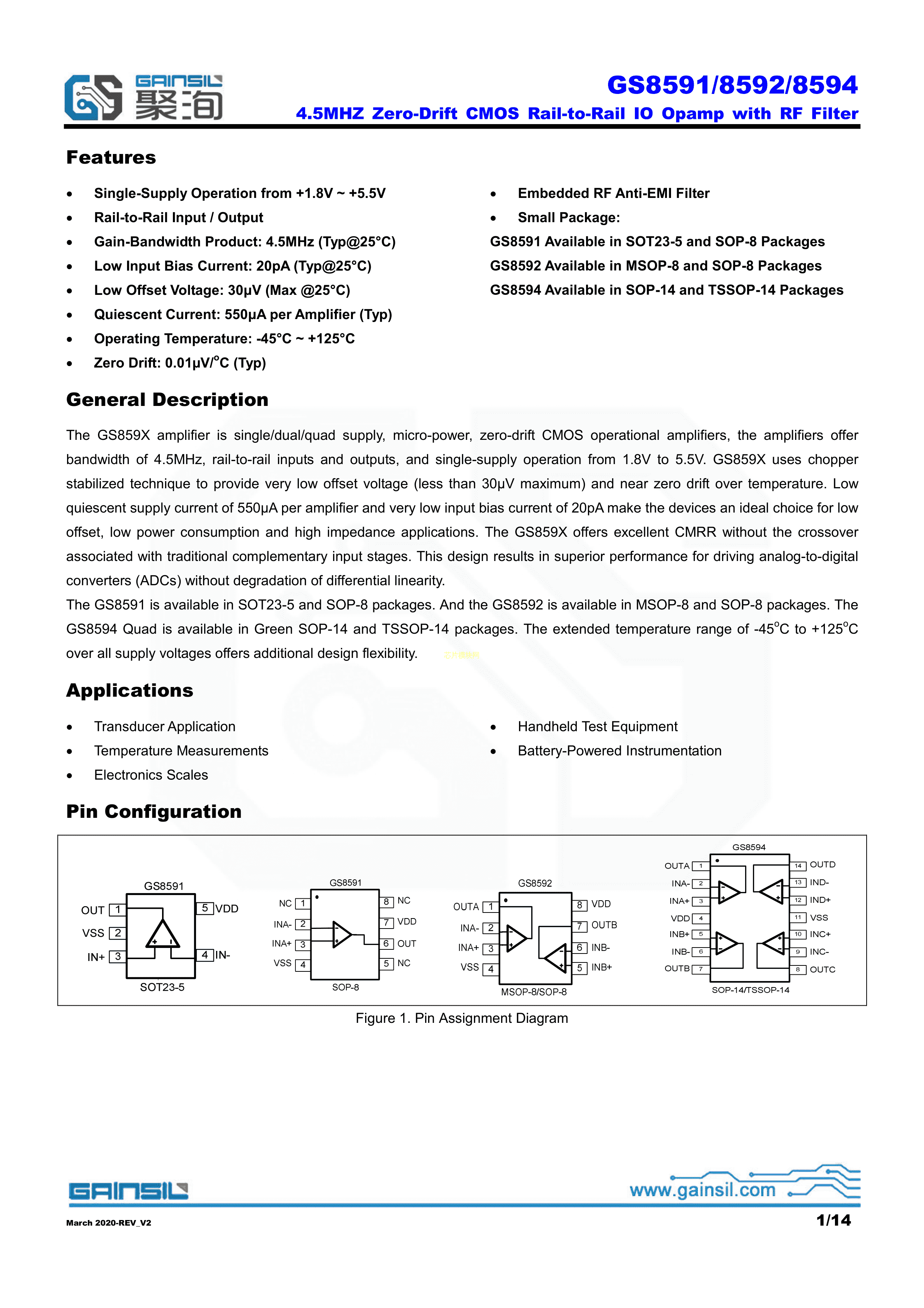 GS8594-SR数据手册SOP-14封装Gainsil(聚洵)PDF规格书,中英文下载
