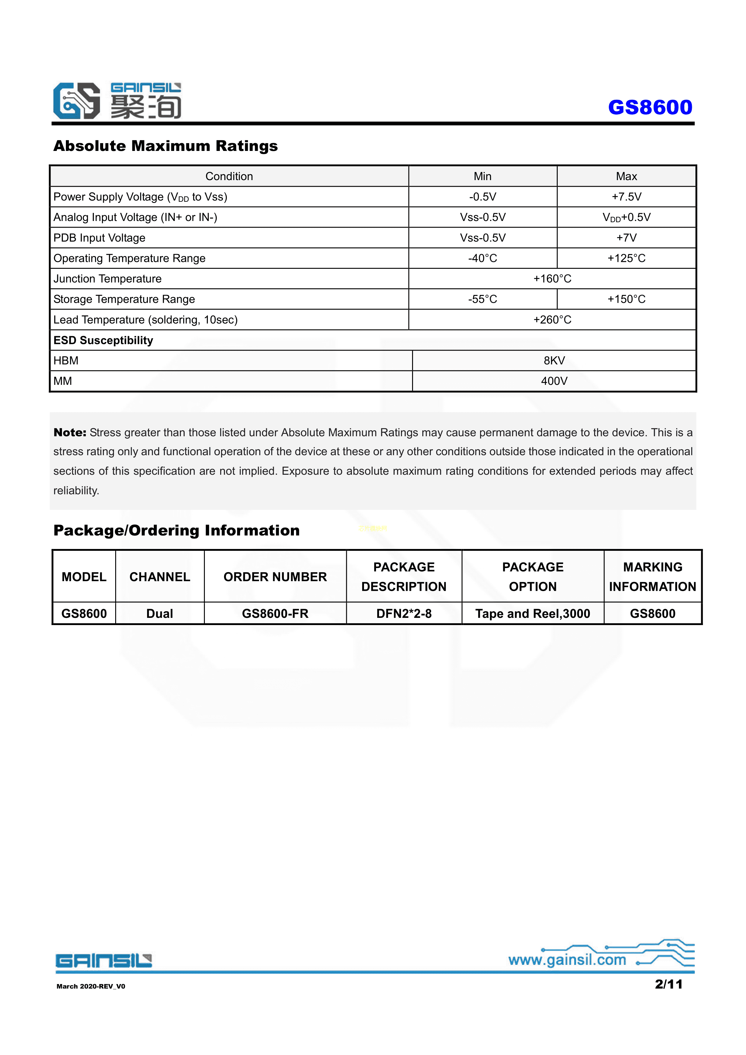 GS8600-FR数据手册DFN-8(2x2)封装Gainsil(聚洵)PDF规格书,中英文下载