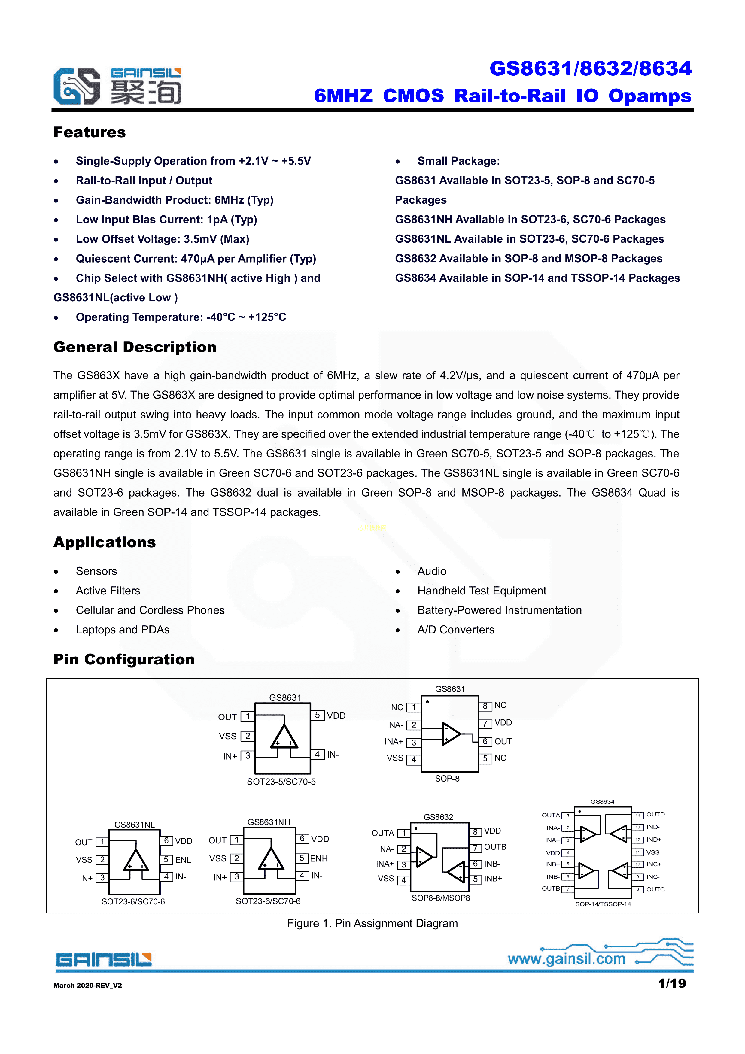GS8631-TR数据手册SOT-23-5封装Gainsil(聚洵)PDF规格书,中英文下载