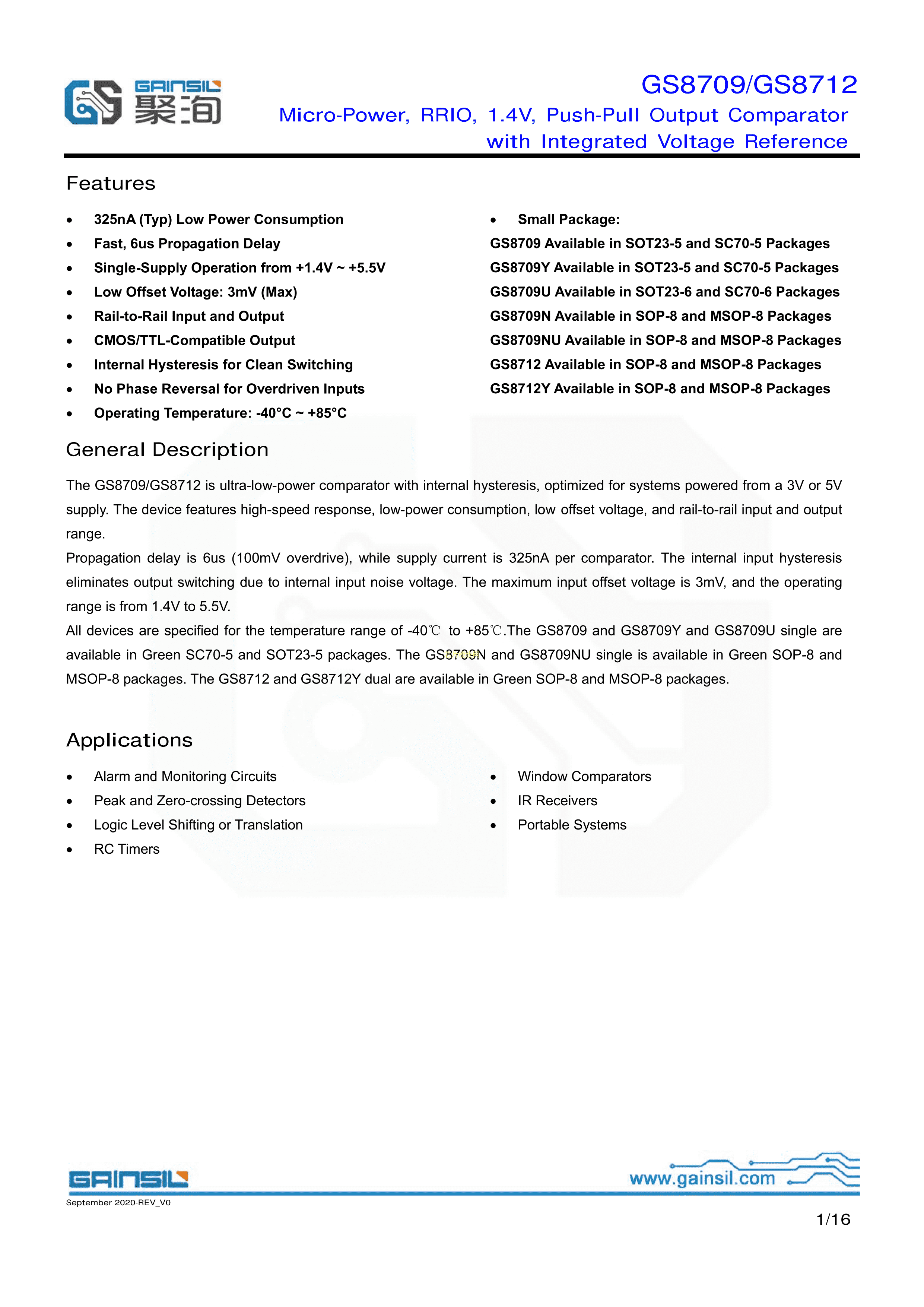 GS8709-TR数据手册SOT-23-5封装Gainsil(聚洵)PDF规格书,中英文下载