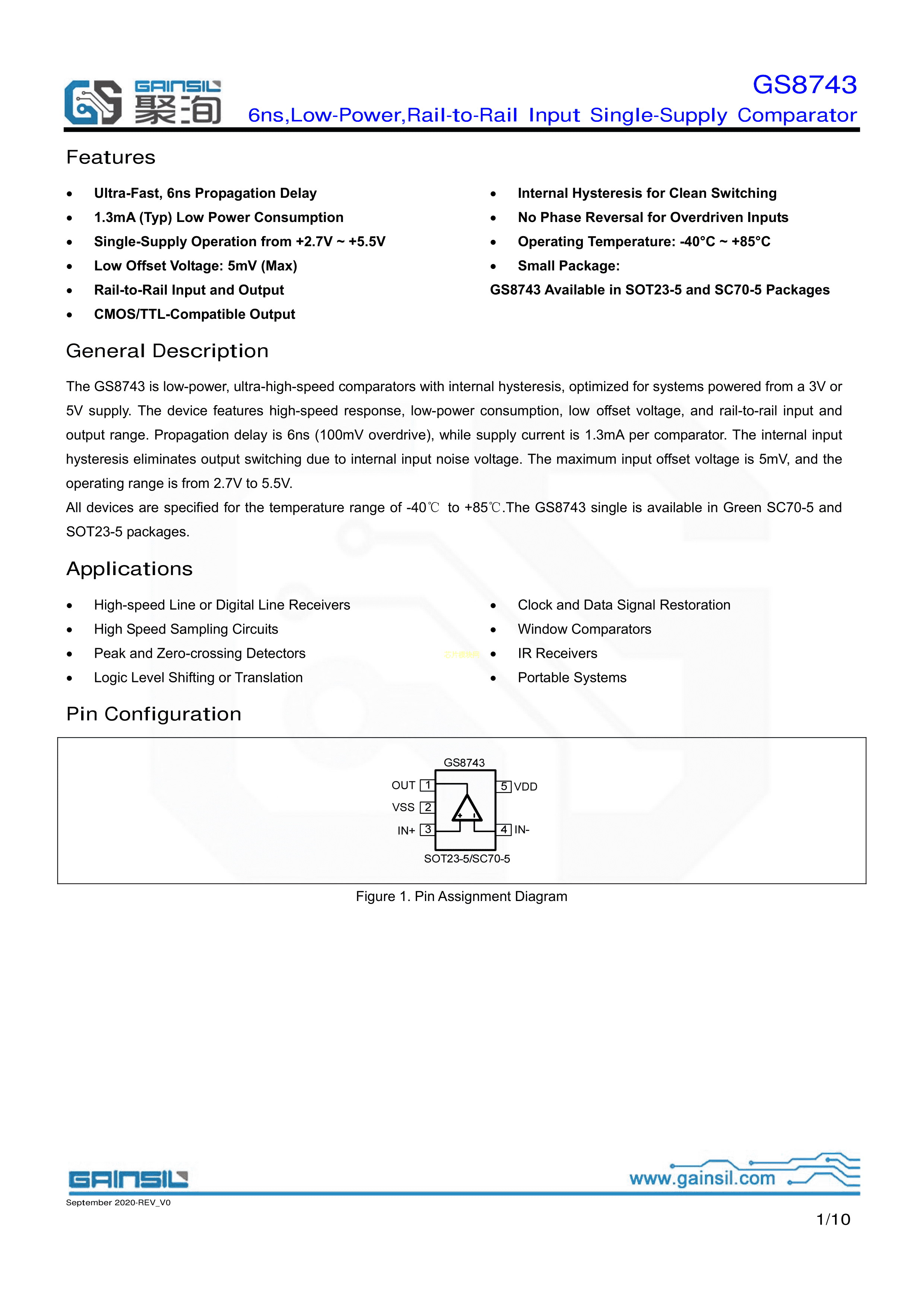 GS8743-CR数据手册SC-70-5封装Gainsil(聚洵)PDF规格书,中英文下载