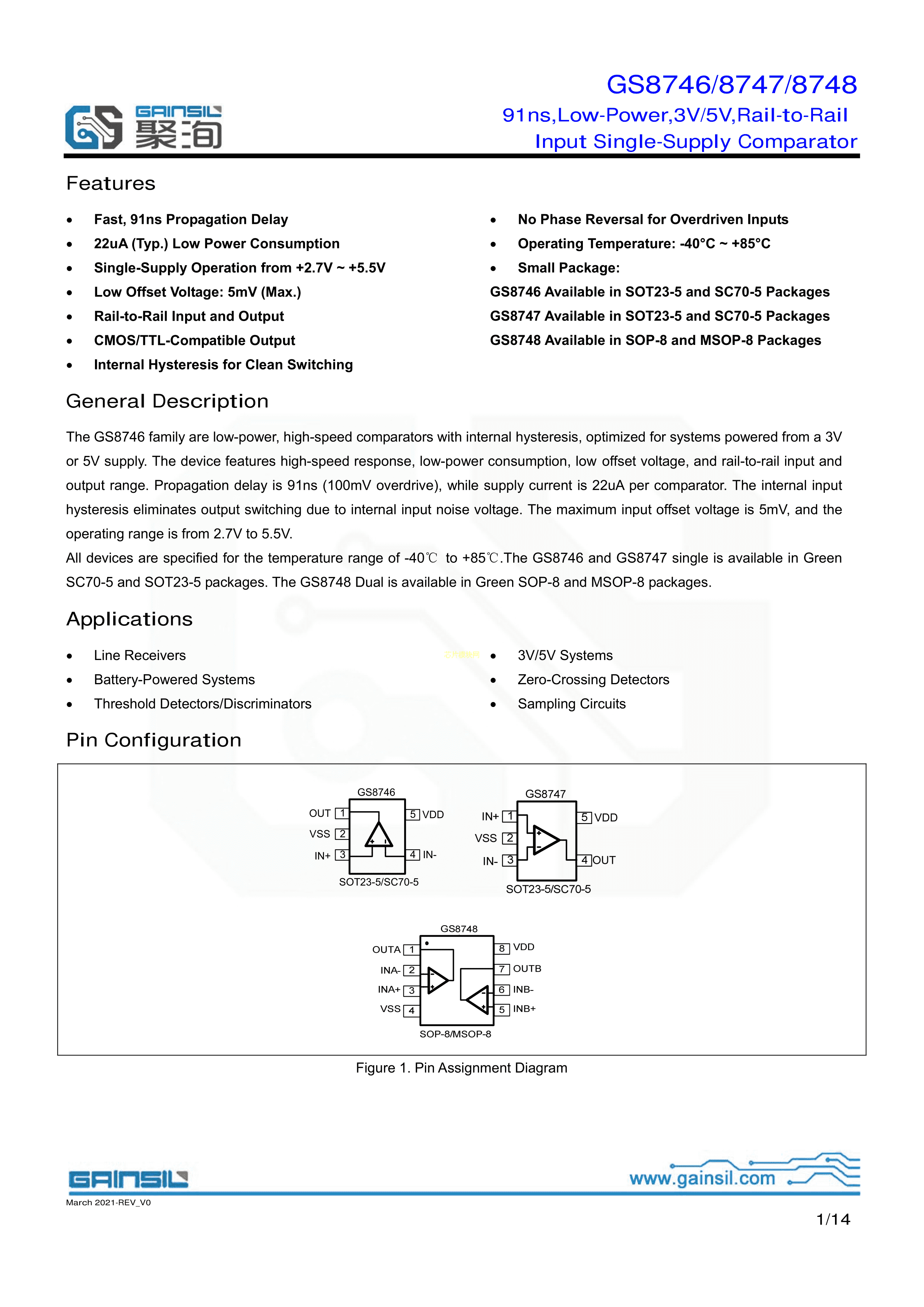 GS8746-TR数据手册SOT23-5封装Gainsil(聚洵)PDF规格书,中英文下载