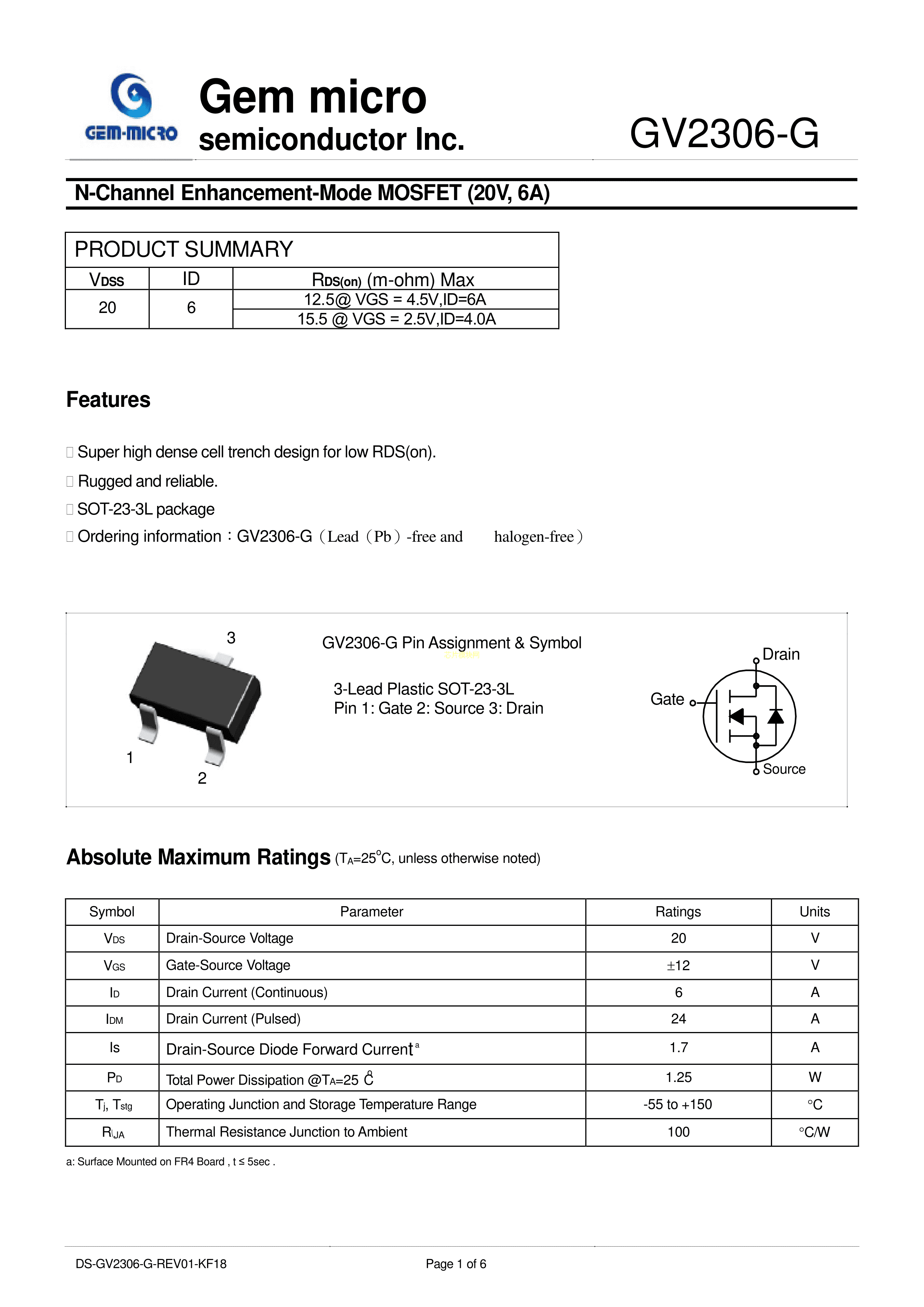 GV2306-G数据手册SOT-23-3L封装Gem-micro(晶群)PDF规格书,中英文下载