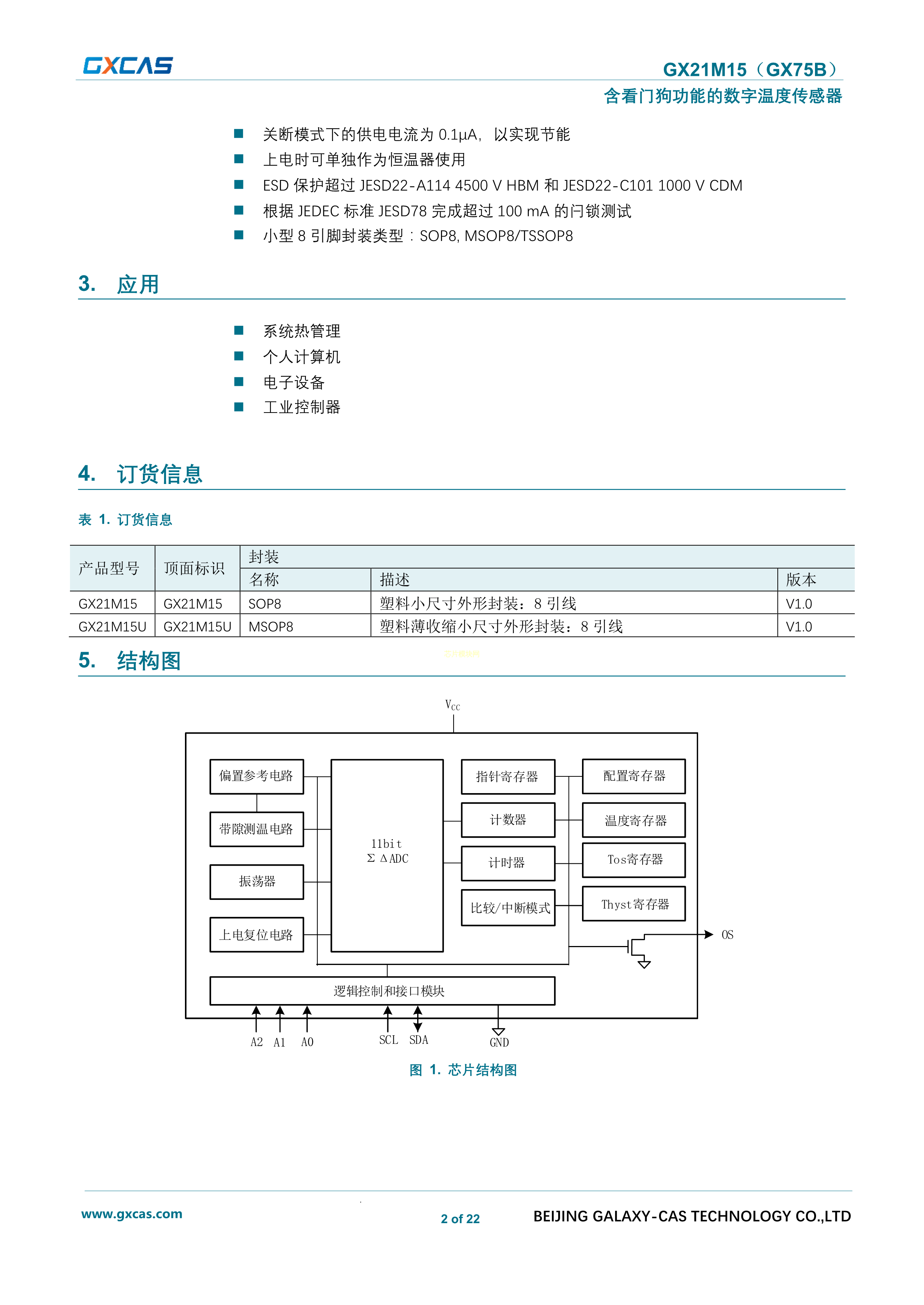 GX21M15U数据手册MSOP-8封装GXCAS(中科银河芯)PDF规格书,中英文下载